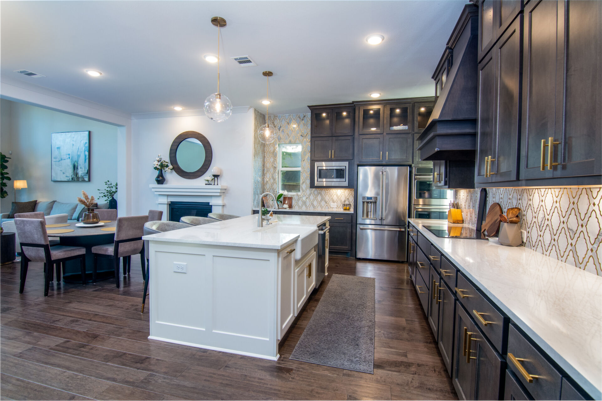 Absolutely GORGEOUS Darling Home situated on huge pristine lot located in the highly desirable community of Waterbridge in The Woodlands Creekside Park. Modern architectural design that emphasizes clean lines & crisp neutral colors blended together so pleasing to the eye. Statement detailing through-out! $95K/upgrades including extensive wood flooring, remote control blinds, contemporary chandeliers & hardware, marble back-splash, custom bookcase, epoxy flooring & more. You will appreciate the high ceilings, friendly open floor-plan & large windows allowing for the natural light. The kitchen is open to living & hearth room w/gas-log fireplace providing an elegant ambience while keeping the family together. Awesome home entertainment w/true home theatre & game-room that will accommodate 'game-size' table & more. Brilliant home office, bedrooms are spacious & w/private baths & large closets. Luxurious owners & guest suite down, home shows like in a magazine. You won't be disappointed!!