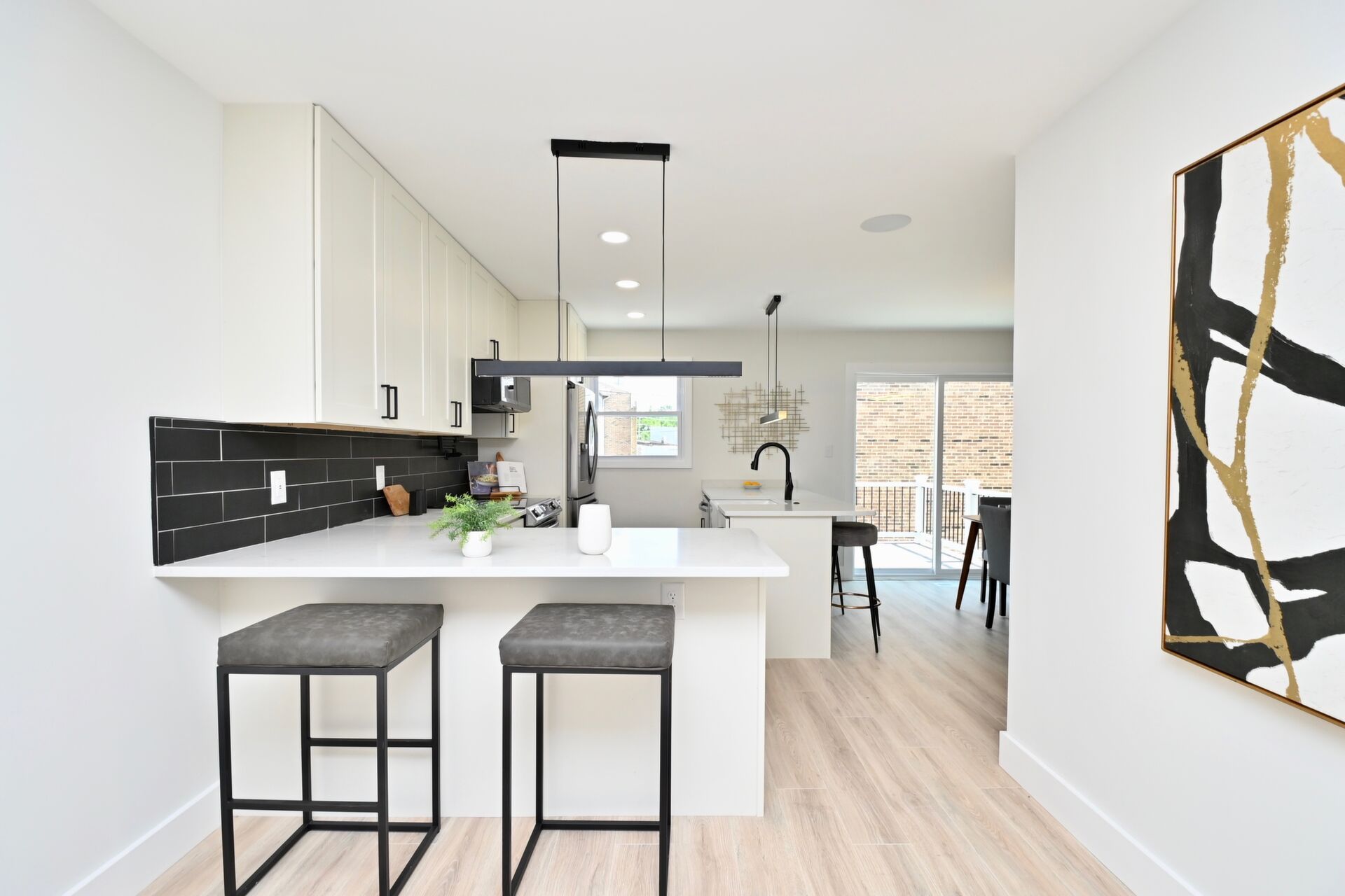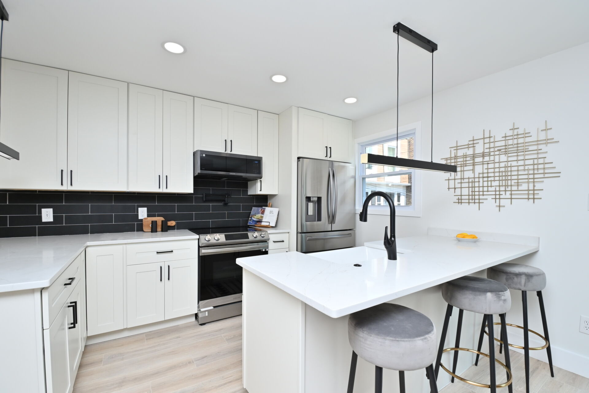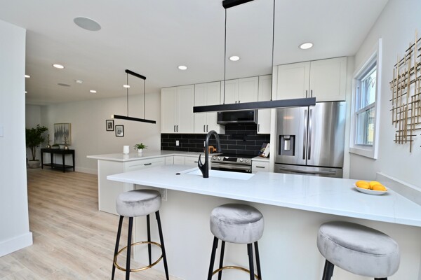 This home has been renovated too to bottom! Enjoy new lichen and baths, floors, light fixtures, you name it!