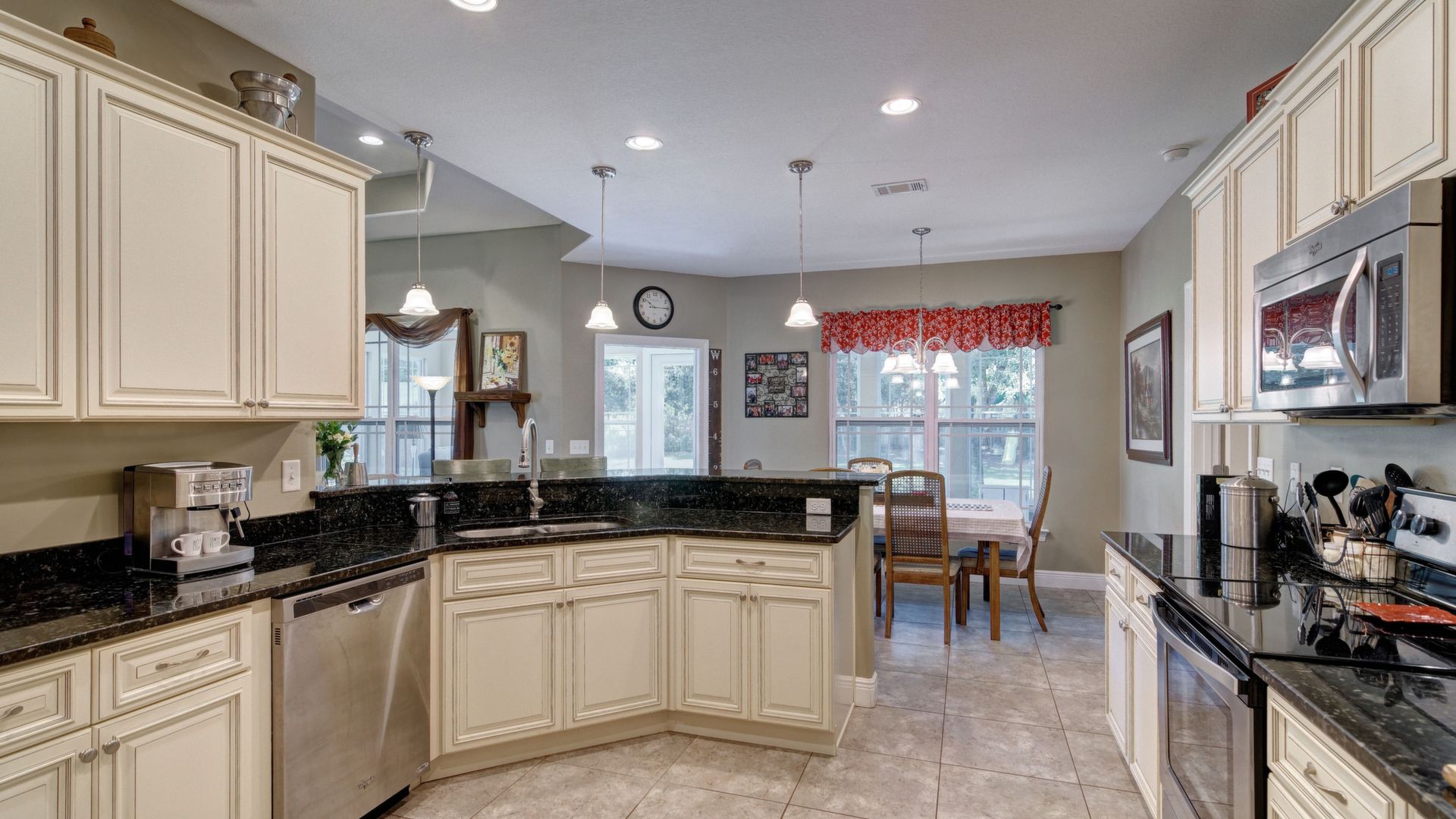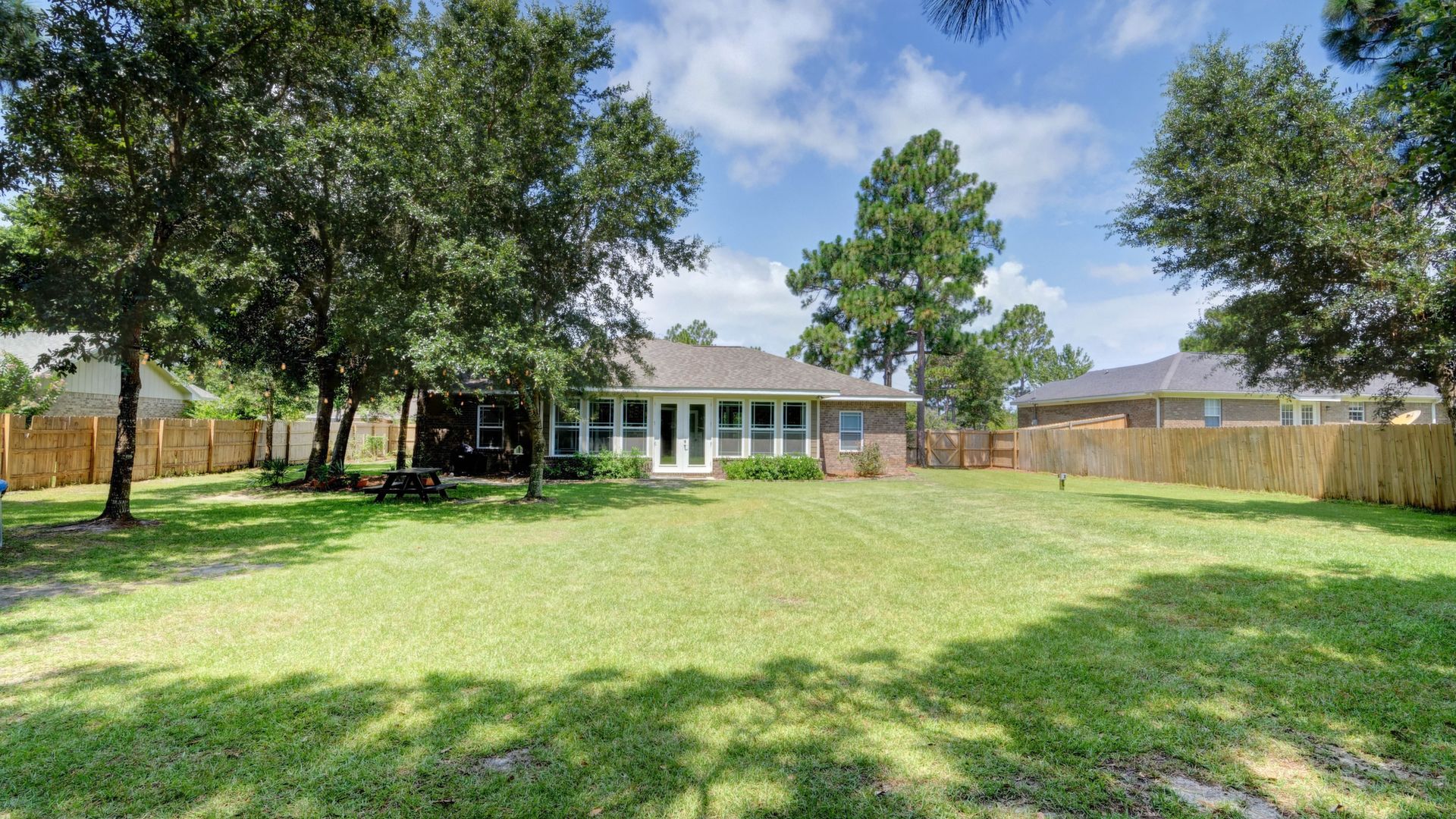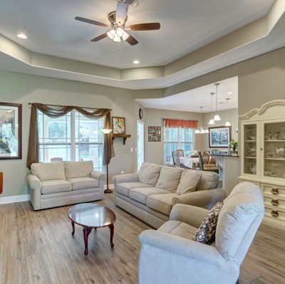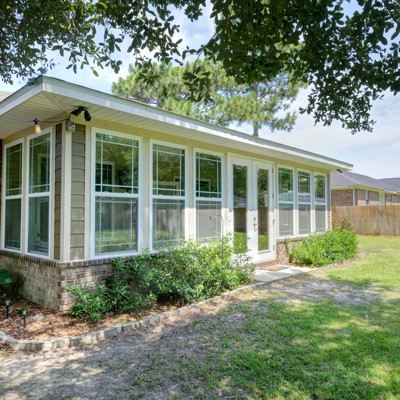 Welcome home to this custom built brick beauty nestled in a prime location of Holley by the Sea. This 4/2 floor plan features many upgrades including a spacious heated and cooled Florida room for additional living space! The kitchen boasts granite counter tops and birch cabinetry with soft close drawers, in addition to the recessed and pending lighting overlooking the stainless steel appliances. Enjoy newly installed luxury vinyl plank flooring in the spacious living room that also features a trey ceiling. The owner's suite also showcases a trey ceiling, and the en suite includes double vanities, a tiled walk in shower, separate garden tub and large walk in closet. The other three bedrooms are nice sized with ample closet space, and the Florida room is a fantastic expanded living space
