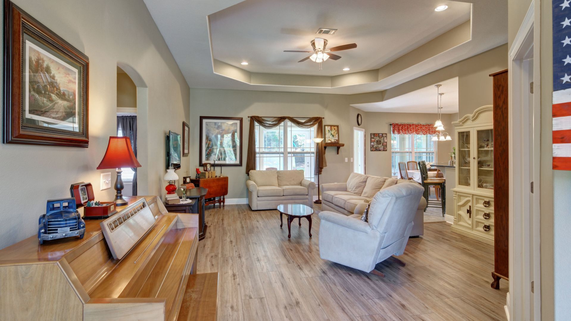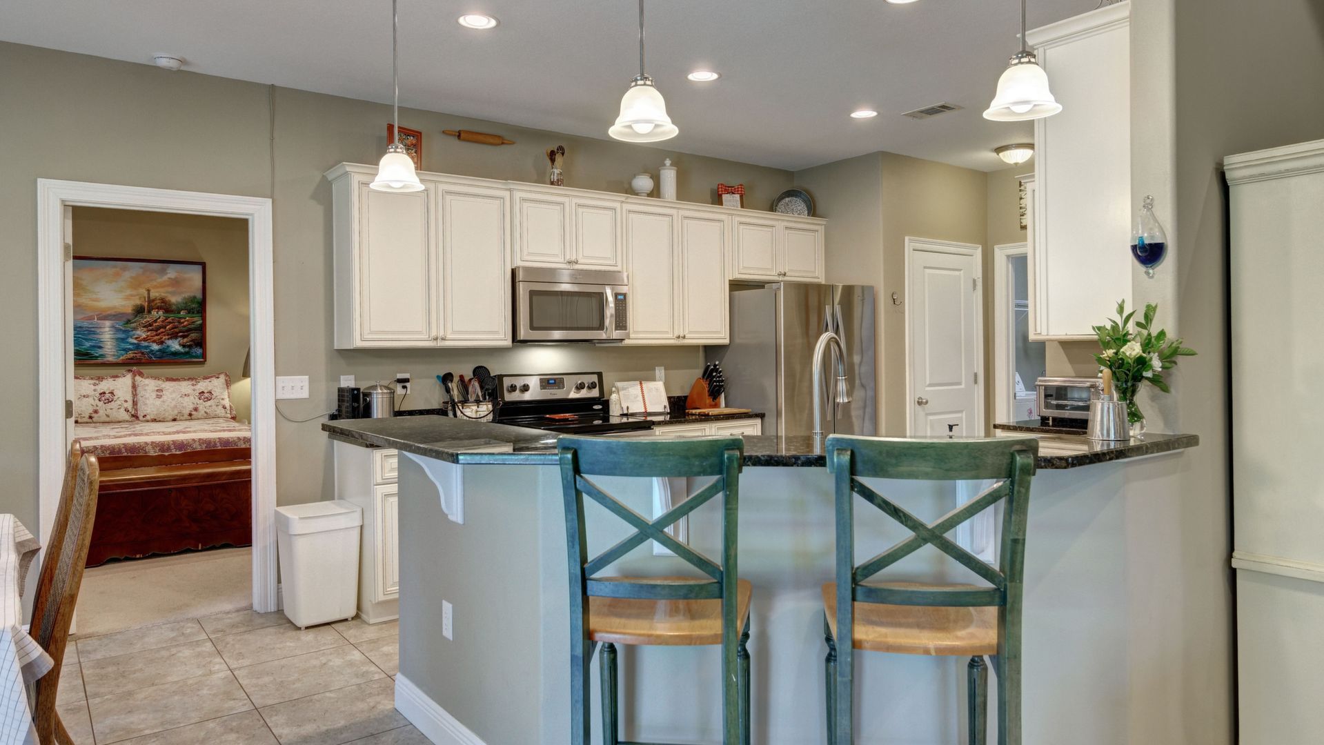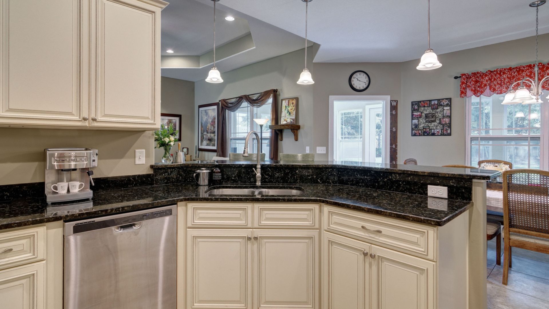 Welcome home to this custom built brick beauty nestled in a prime location of Holley by the Sea. This 4/2 floor plan features many upgrades including a spacious heated and cooled Florida room for additional living space! The kitchen boasts granite counter tops and birch cabinetry with soft close drawers, in addition to the recessed and pending lighting overlooking the stainless steel appliances. Enjoy newly installed luxury vinyl plank flooring in the spacious living room that also features a trey ceiling. The owner's suite also showcases a trey ceiling, and the en suite includes double vanities, a tiled walk in shower, separate garden tub and large walk in closet. The other three bedrooms are nice sized with ample closet space, and the Florida room is a fantastic expanded living space
