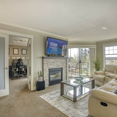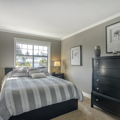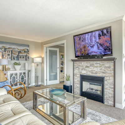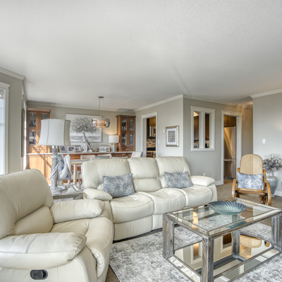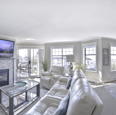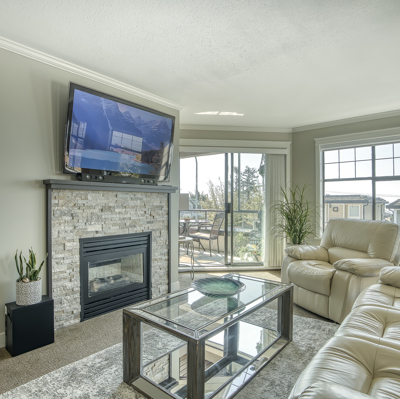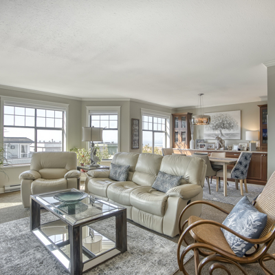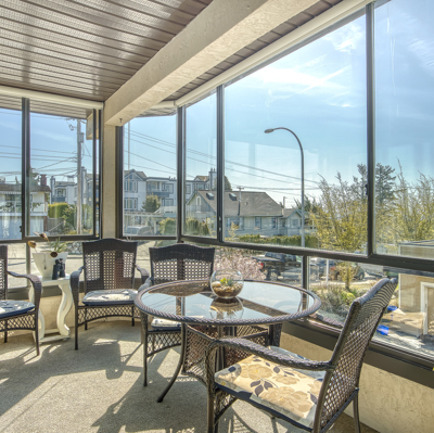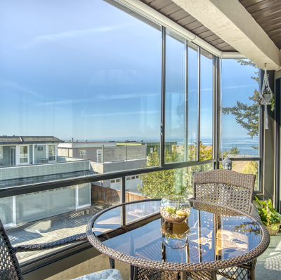 "The Tiffany" Downsize and or Retire in style by the ocean. Completely renovated Large 2 Bedroom and Den home. New Kitchen with Stainless Steel Appliances, Custom Cabinetry, HE Fireplace, Modern Lighting Fixtures and beautiful Frosted Glass Doors throughout. Renovated Ensuite and Main Bathroom. Hunter Douglas shades. Full Size Washer and Dryer. Wheelchair friendly living space. Enclosed ocean view Solarium. Enjoy a Full Guest Suite for your extra company. Workshop, Bike Rack, Storage and Elevator. Walking distance to shops, restaurants and the beach. Welcome Home!