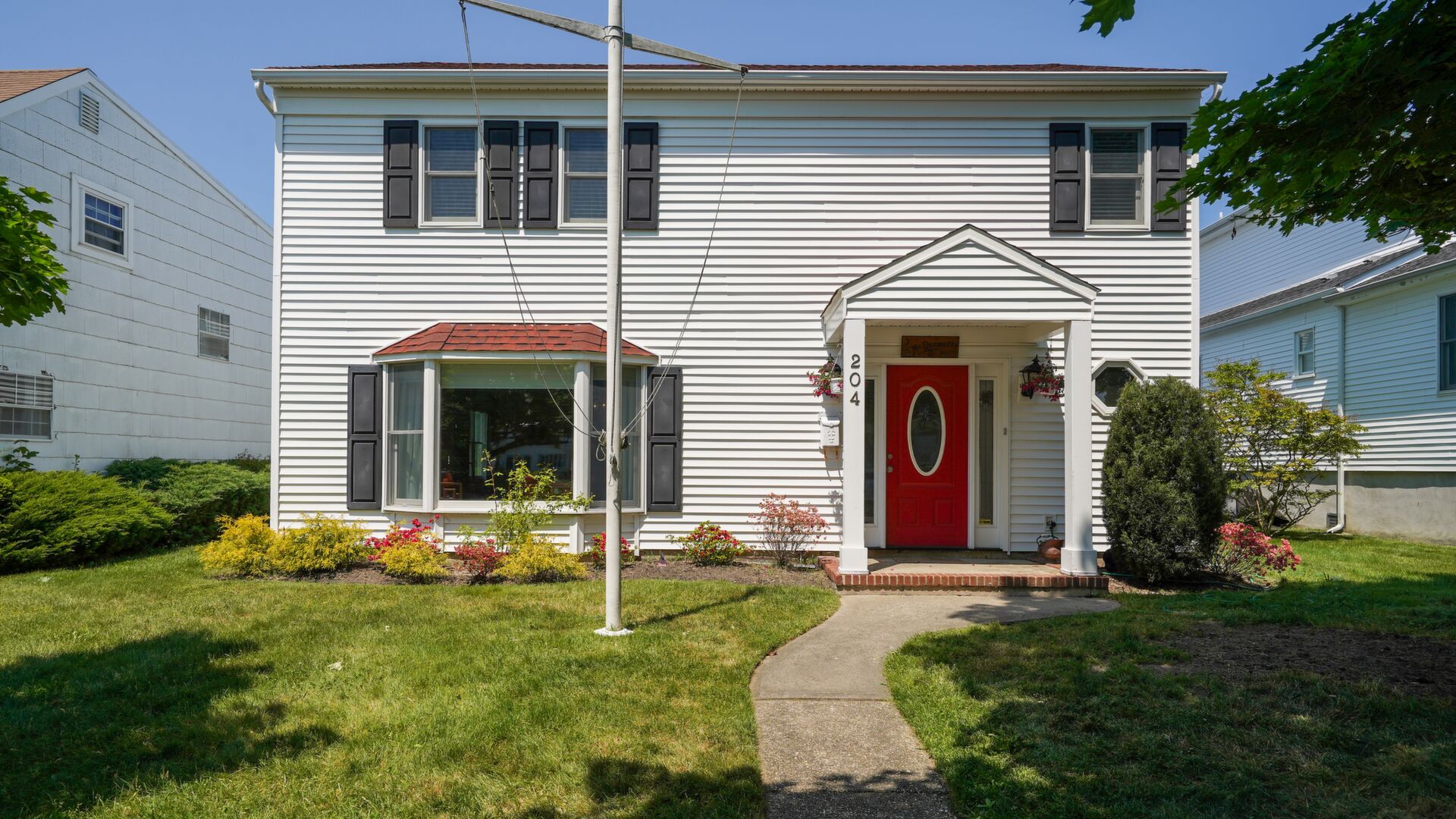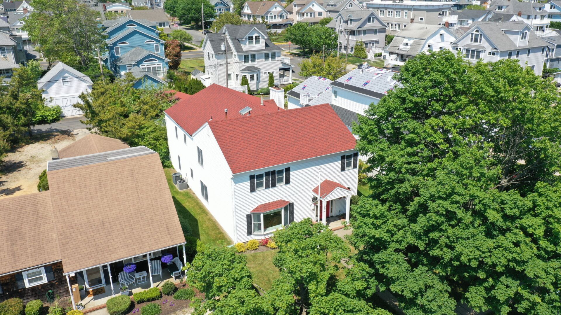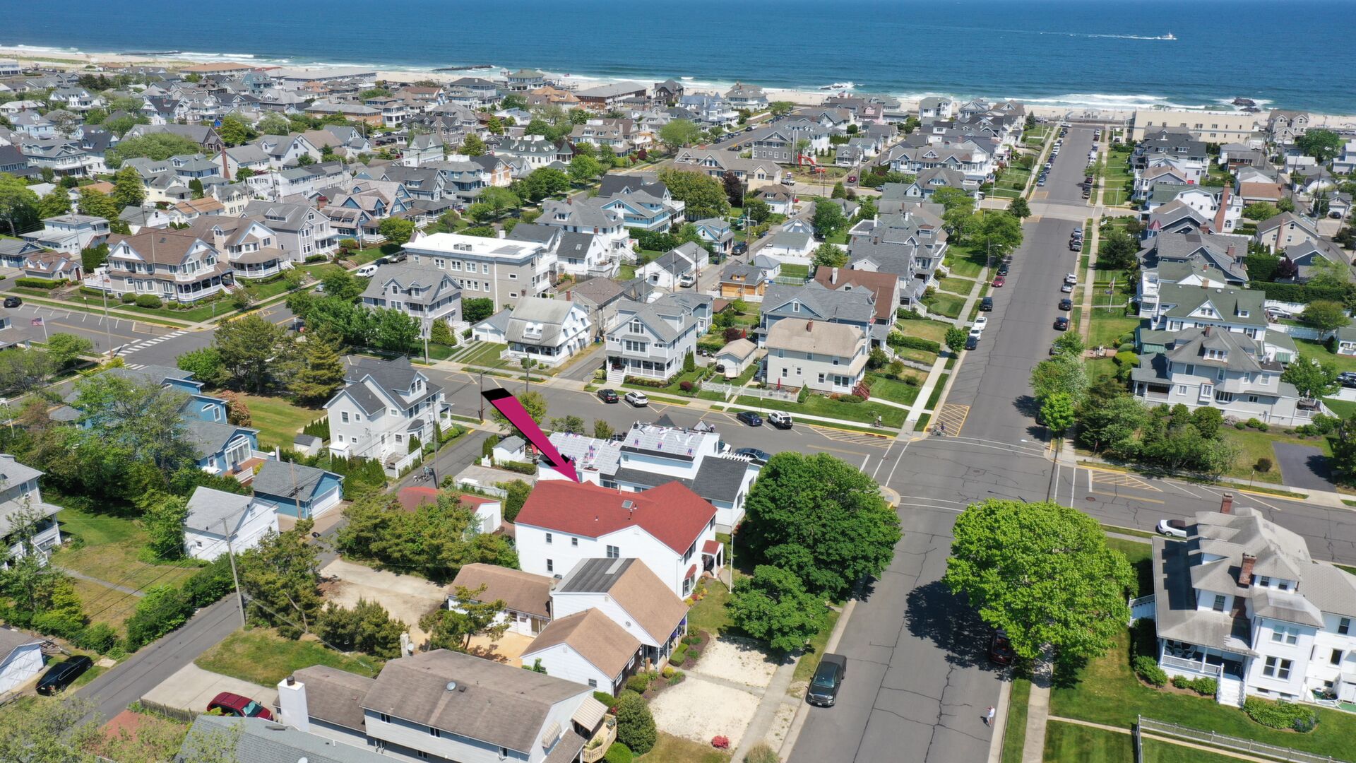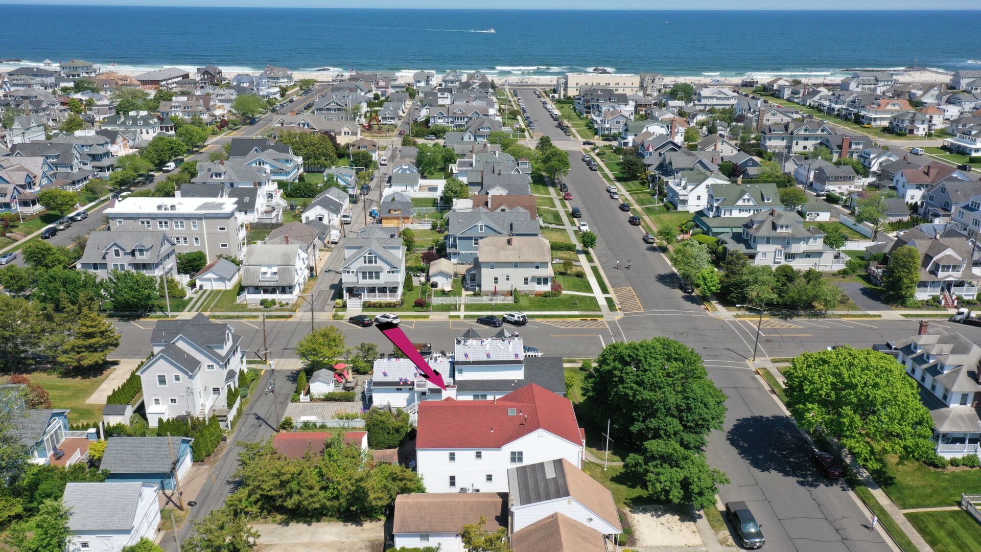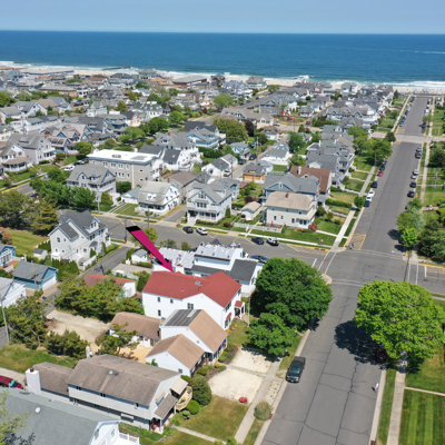 Just 2 short blocks to the beach this custom built home is intended for large family gatherings in lovely Avon-by-the-Sea! Do not be deceived - this home has 3,520sf (per tax records) of fabulous living space. 7 SPACIOUS bedrooms, 3 full + 1 half baths, formal living & dining rooms plus a very large family room. Wood floors in all rooms except the kitchen & baths. Stunning all-white kitchen with SS appliances with a granite island for prep, storage & seating. Family room with a beautiful wood fireplace leads to the rear patio. 1st floor has a newer; full bath, half bath & laundry. Detached 2 car garage on the lane also includes a large outdoor shower (w/separate water heater) plus an oversized storage closet separate from the garage space.