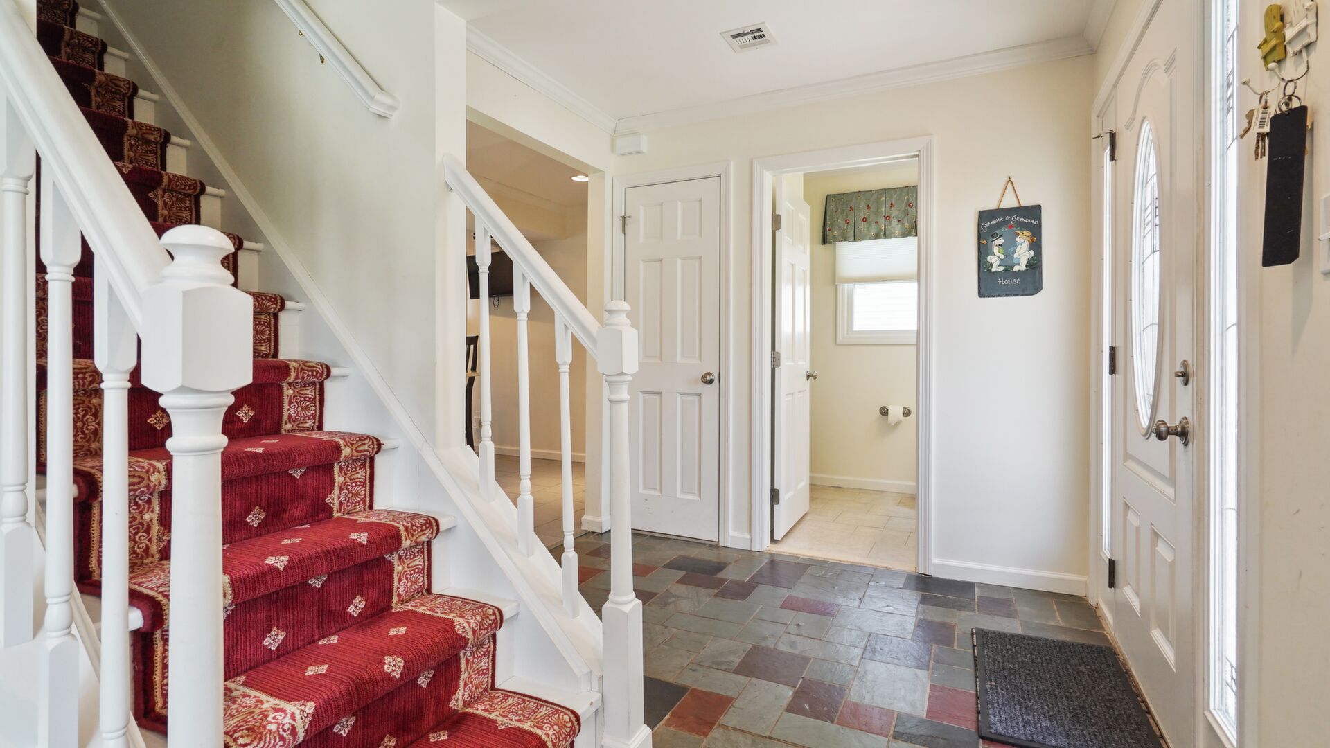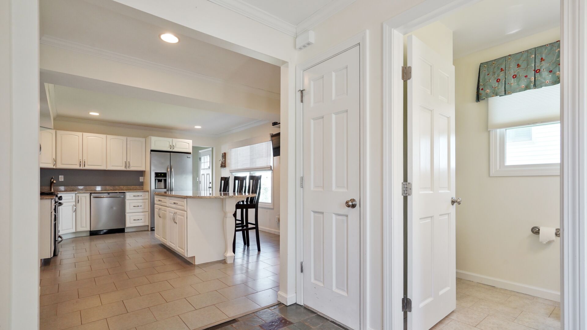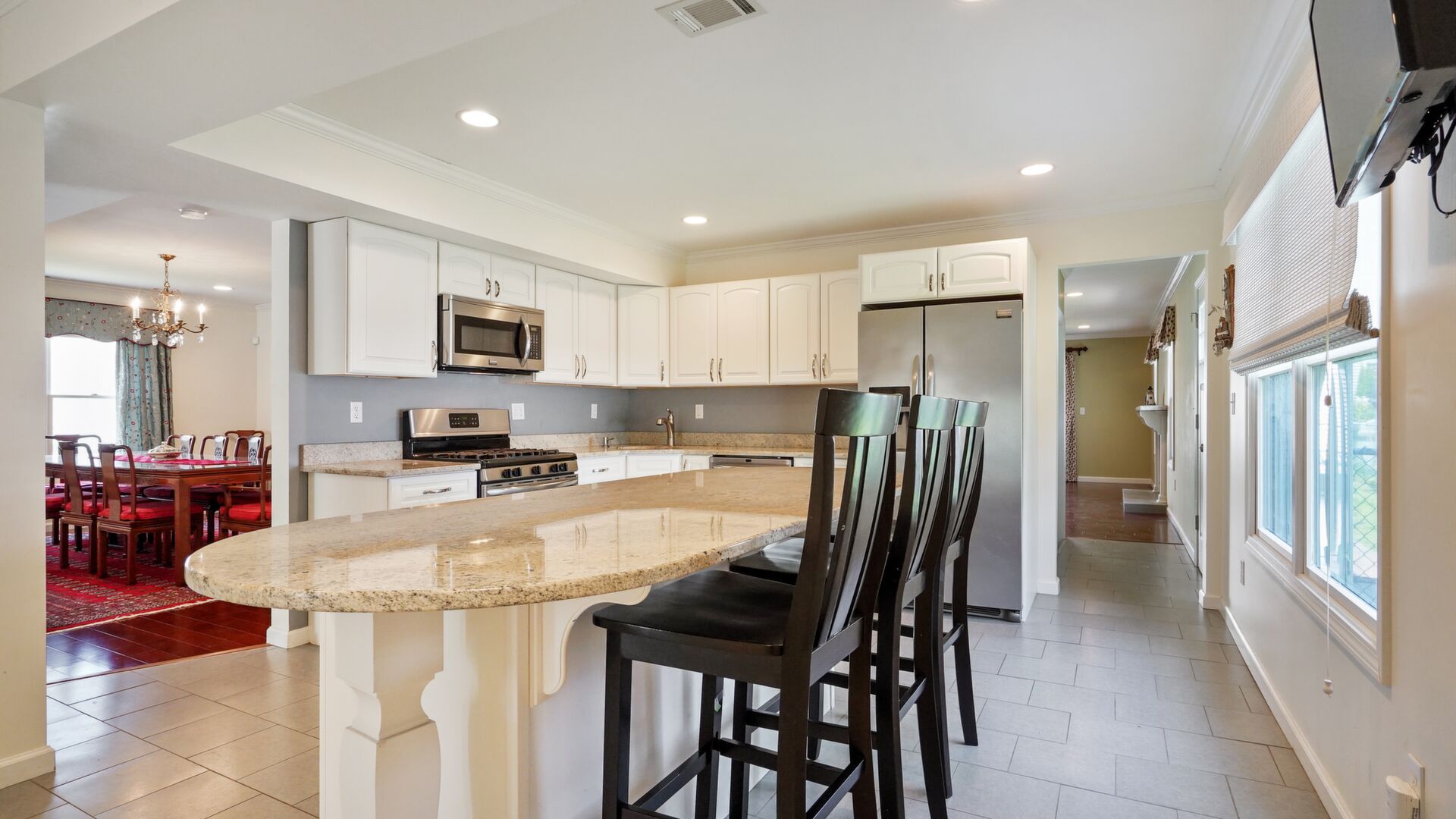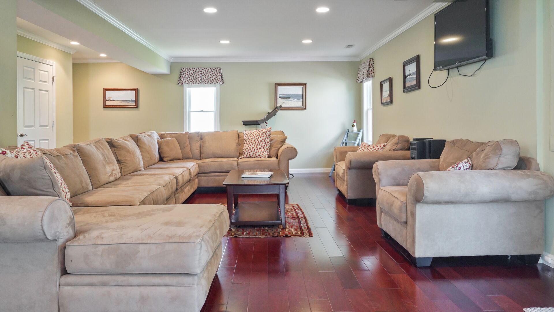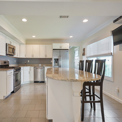 Just 2 short blocks to the beach this custom built home is intended for large family gatherings in lovely Avon-by-the-Sea! Do not be deceived - this home has 3,520sf (per tax records) of fabulous living space. 7 SPACIOUS bedrooms, 3 full + 1 half baths, formal living & dining rooms plus a very large family room. Wood floors in all rooms except the kitchen & baths. Stunning all-white kitchen with SS appliances with a granite island for prep, storage & seating. Family room with a beautiful wood fireplace leads to the rear patio. 1st floor has a newer; full bath, half bath & laundry. Detached 2 car garage on the lane also includes a large outdoor shower (w/separate water heater) plus an oversized storage closet separate from the garage space.