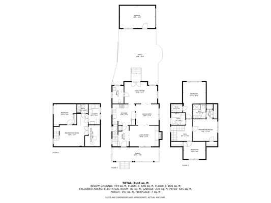 Enjoy hardwood floors, large living room with a cozy fireplace, kitchen that opens to your family room, primary bedroom with it's own bath and a finished recreation room.