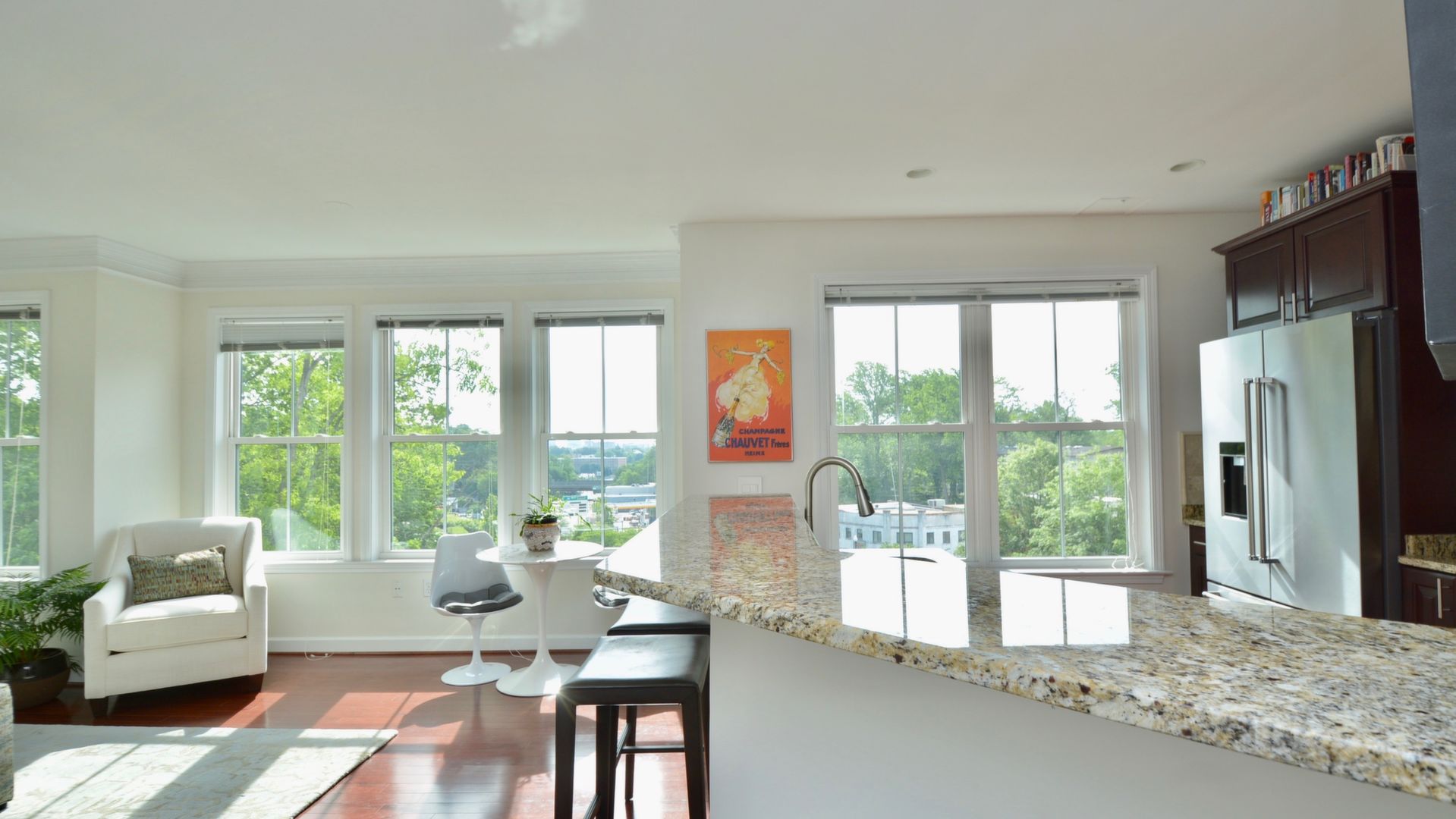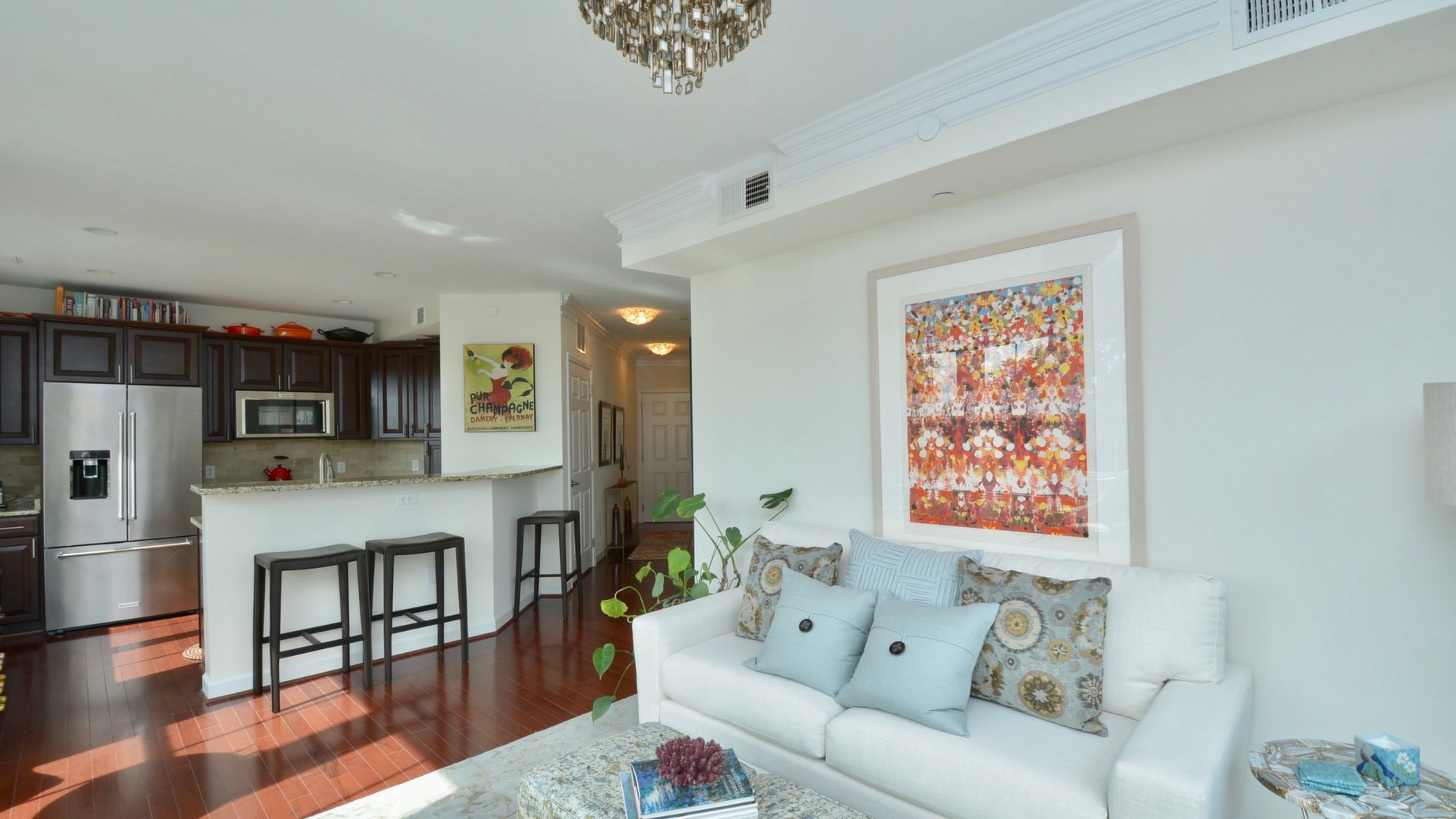 This beautiful two bedroom one bath condo features an open floor plan, light and bright rooms, hardwood floors, an updated kitchen and bath.