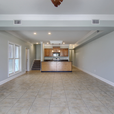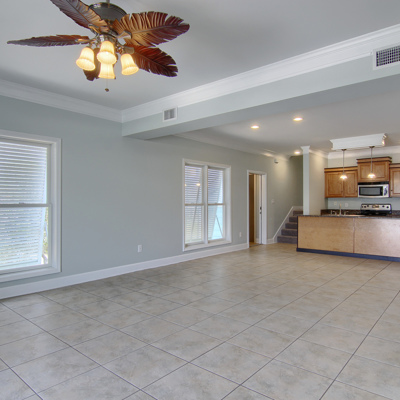 This beautiful Gulf Shores condo is just half a block from Hwy 59! You'll be amazed at the very spacious living areas. The huge Great Room is open to the complete kitchen with stainless appliances. Main floor master suite. Two huge bedrooms upstairs as well. The larger features a roomy private balcony, dual closets, and a full bath with separate tub, shower and laundry room. The second upstairs bedroom is also spacious, with double closets, and a full bath of it's own. All rooms have plenty of recessed lighting.
