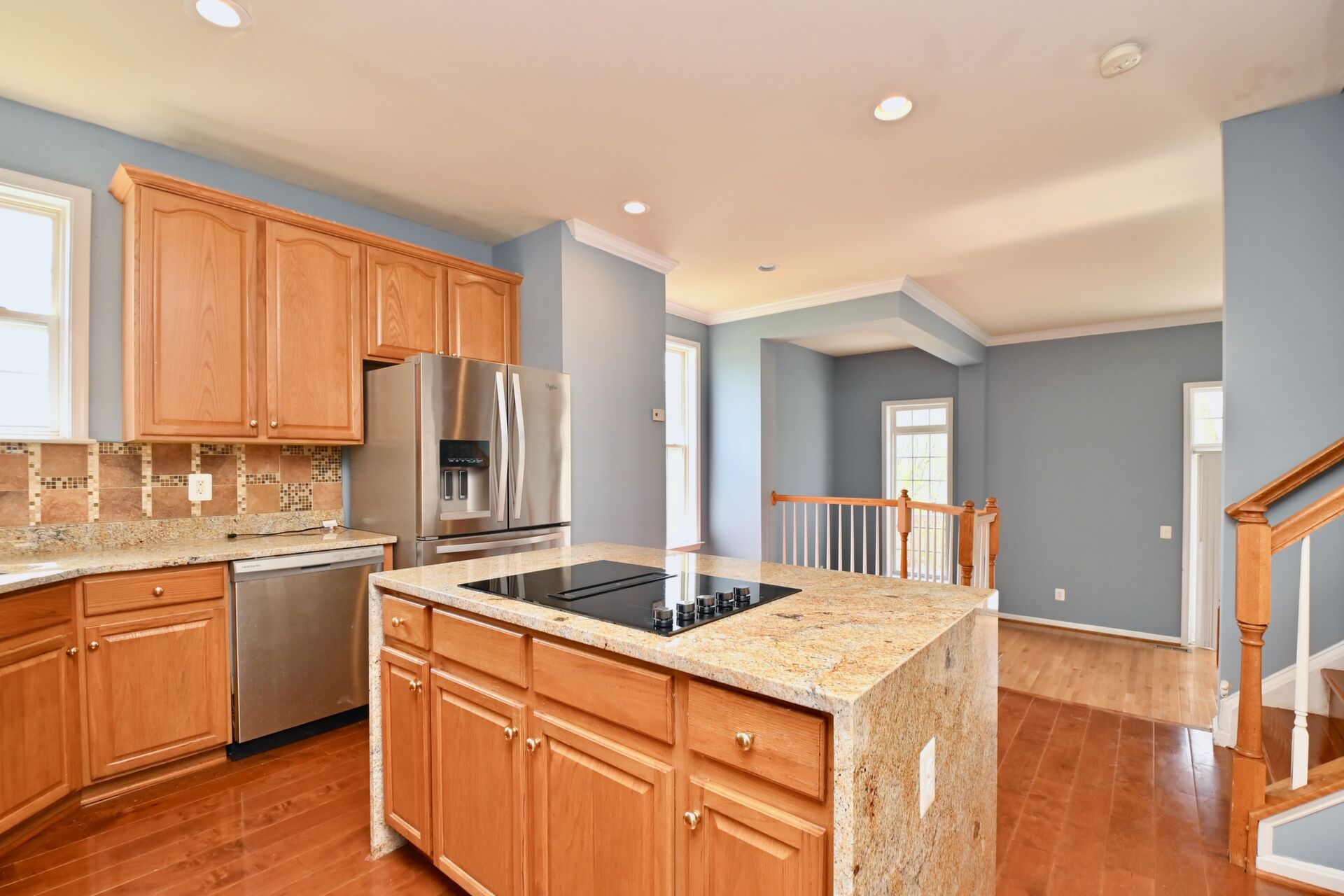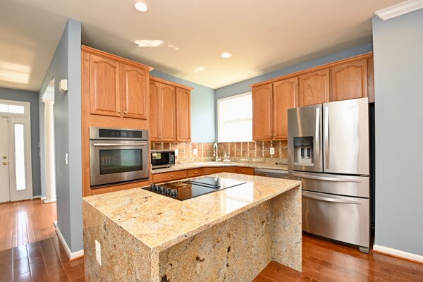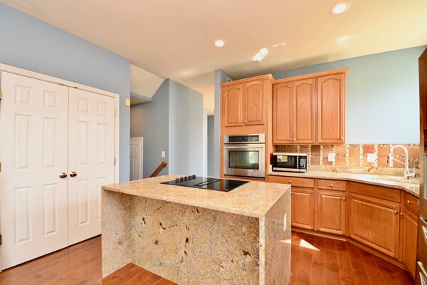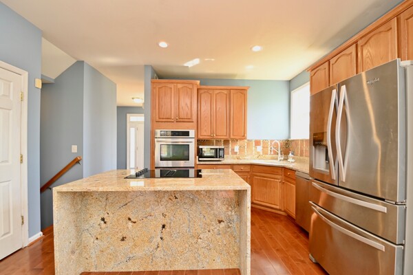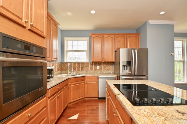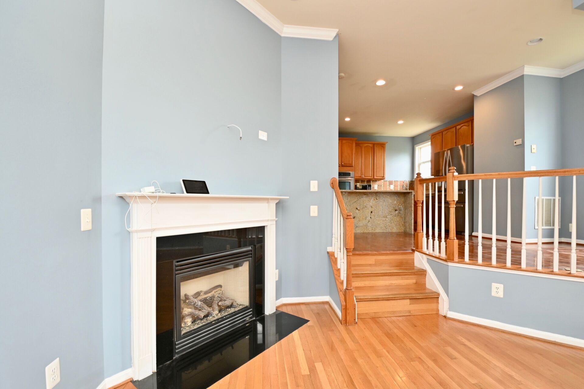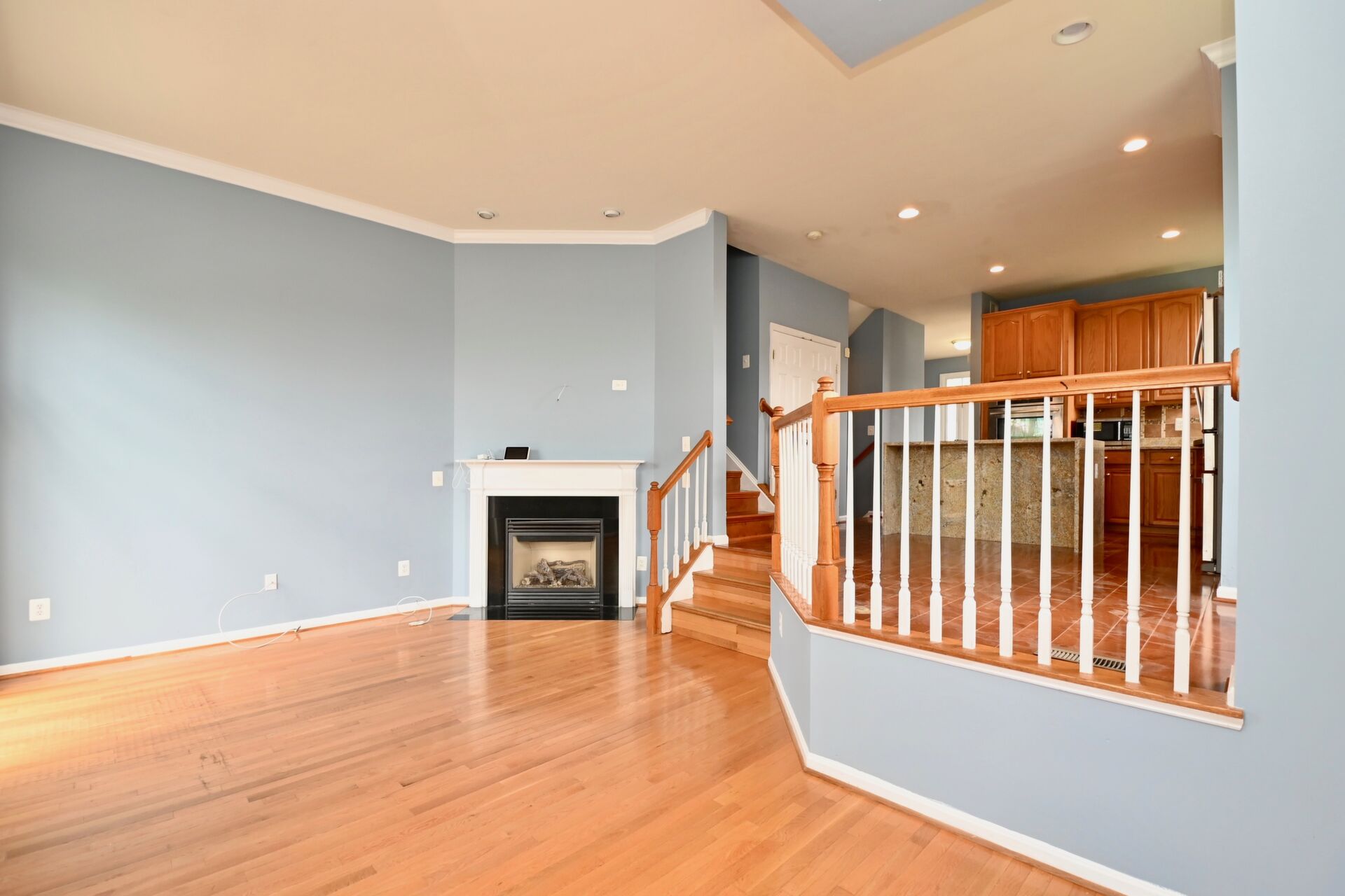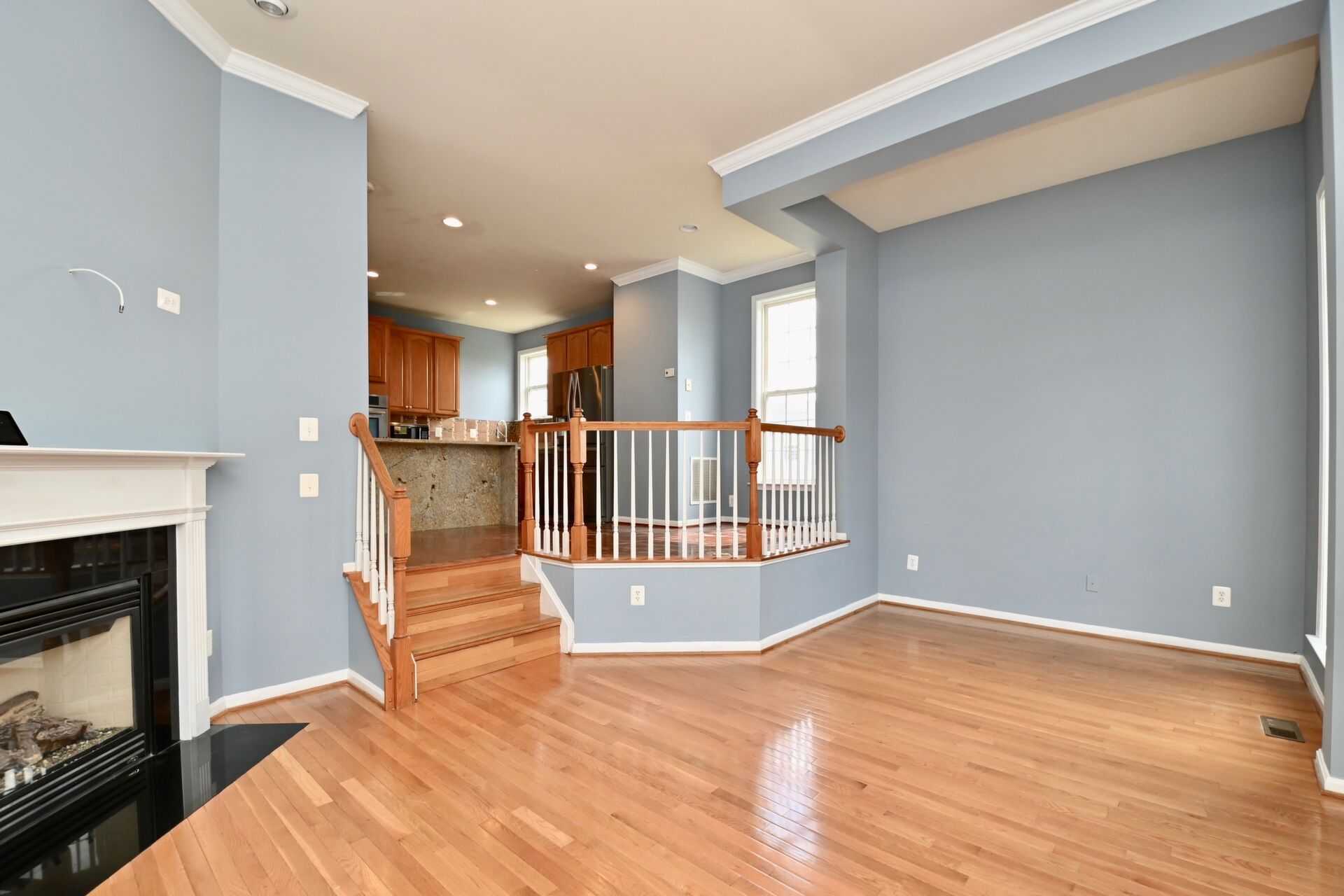 This home boasts a large sun filled living room with a cozy fireplace, kitchen with island seating, hardwood floors and so much more.