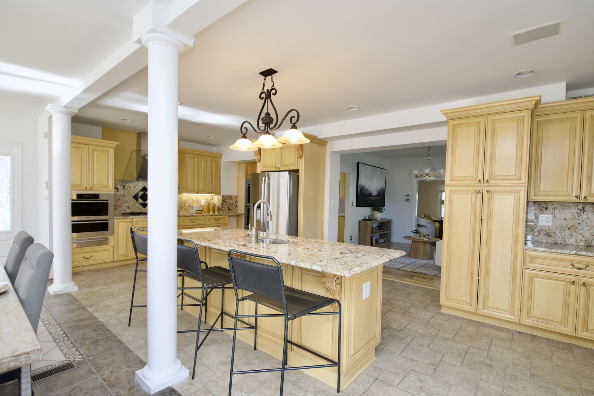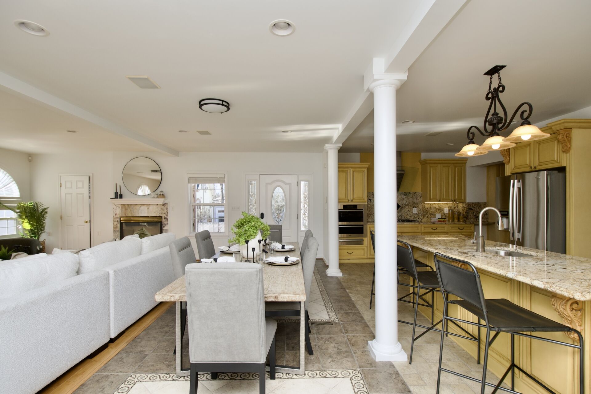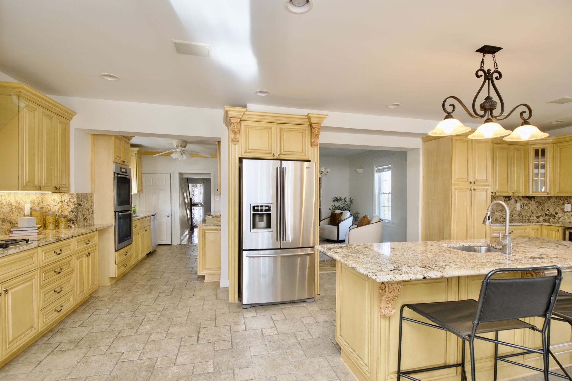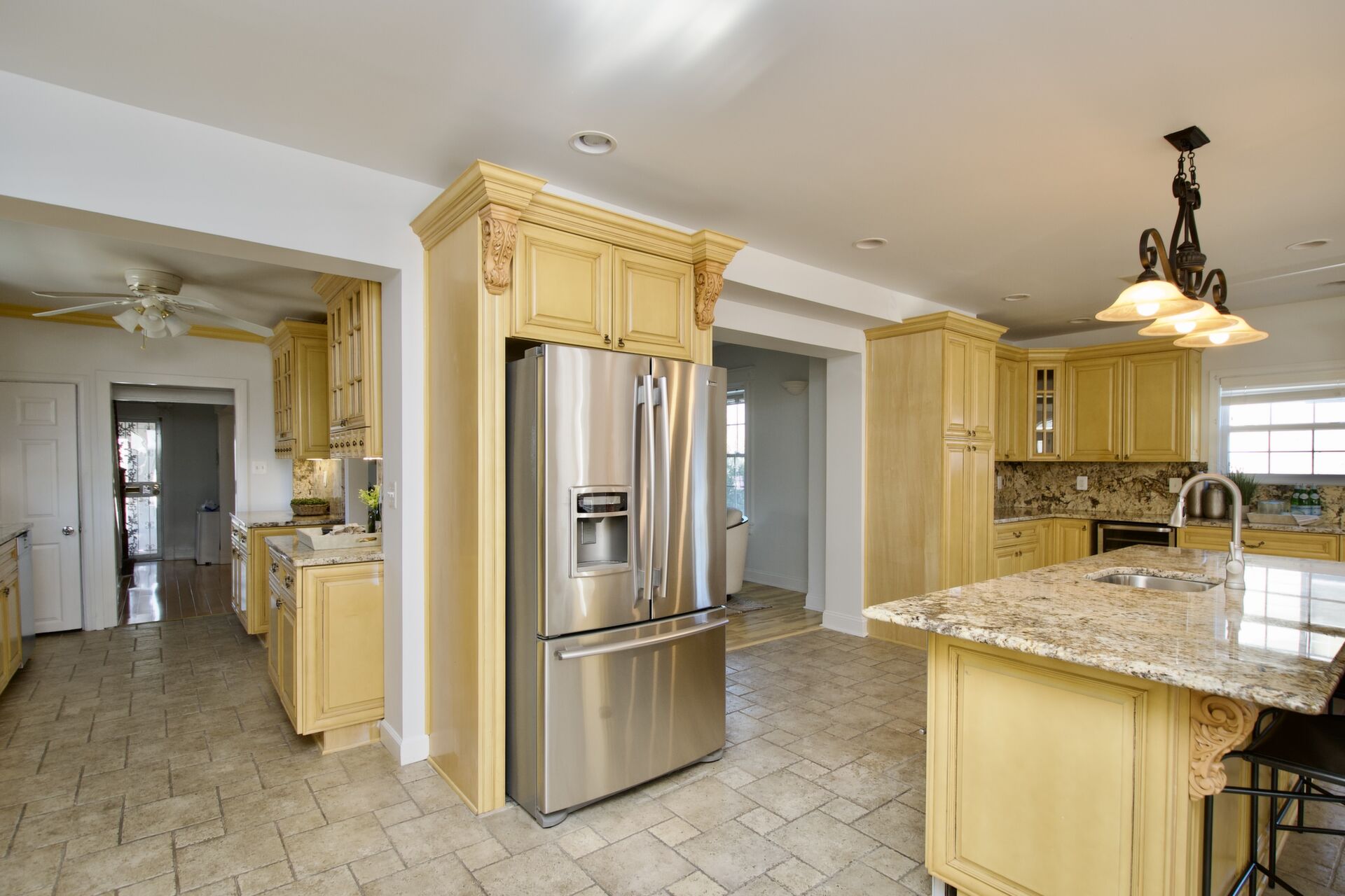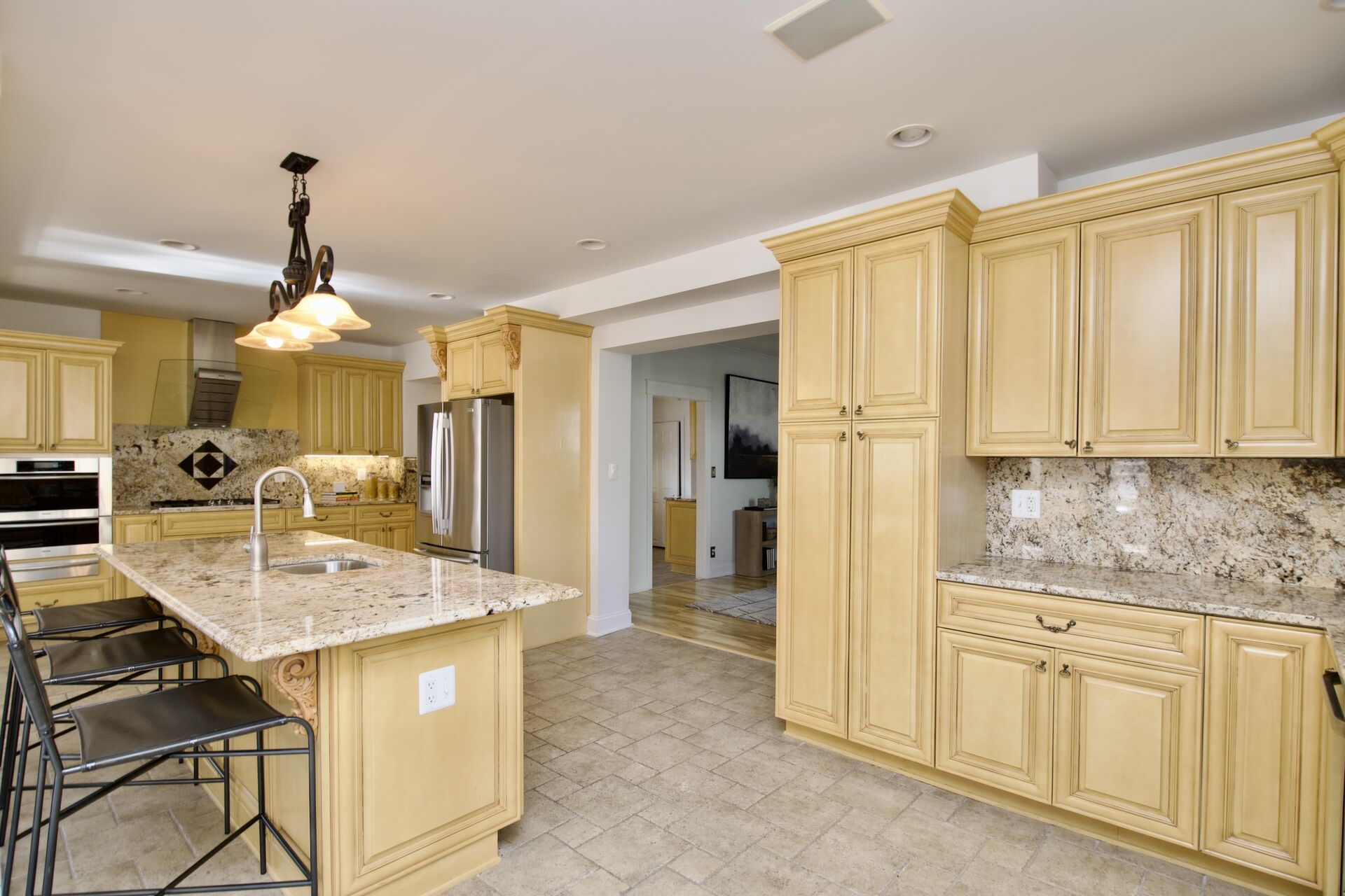 This home boasts a large sun filled family room with a fireplace, primary bedroom with deluxe bath and dual walk-in closets, the lower level features a media room and your patio has an outdoor kitchen!