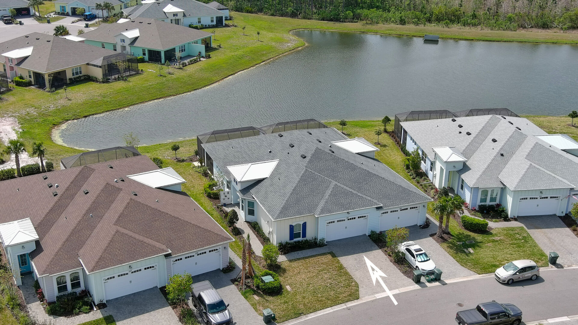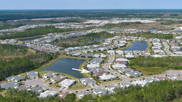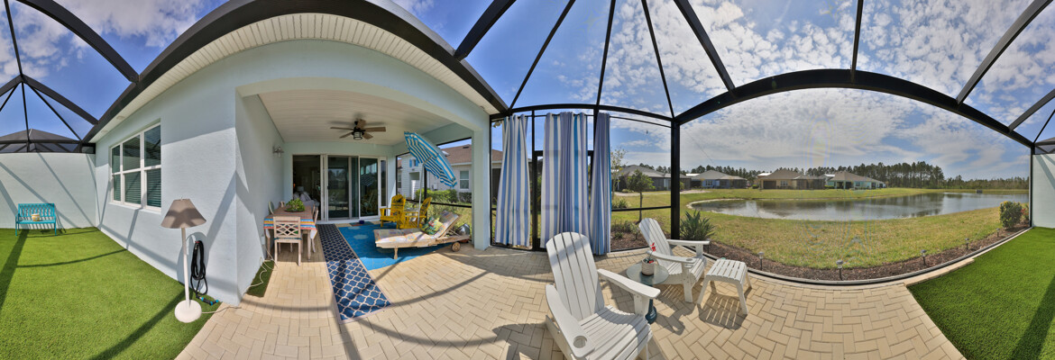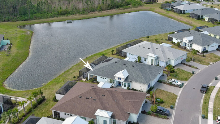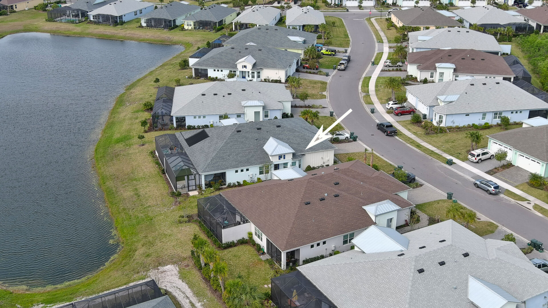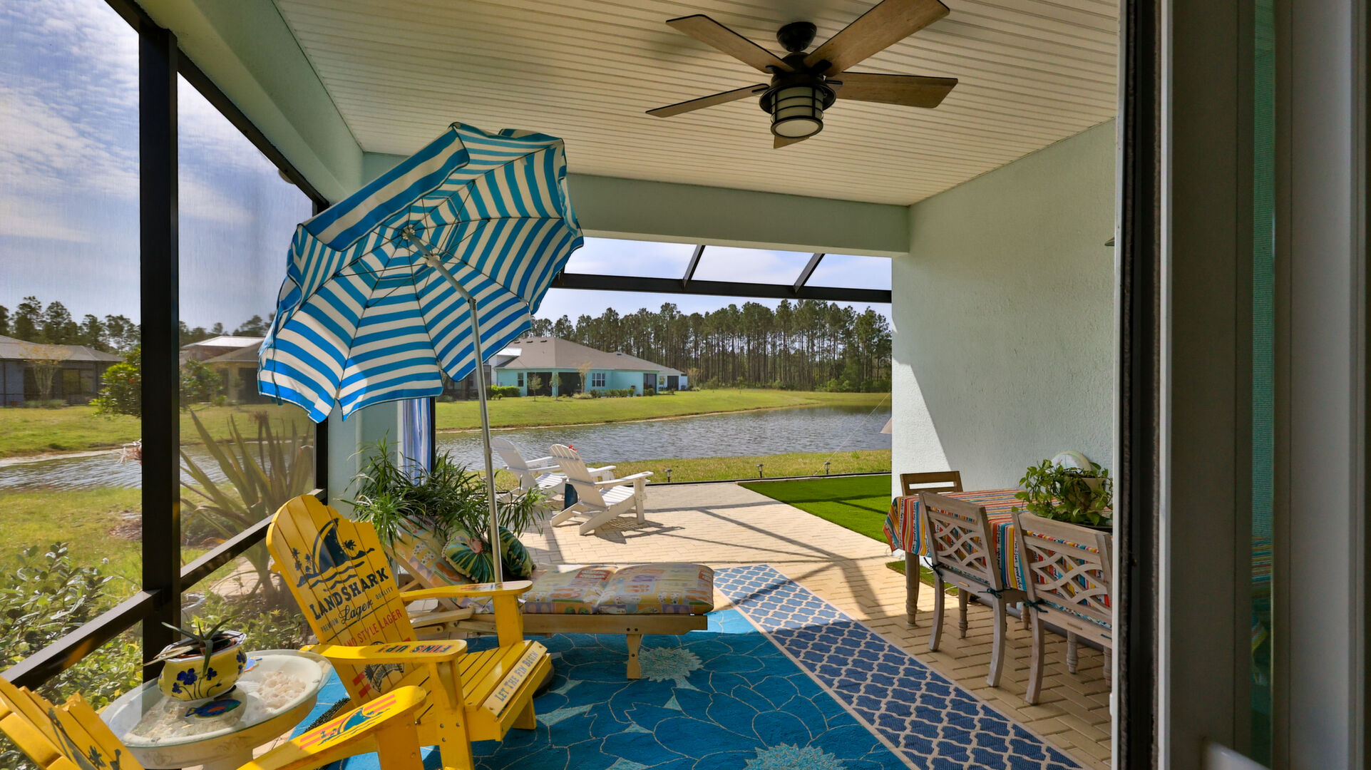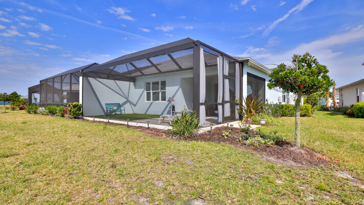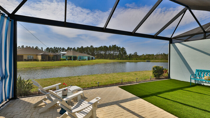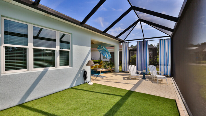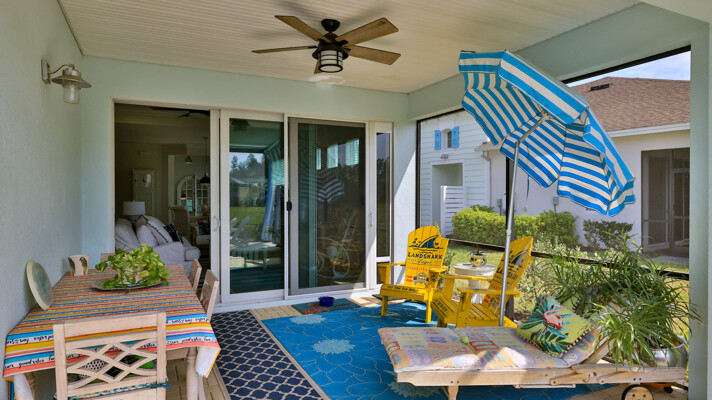 JAW-DROPPING, light, bright, & spacious home -- w/ extended, PANORAMIC screened lanai on which to enjoy gorgeous sunsets over the water! Adjacent to all the RENOWNED AMENITIES for which Margaritaville is famous, this stunning villa is TRULY dog-friendly, w/a small doggie door, outdoor turf, and beautiful, durable laminate flooring. The upgrades are unending, starting with hurricane-rated windows, quartz counters & backsplash, crown molding in EVERY room, upgraded hardware, pull-out & soft-close drawers throughout the kitchen, gas stove, convection oven, & designer tile flooring in the guest bath. This is the ONLY villa floorplan with a 2.5 car garage to store a nice variety of toys-- even more than many of the single-family houses in this award-winning 55+ community. PRICED to SELL, this gem is one you need to see, and offers even more than its own unique beauty. Start living your best life with the fun, beachy vibe and endless neighborhood activities from which to choose. From trivia & karaoke nights, to fitness classes, the Bar & Chill restaurant, to themed parties & events, there's something for EVERYONE in this gated community. Included within your HOA fees, you have access to an on-site office center, state-of-the-art fitness center, three heated pools, free shuttles to the Latitude Margaritaville beach club, a pottery center, a wood shop, an on-site movie theater, dog park, tennis, pickleball, golf cart paths throughout, and more. Grab it while you can!