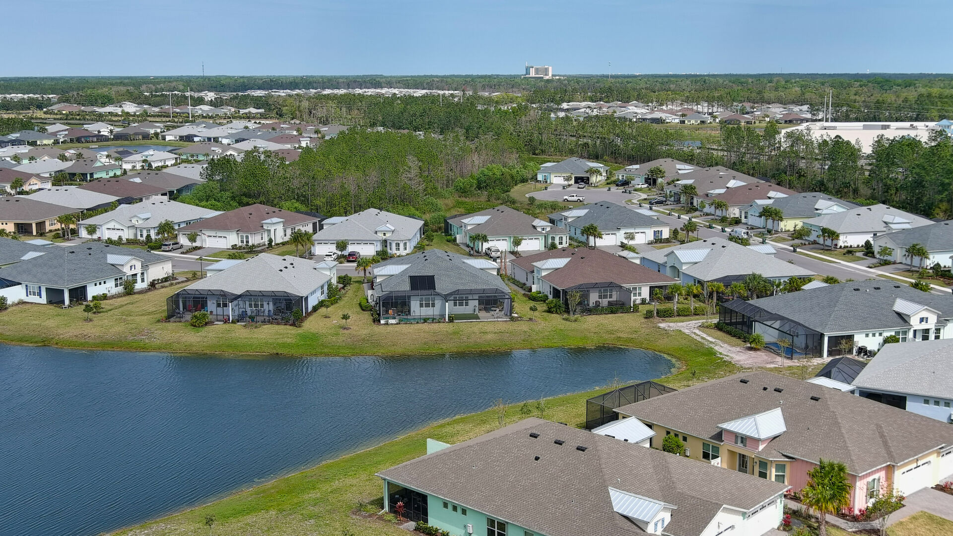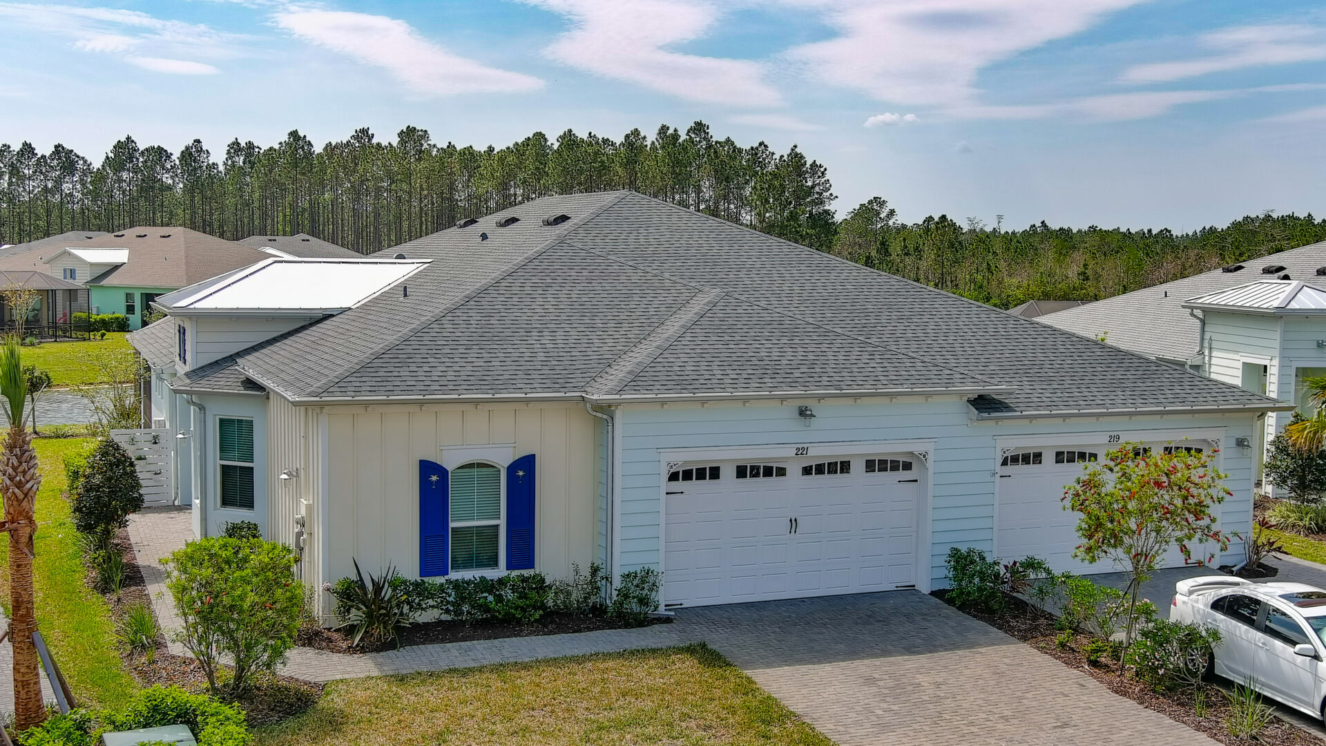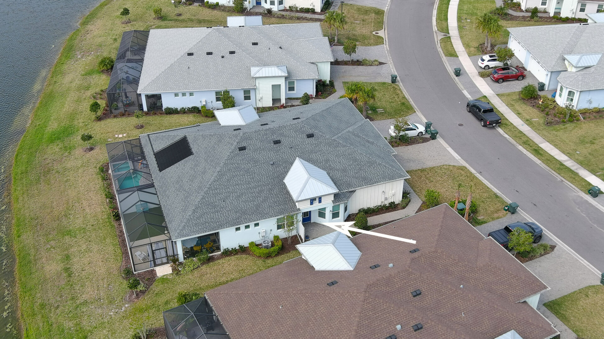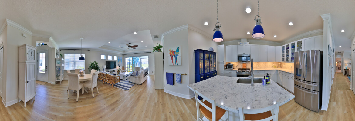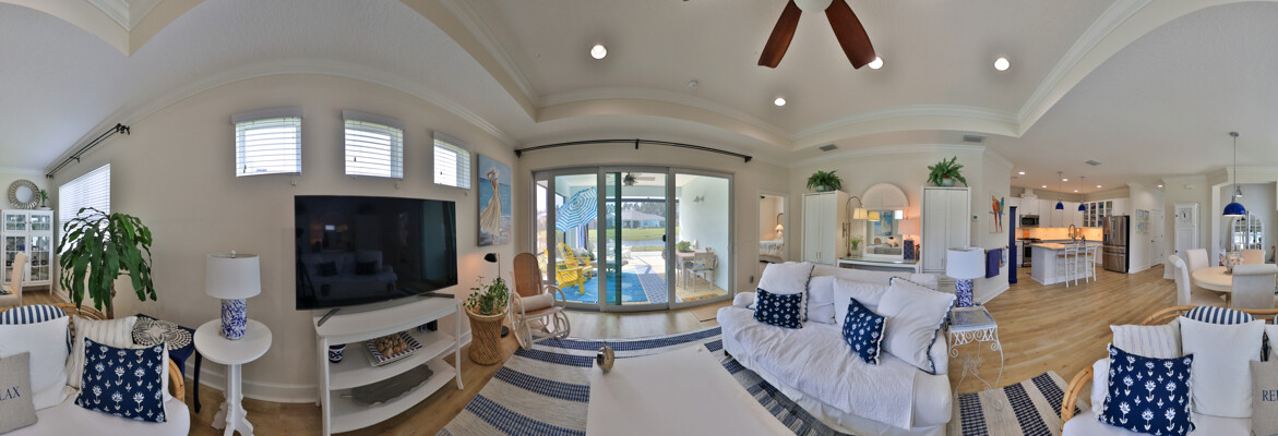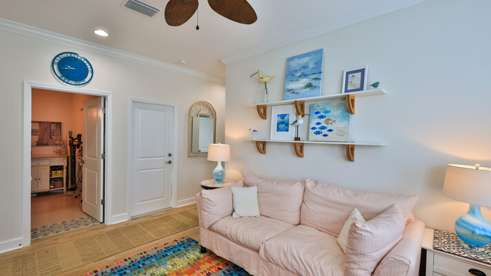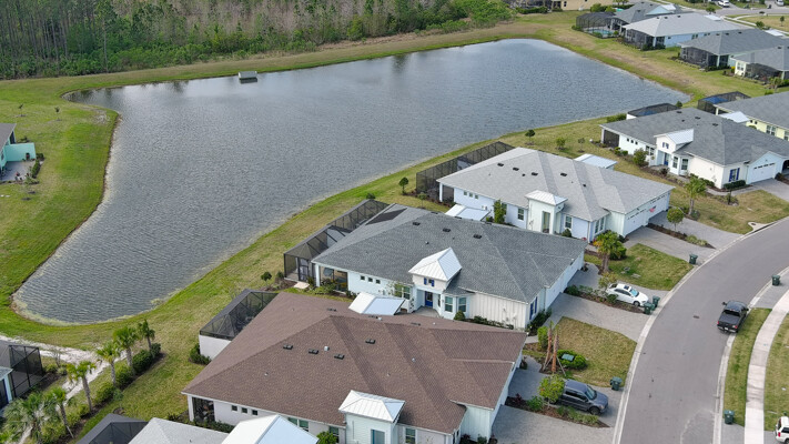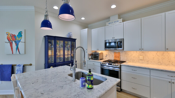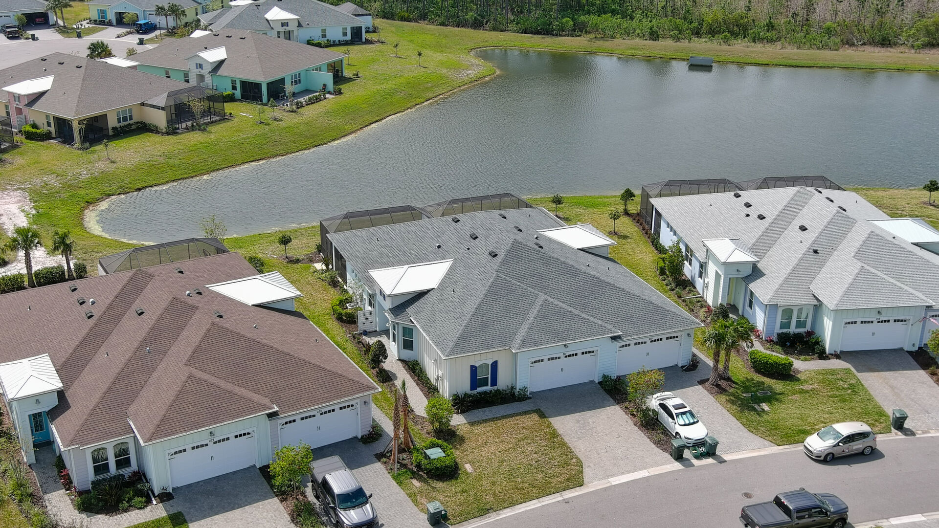JAW-DROPPING, light, bright, & spacious home -- w/ extended, PANORAMIC screened lanai on which to enjoy gorgeous sunsets over the water! Adjacent to all the RENOWNED AMENITIES for which Margaritaville is famous, this stunning villa is TRULY dog-friendly, w/a small doggie door, outdoor turf, and beautiful, durable laminate flooring. The upgrades are unending, starting with hurricane-rated windows, quartz counters & backsplash, crown molding in EVERY room, upgraded hardware, pull-out & soft-close drawers throughout the kitchen, gas stove, convection oven, & designer tile flooring in the guest bath. This is the ONLY villa floorplan with a 2.5 car garage to store a nice variety of toys-- even more than many of the single-family houses in this award-winning 55+ community. PRICED to SELL, this gem is one you need to see, and offers even more than its own unique beauty. Start living your best life with the fun, beachy vibe and endless neighborhood activities from which to choose. From trivia & karaoke nights, to fitness classes, the Bar & Chill restaurant, to themed parties & events, there's something for EVERYONE in this gated community. Included within your HOA fees, you have access to an on-site office center, state-of-the-art fitness center, three heated pools, free shuttles to the Latitude Margaritaville beach club, a pottery center, a wood shop, an on-site movie theater, dog park, tennis, pickleball, golf cart paths throughout, and more. Grab it while you can!