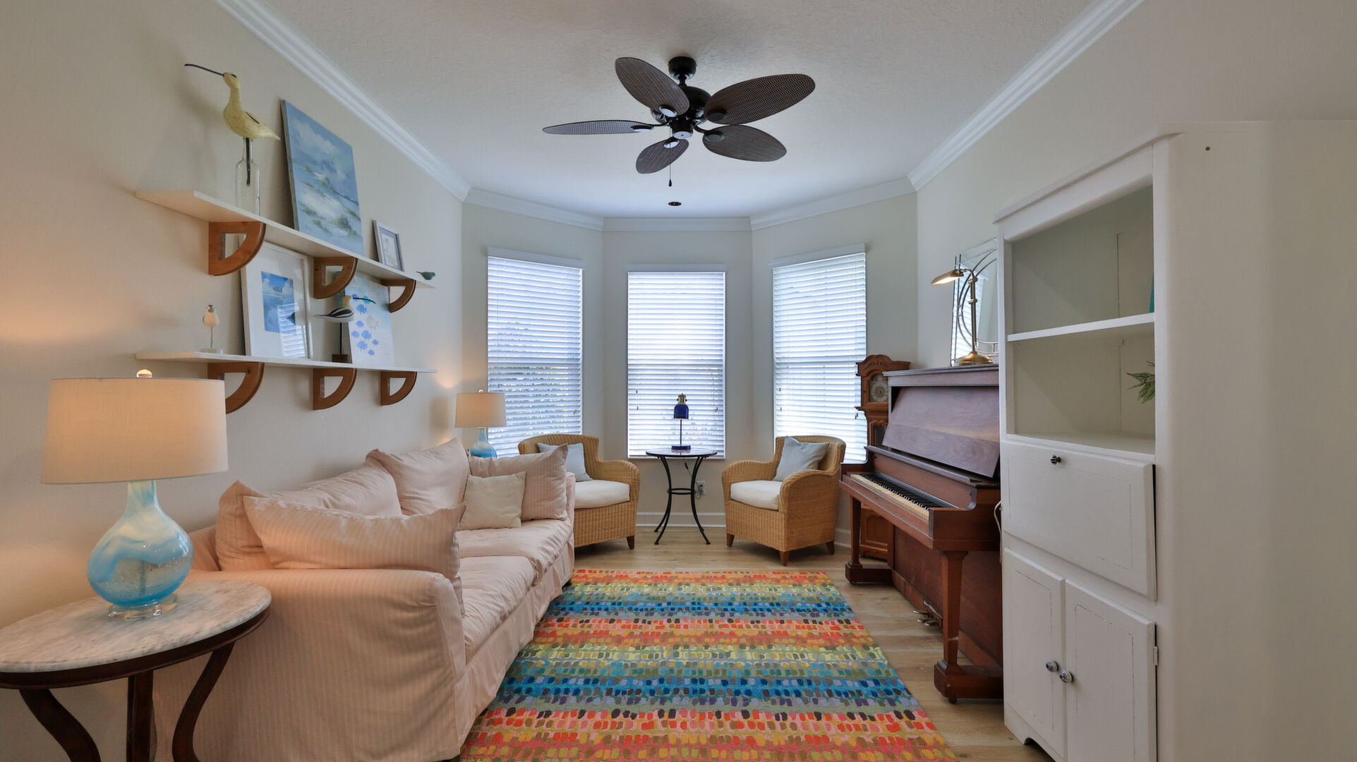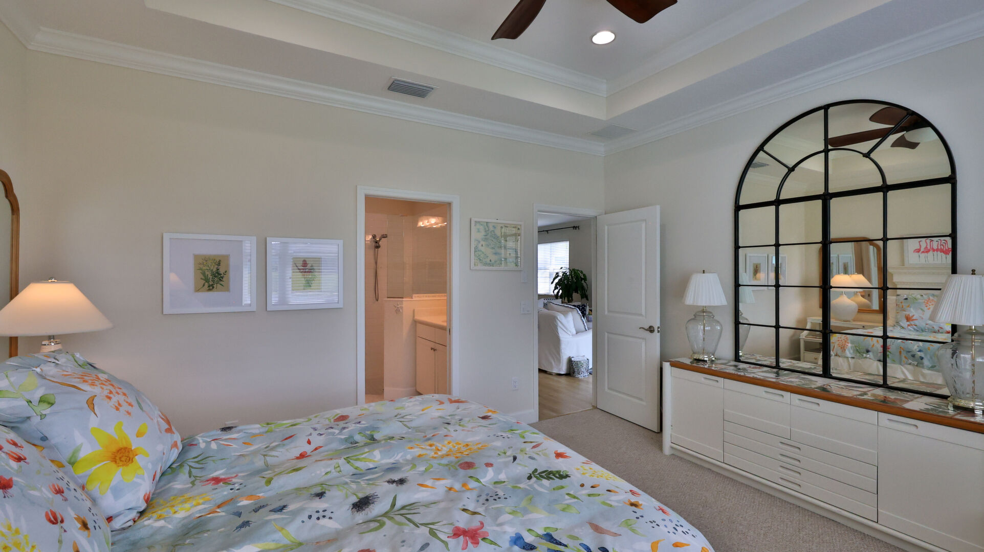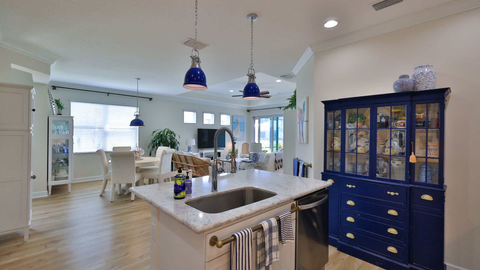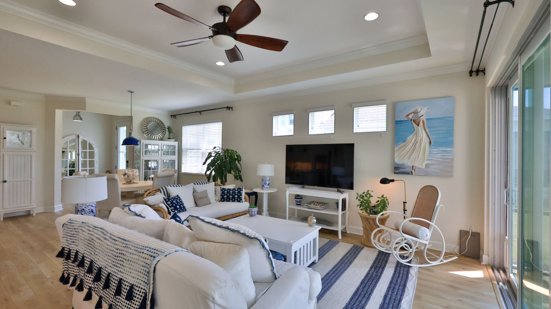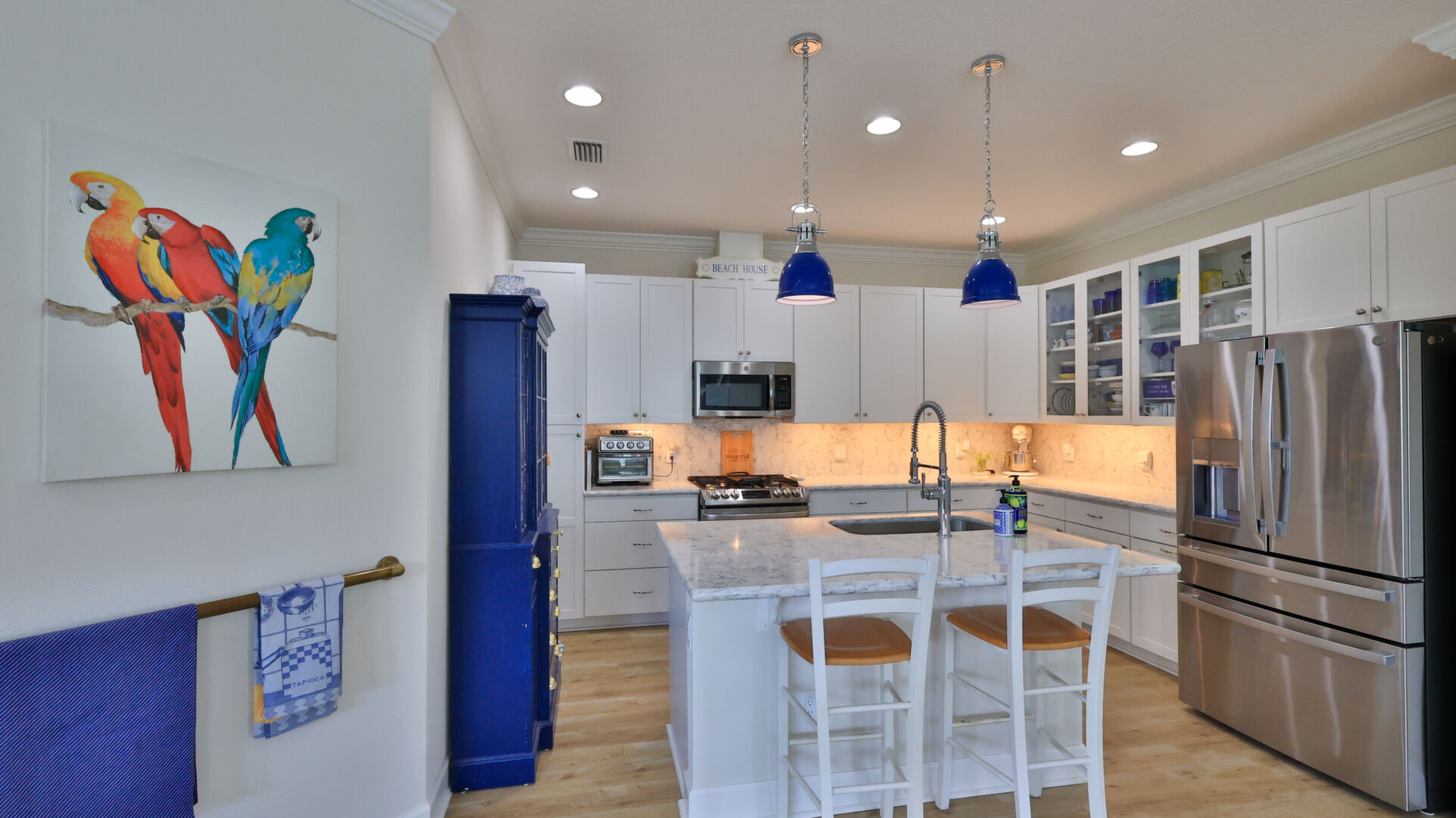 JAW-DROPPING, light, bright, & spacious home -- w/ extended, PANORAMIC screened lanai on which to enjoy gorgeous sunsets over the water! Adjacent to all the RENOWNED AMENITIES for which Margaritaville is famous, this stunning villa is TRULY dog-friendly, w/a small doggie door, outdoor turf, and beautiful, durable laminate flooring. The upgrades are unending, starting with hurricane-rated windows, quartz counters & backsplash, crown molding in EVERY room, upgraded hardware, pull-out & soft-close drawers throughout the kitchen, gas stove, convection oven, & designer tile flooring in the guest bath. This is the ONLY villa floorplan with a 2.5 car garage to store a nice variety of toys-- even more than many of the single-family houses in this award-winning 55+ community. PRICED to SELL, this gem is one you need to see, and offers even more than its own unique beauty. Start living your best life with the fun, beachy vibe and endless neighborhood activities from which to choose. From trivia & karaoke nights, to fitness classes, the Bar & Chill restaurant, to themed parties & events, there's something for EVERYONE in this gated community. Included within your HOA fees, you have access to an on-site office center, state-of-the-art fitness center, three heated pools, free shuttles to the Latitude Margaritaville beach club, a pottery center, a wood shop, an on-site movie theater, dog park, tennis, pickleball, golf cart paths throughout, and more. Grab it while you can!