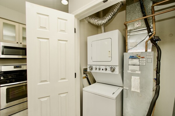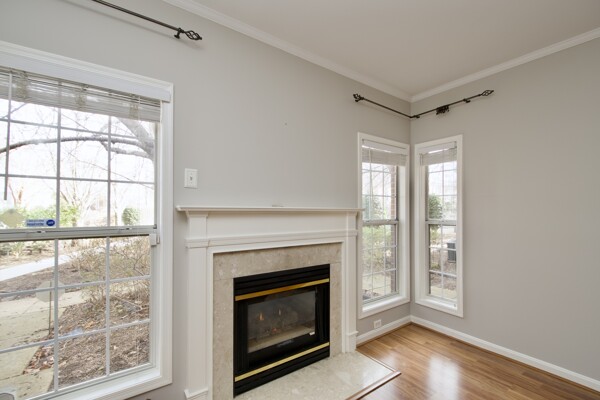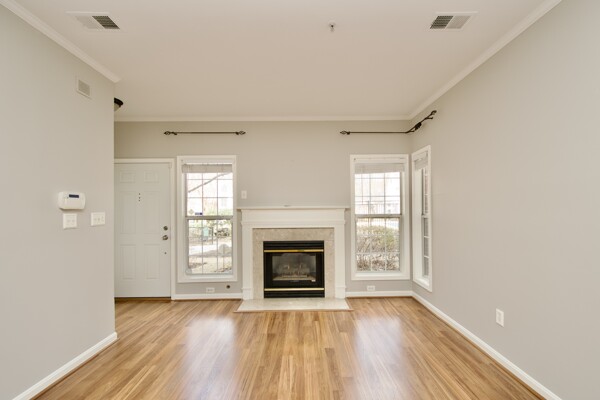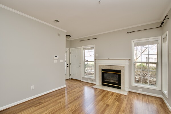 Enjoy updated flooring, kitchen with island seating, washer/dryer, large living/dining room with cozy fireplace and a private patio.