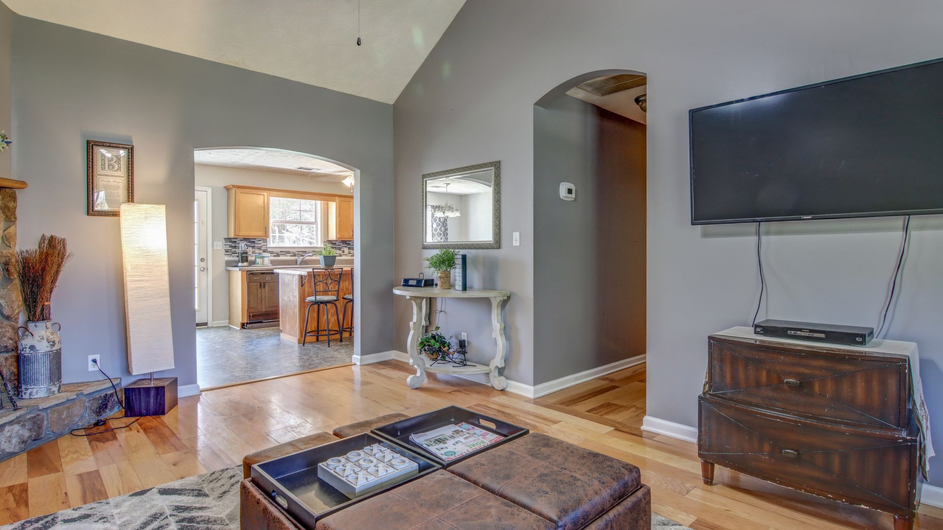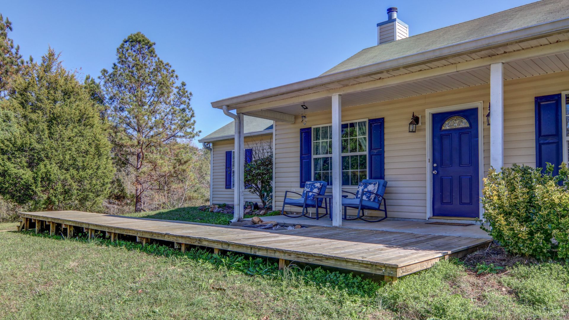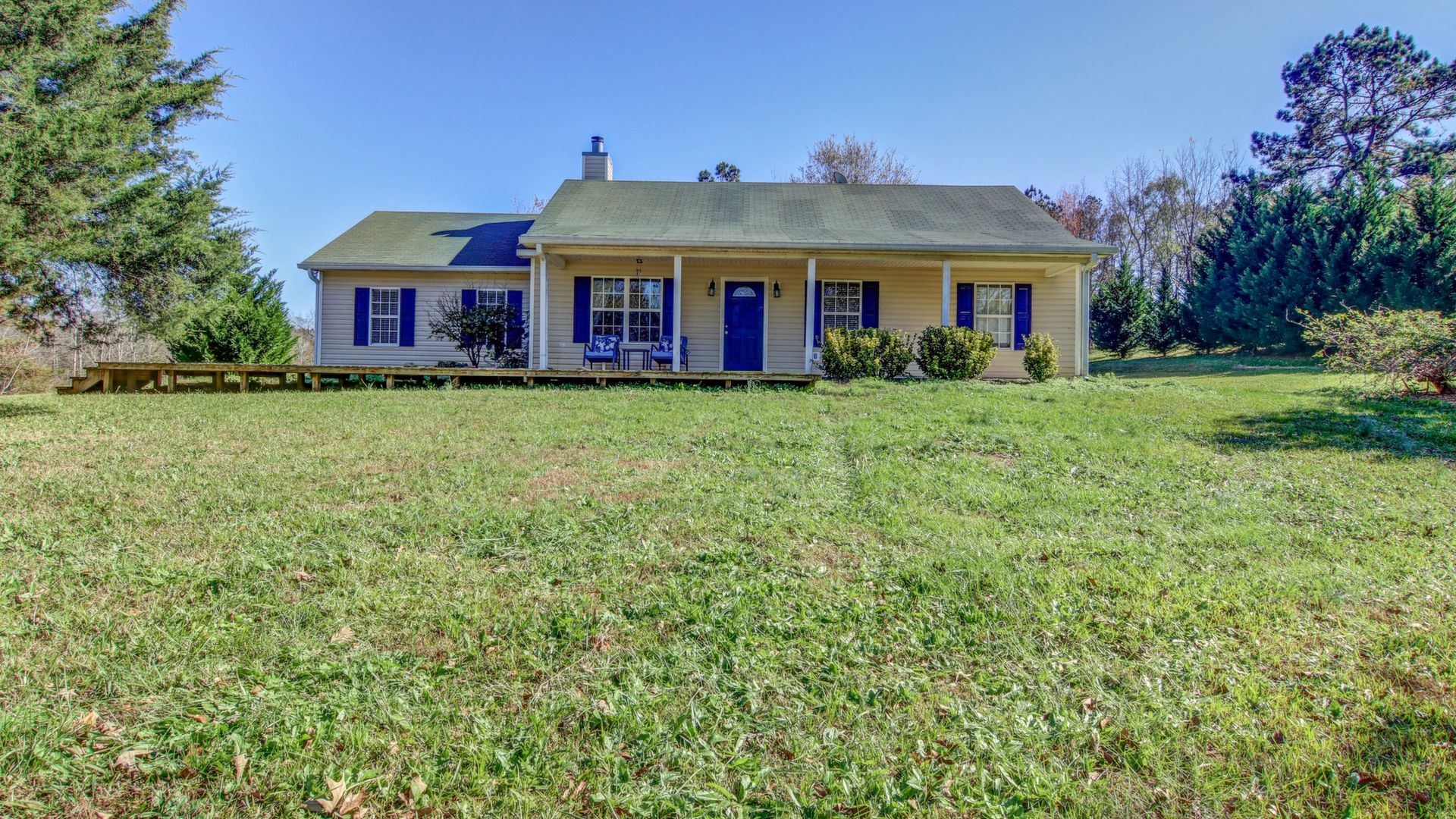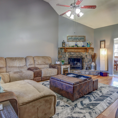 This 5 bedroom/ 2 full bath home sits on 2 acres of pure country. This home has so much to offer with a rocking chair front porch, private backyard, and beautiful trees. Living room has vaulted ceiling, Stone fireplace, and wood mantel. Kitchen has wood cabinets, island, and dining area. Most rooms have been recently painted. HVAC installed in 2017, Water heater in 2019, Septic serviced in 2018. Some furniture may be for sale.