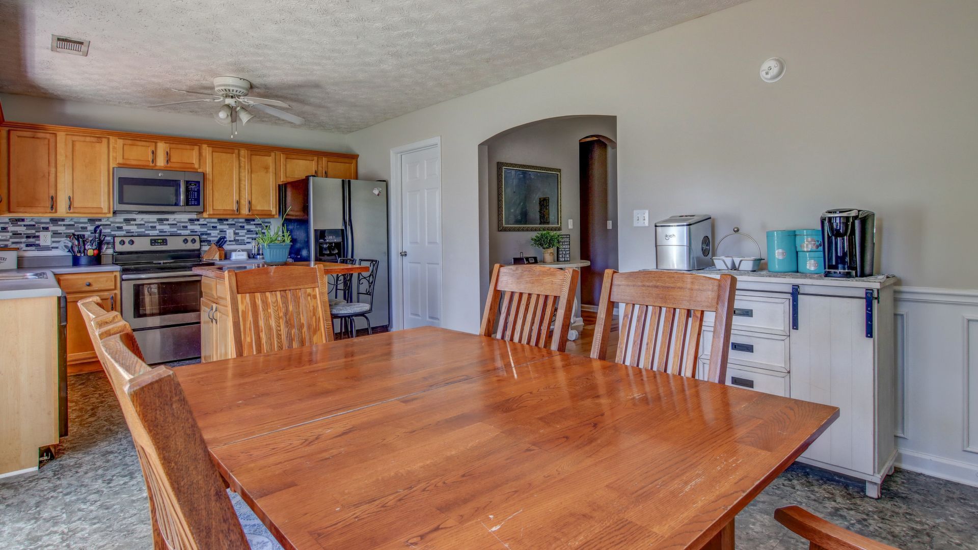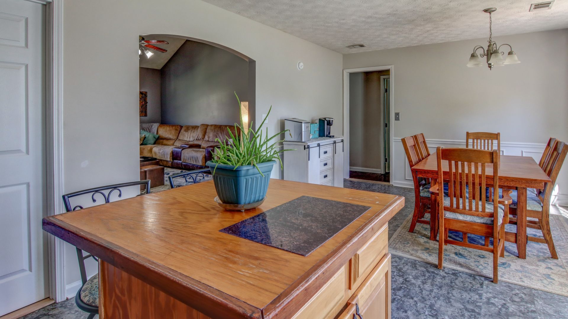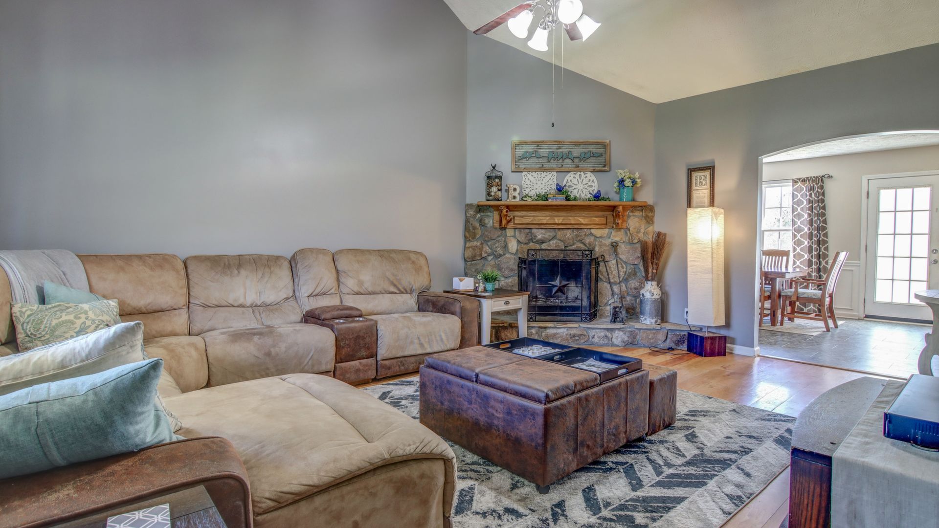 This 5 bedroom/ 2 full bath home sits on 2 acres of pure country. This home has so much to offer with a rocking chair front porch, private backyard, and beautiful trees. Living room has vaulted ceiling, Stone fireplace, and wood mantel. Kitchen has wood cabinets, island, and dining area. Most rooms have been recently painted. HVAC installed in 2017, Water heater in 2019, Septic serviced in 2018. Some furniture may be for sale.