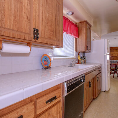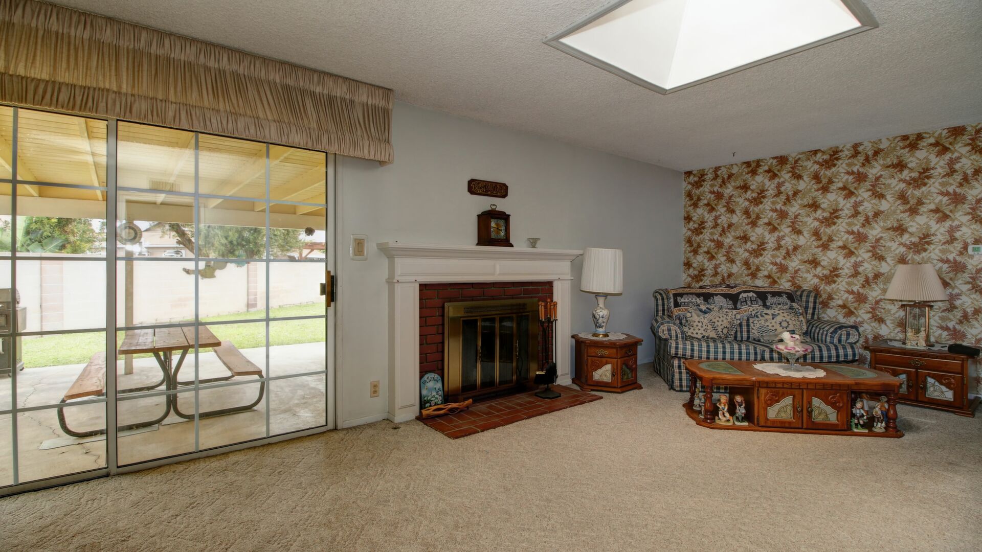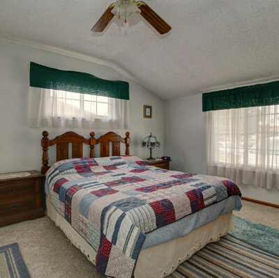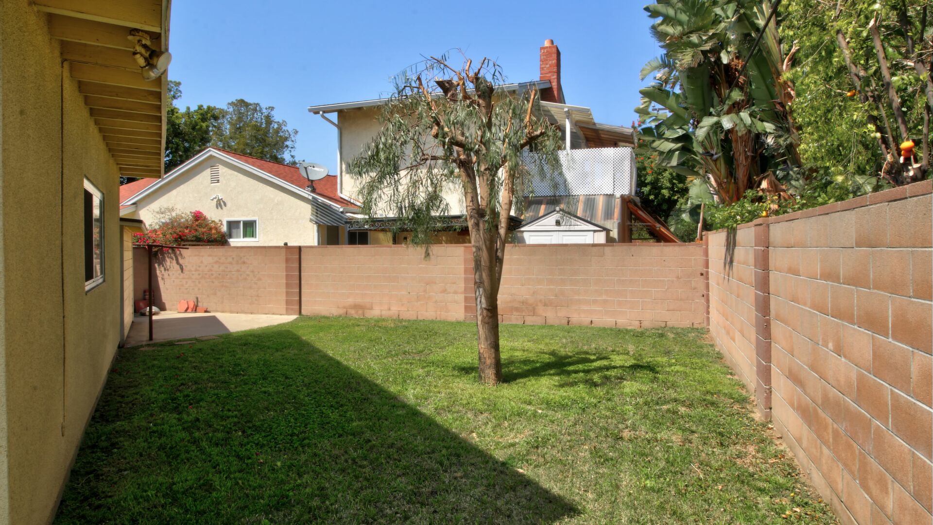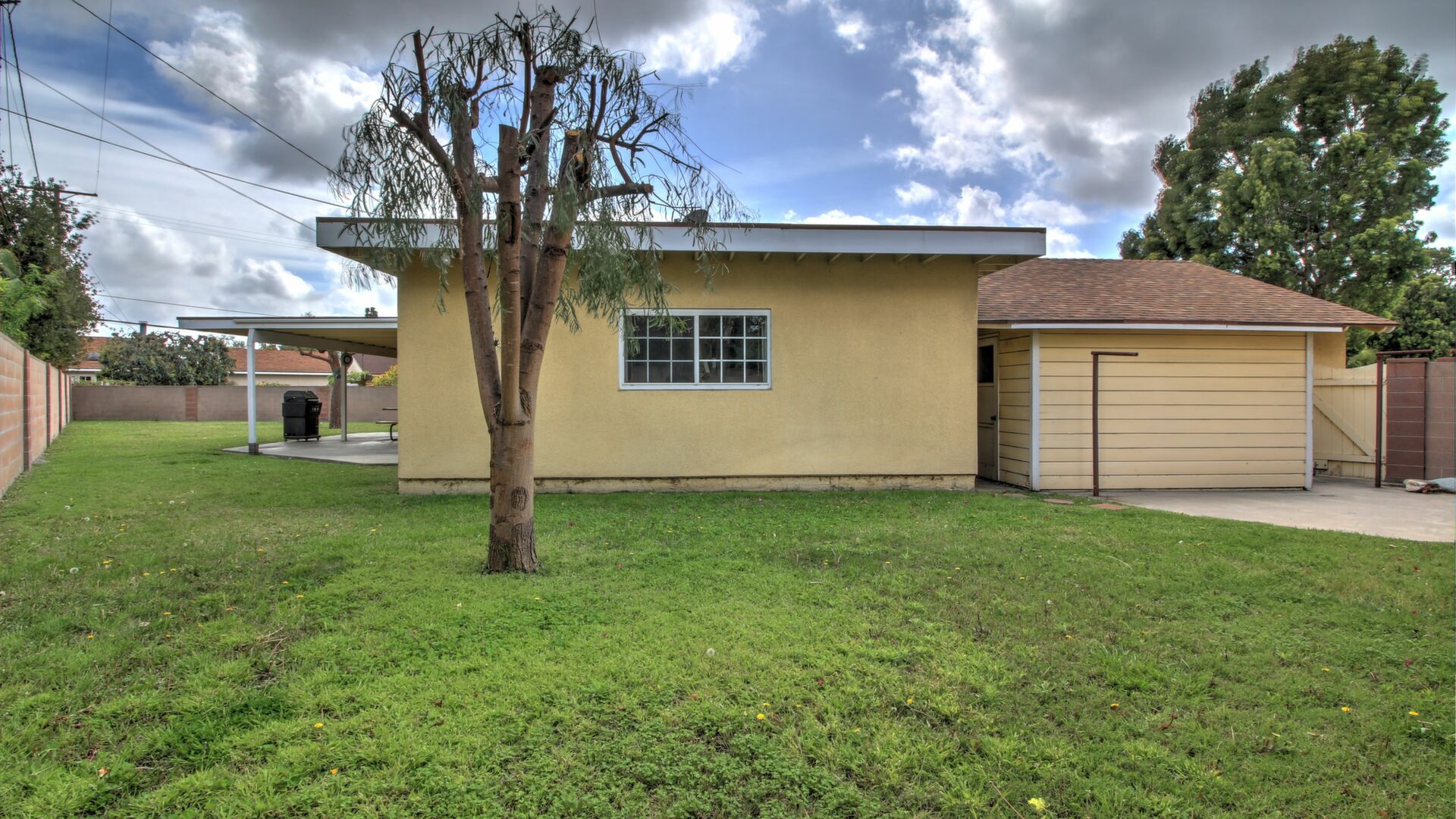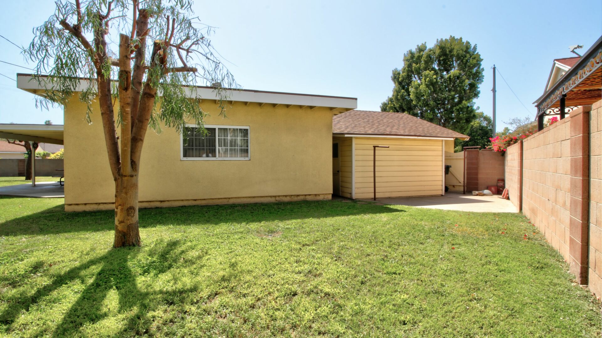There are two concrete patios. The main patio is a large, covered area that is easily accessible from the great room and the dining area. The other patio is well separated and located in the secondary backyard.