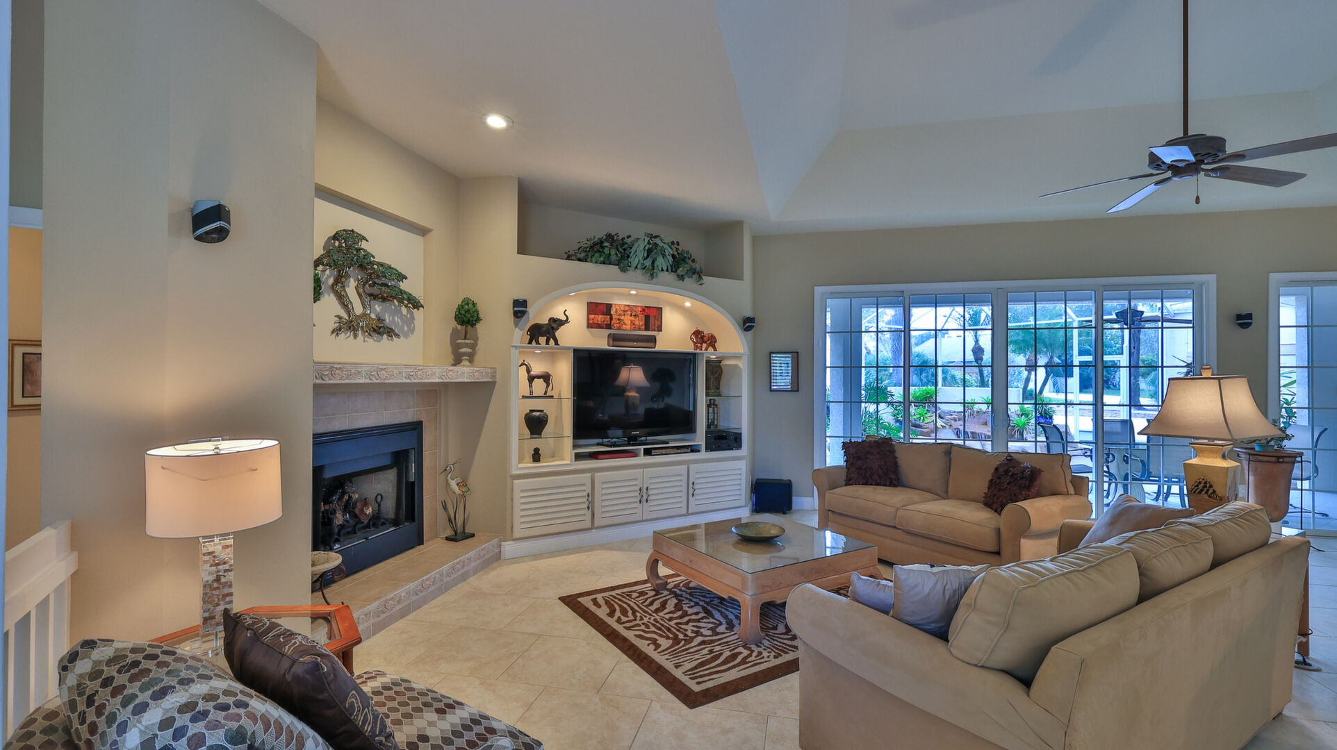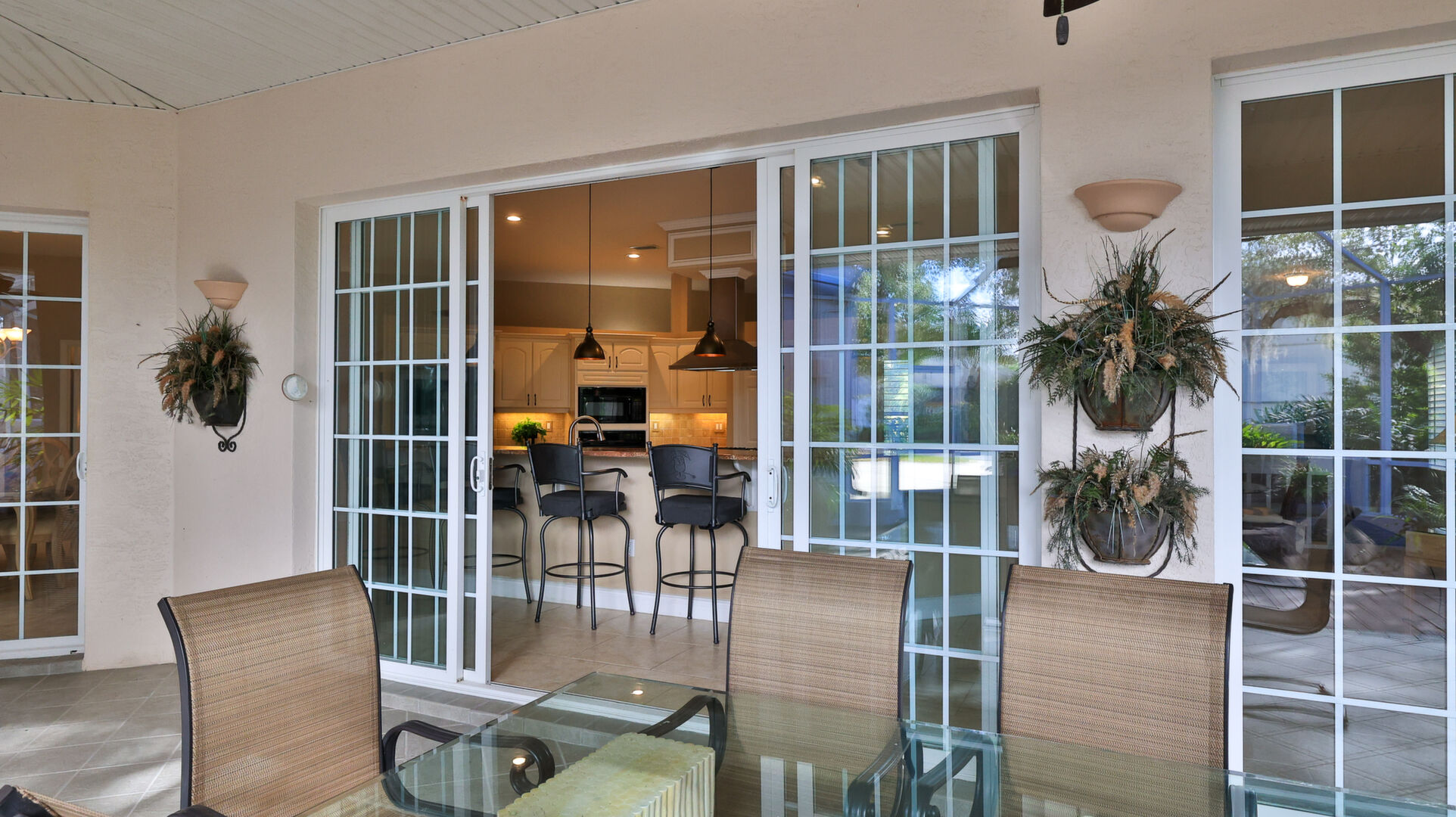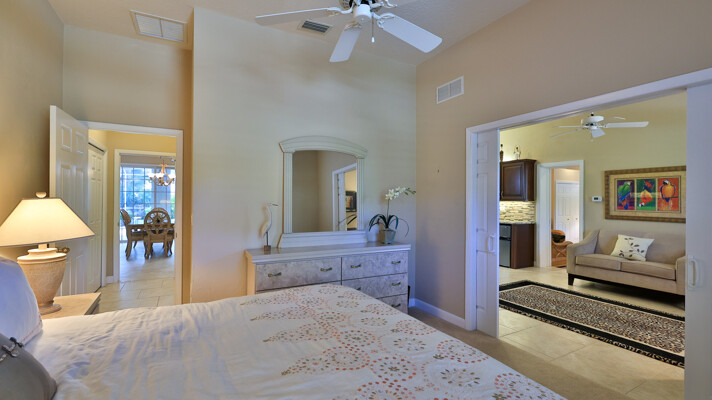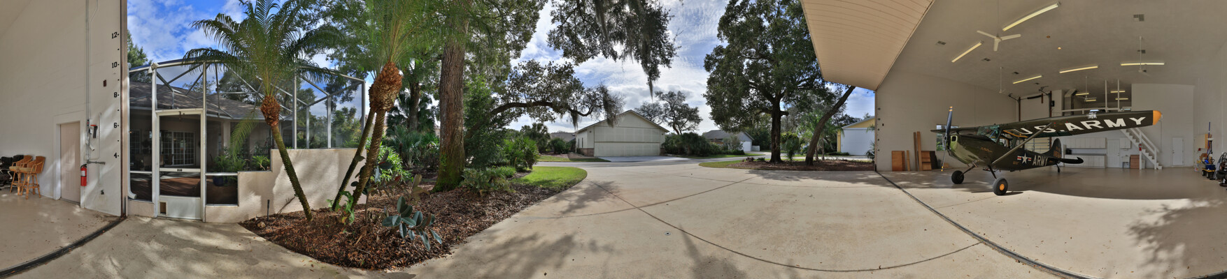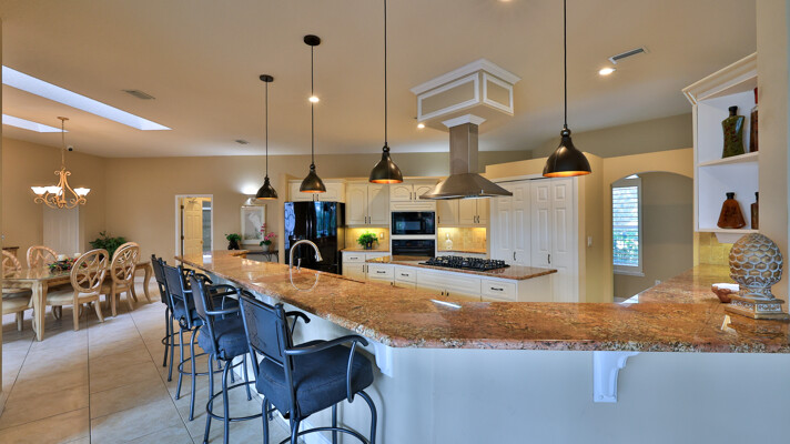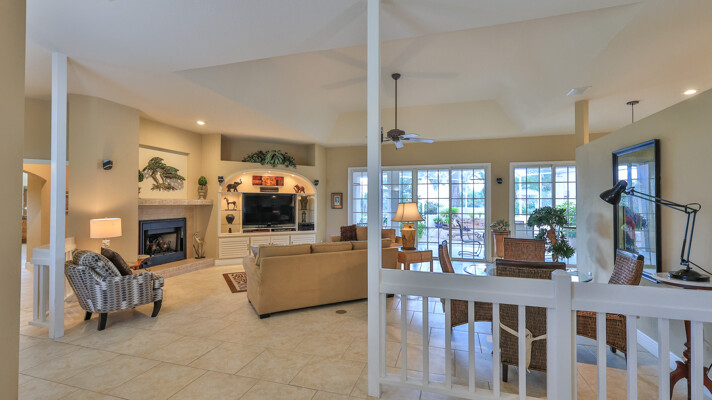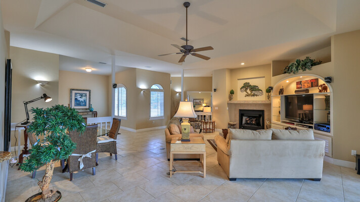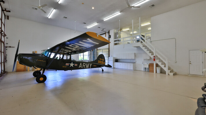 Live your dream in this appealing one-story home with an attached 48' x 40' hangar. Relish tiled social rooms, high ceilings, comfortable living areas, a convenient home office, plantation shutters, a gas fireplace, covered patio and lanai and a 2019 roof. The attractive kitchen with a lengthy breakfast bar has a center-island 5-burner gas cook-top, granite counters, plentiful cabinets and a pantry. French doors open to the fabulous primary retreat with a private den and a wonderful walk-in closet; its ensuite bath has dual vanities, a soaking tub and walk-in shower. With a split-bedroom floor plan, two bedrooms share a bath and a lounge with a kitchenette, a potential ''in-law'' suite. The air-conditioned hangar has a 48'x18' bi-fold door, a storage loft and a 10'x10' street side door. Located in 24-hour guard gated Spruce Creek Fly-In, the quality of lifestyle found in this friendly community is unmatched. Residents enjoy a multitude of amenities and activities, a playground and parks and access to Spruce Creek waterway for fishing or to launch a canoe or kayak. Conveniently located, you can easily explore local shopping, dining and entertainment options with quick access to area beaches. Within in the community there is an on-site public restaurant, a hair salon and other business services. The optional membership country club offers even more with tennis, pickleball, pool, golf, fitness facilities and a private restaurant. Featuring golf-cart friendly streets, patrolling security and on-site management, Spruce Creek Fly-In also has a private airport with a 4000' x 176' paved runway, paved taxiways, a GPS approach, VASI lights and aviation services including fuel. You are minutes from Embry Riddle Aeronautical University, NASCAR headquarters and more. Most furniture and furnishings are available.