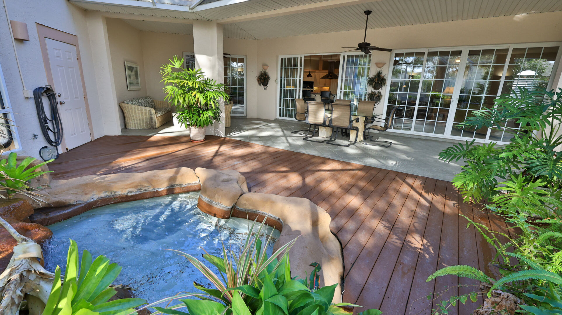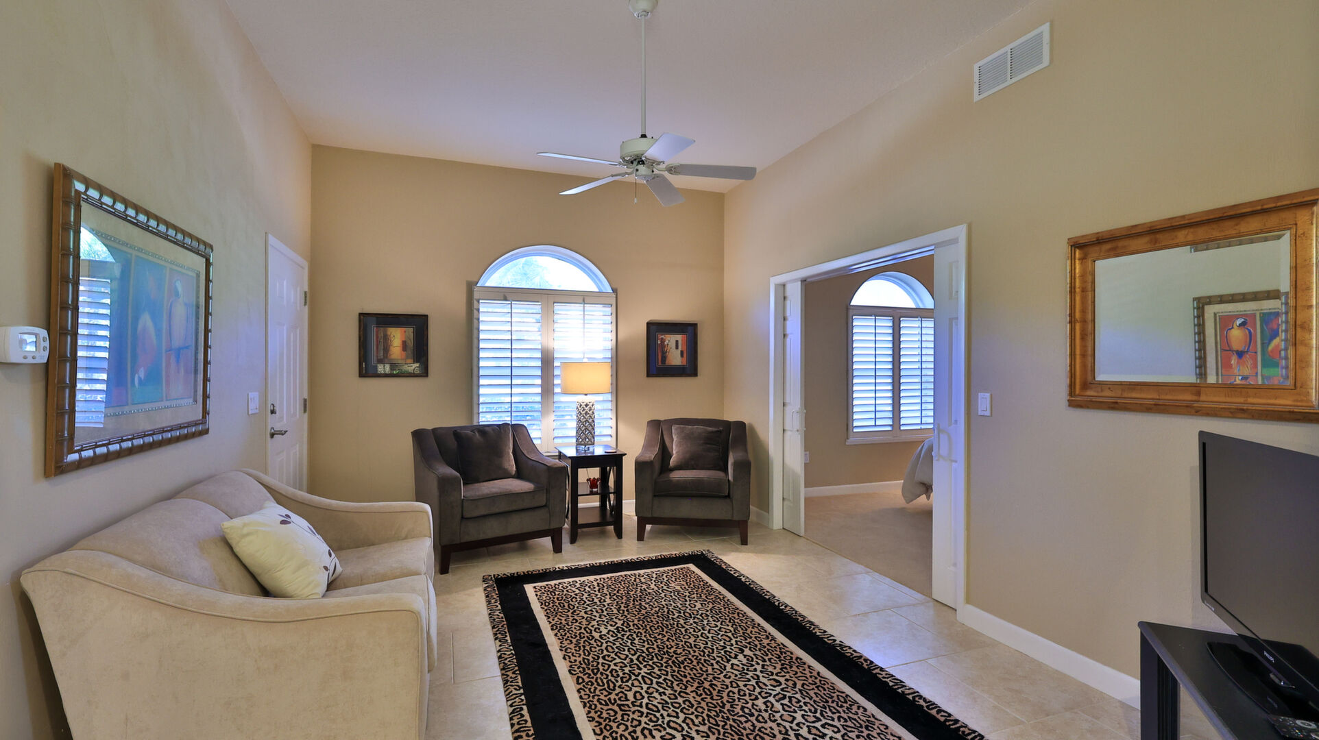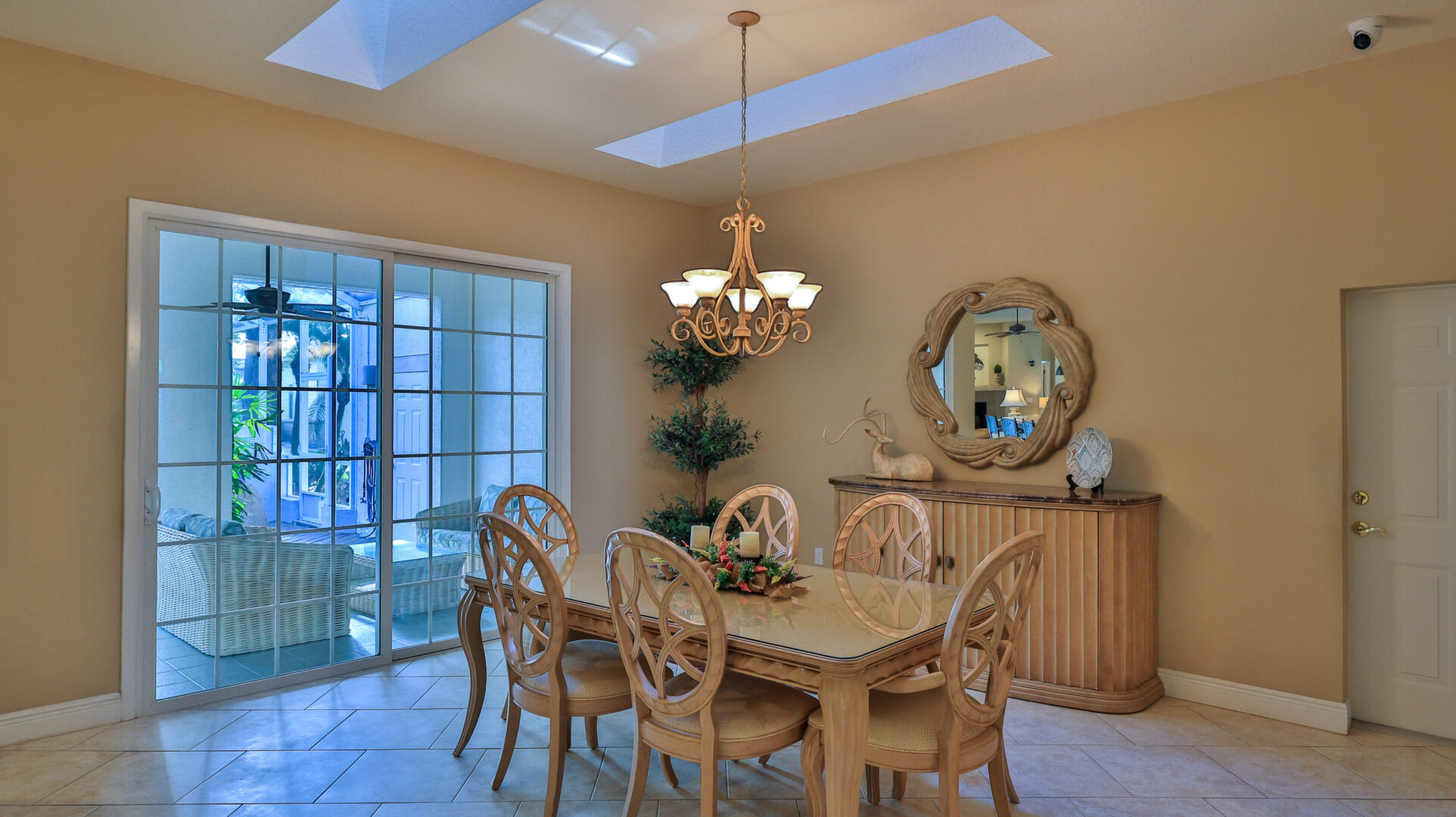 Live your dream in this appealing one-story home with an attached 48' x 40' hangar. Relish tiled social rooms, high ceilings, comfortable living areas, a convenient home office, plantation shutters, a gas fireplace, covered patio and lanai and a 2019 roof. The attractive kitchen with a lengthy breakfast bar has a center-island 5-burner gas cook-top, granite counters, plentiful cabinets and a pantry. French doors open to the fabulous primary retreat with a private den and a wonderful walk-in closet; its ensuite bath has dual vanities, a soaking tub and walk-in shower. With a split-bedroom floor plan, two bedrooms share a bath and a lounge with a kitchenette, a potential ''in-law'' suite. The air-conditioned hangar has a 48'x18' bi-fold door, a storage loft and a 10'x10' street side door. Located in 24-hour guard gated Spruce Creek Fly-In, the quality of lifestyle found in this friendly community is unmatched. Residents enjoy a multitude of amenities and activities, a playground and parks and access to Spruce Creek waterway for fishing or to launch a canoe or kayak. Conveniently located, you can easily explore local shopping, dining and entertainment options with quick access to area beaches. Within in the community there is an on-site public restaurant, a hair salon and other business services. The optional membership country club offers even more with tennis, pickleball, pool, golf, fitness facilities and a private restaurant. Featuring golf-cart friendly streets, patrolling security and on-site management, Spruce Creek Fly-In also has a private airport with a 4000' x 176' paved runway, paved taxiways, a GPS approach, VASI lights and aviation services including fuel. You are minutes from Embry Riddle Aeronautical University, NASCAR headquarters and more. Most furniture and furnishings are available.