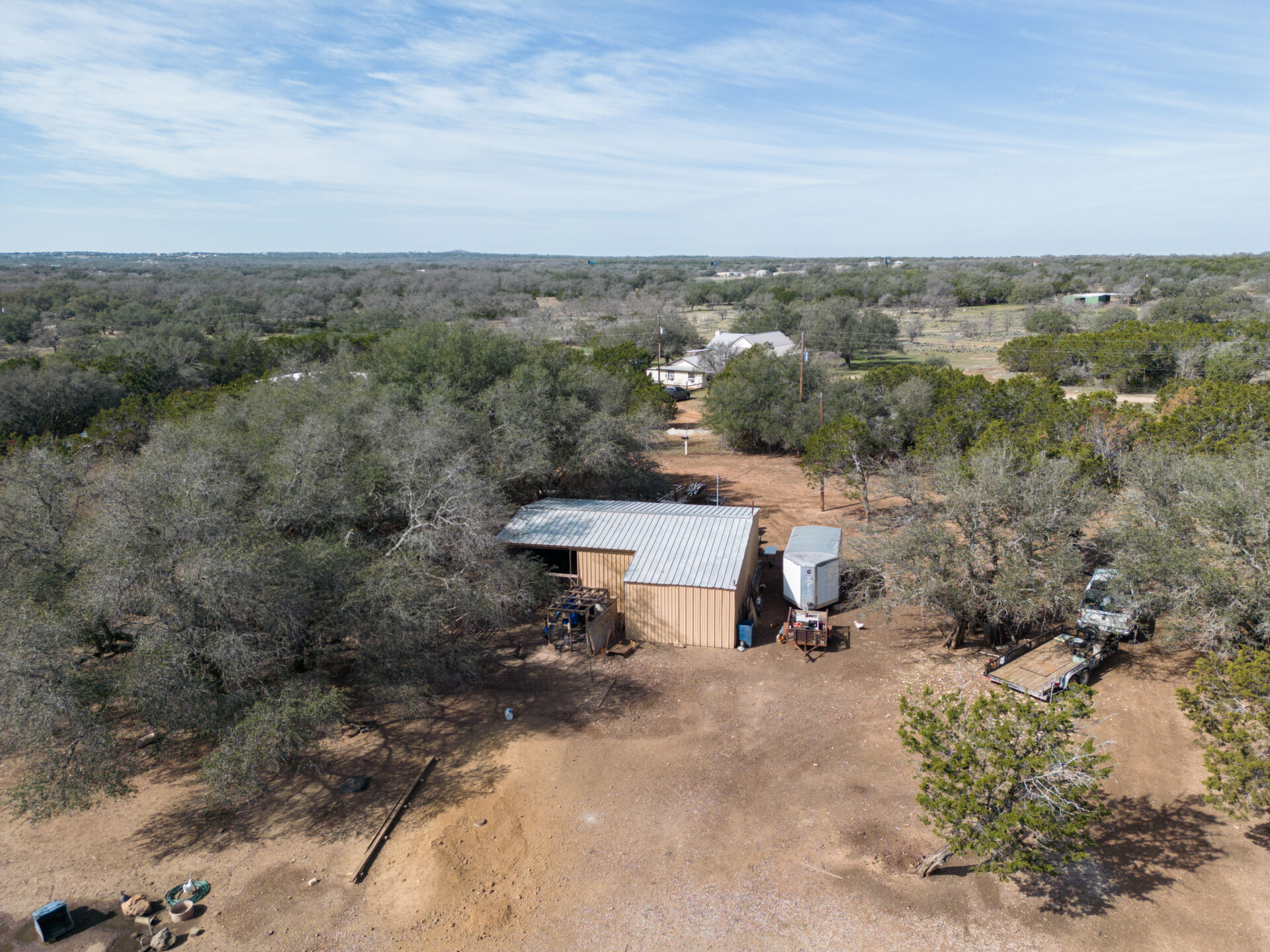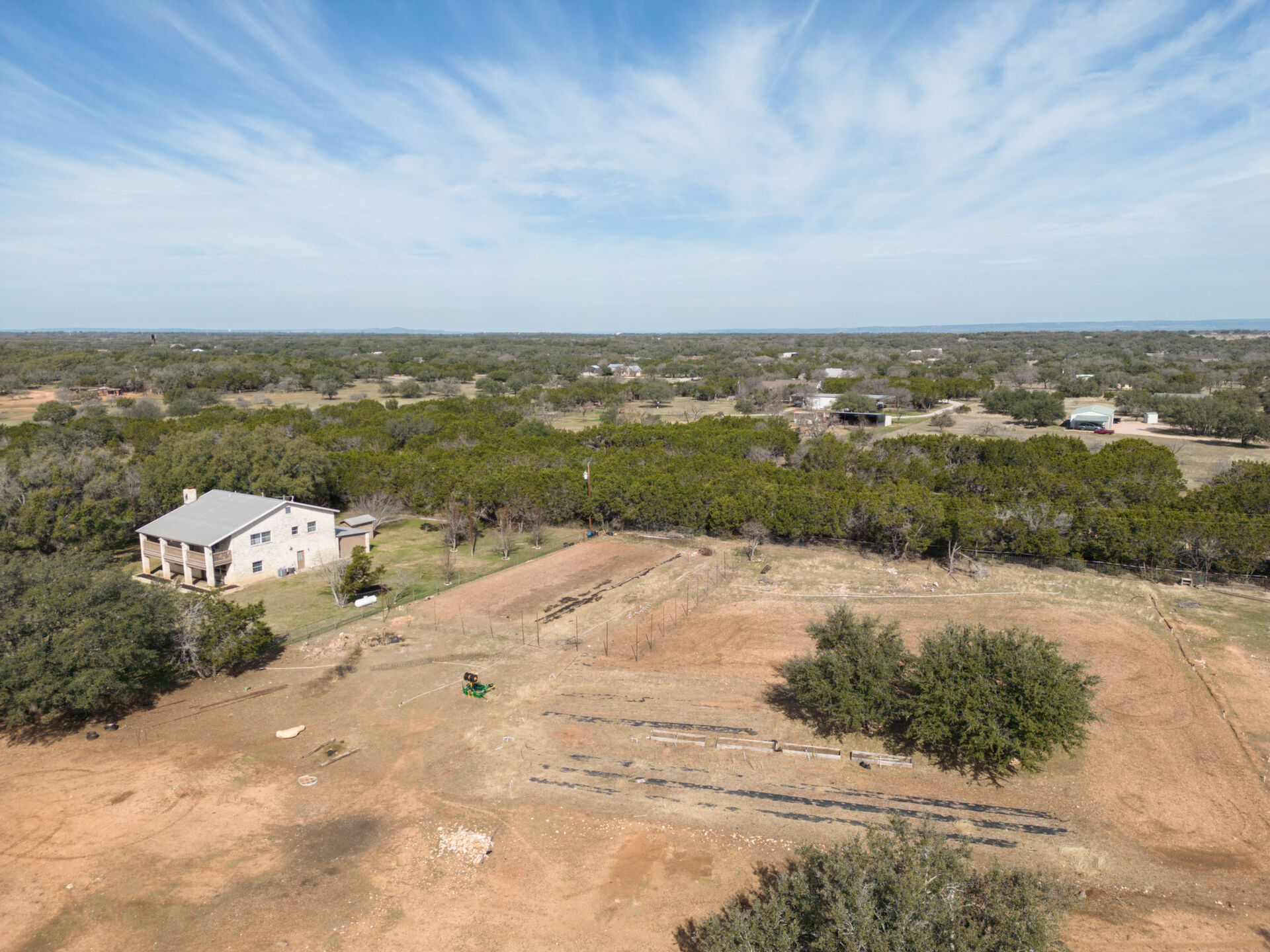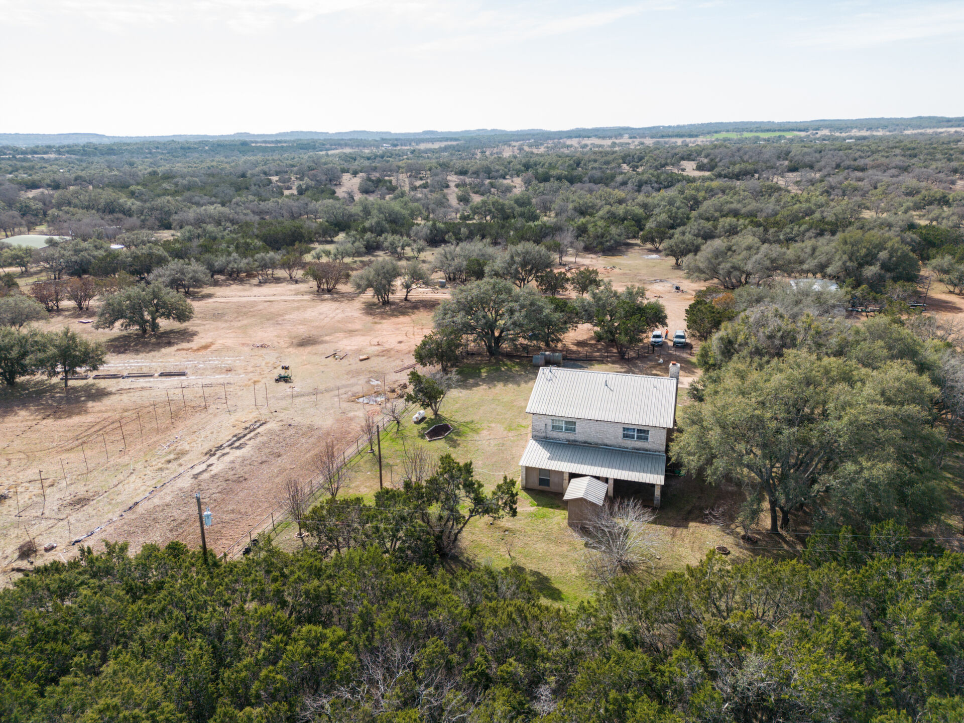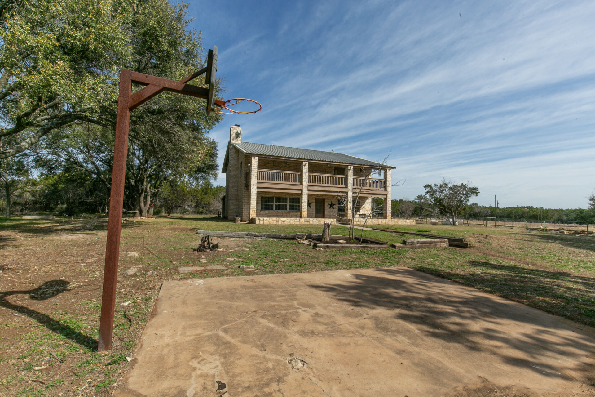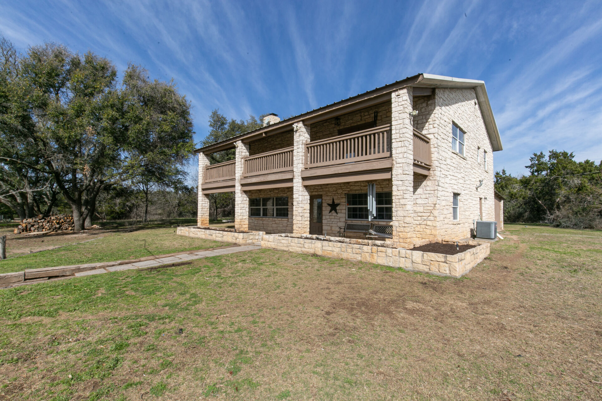 Hill Country ranchette just outside the city of Marble Falls and Horseshoe Bay yet 10 minutes from Lake Marble Falls and 15 minutes from Lake LBJ. 5 bedroom 3 full bath two story home on 10 + Ag Exempt acres. If you're looking for peace, quiet and privacy this is it!Gated and fully fenced at the end of a culdsac. Located just approximately 1 mile off of Highway 281, 3 Minutes from the 281/71intersection. Offering tremendous investment potential and so many possibilities! With an abundance of natural light, huge fireplace with cedar mantle and fans to distribute heat, large utility room, new flooring and paint. Steel construction. Upstairs Primary Bedroom with double doors leading to 320 square foot deck, full of natural beauty and a private hill country view cedar closet and private primary bathroom. 3 spacious guest bedrooms upstairs and 1 bedroom/office downstairs. Large attic with possibility to finish out for additional-living space. Beautiful property to raise a family and bring the livestock, raise some chickens or have a garden. Conveniently located only45 minutes from Austin and San Antonio and centrally located to entertainment, shopping, and eateries in Marble Falls, Horseshoe Bay,Johnson City, Fredericksburg, and Spicewood.