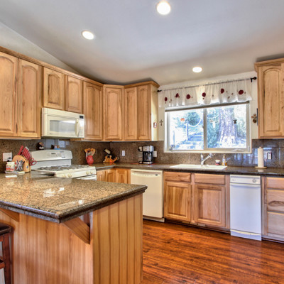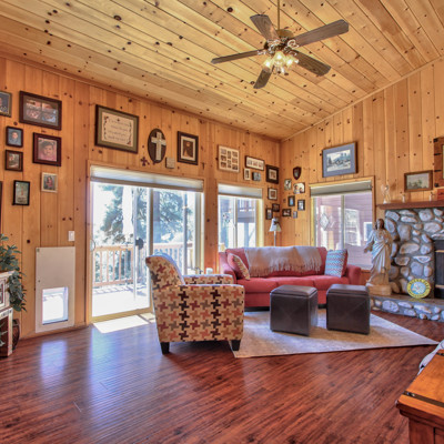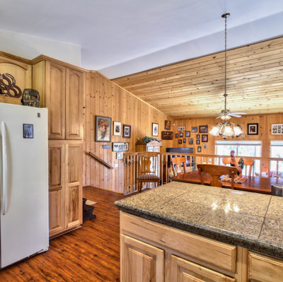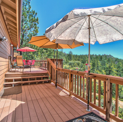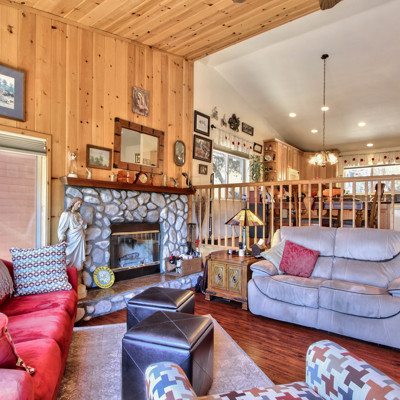 Magnificent home with fabulous sunset views and spacious decks, perfect for entertaining ! Bright and sunny, highlighting the natural wood throughout, and a cozy stone fireplace! Beautiful kitchen features granite countertops and back splash along with a breakfast counter! Street level 2 car garage and attached outdoor storage! Added features include central AC/Heat throughout. Separate entrance to a spacious basement/future guest quarters. Enjoy the mountain lifestyle today!