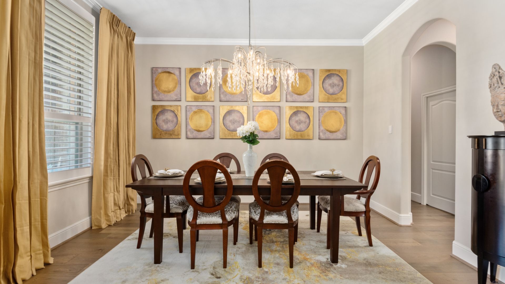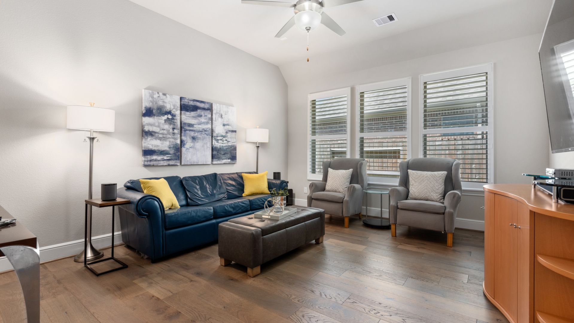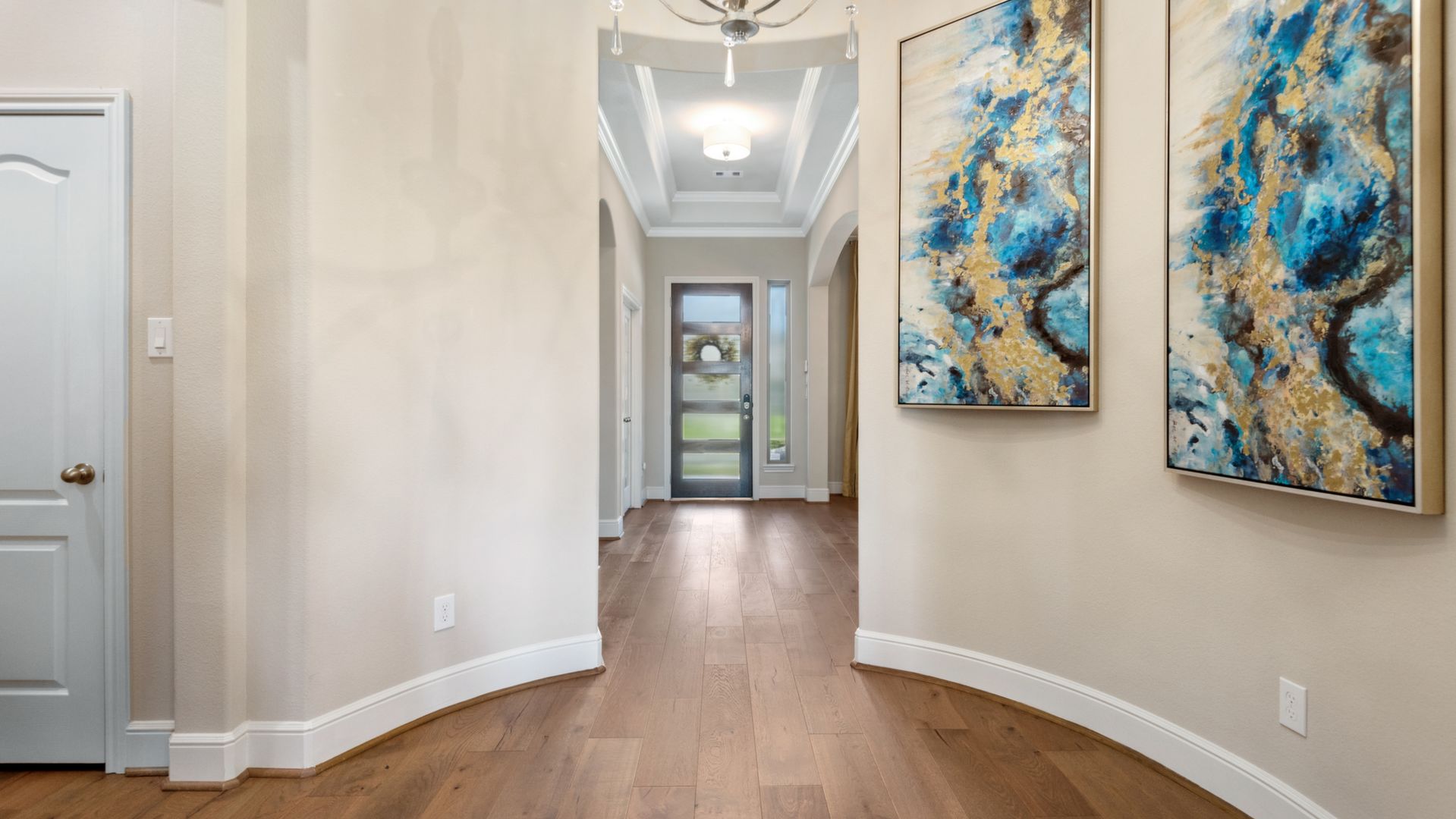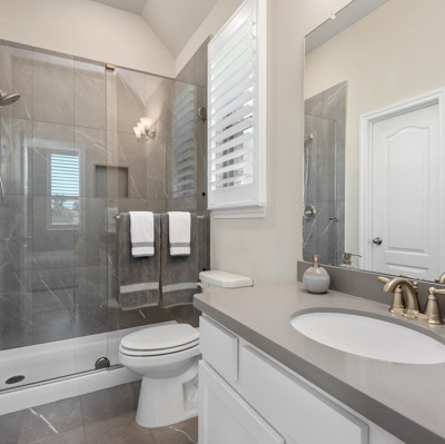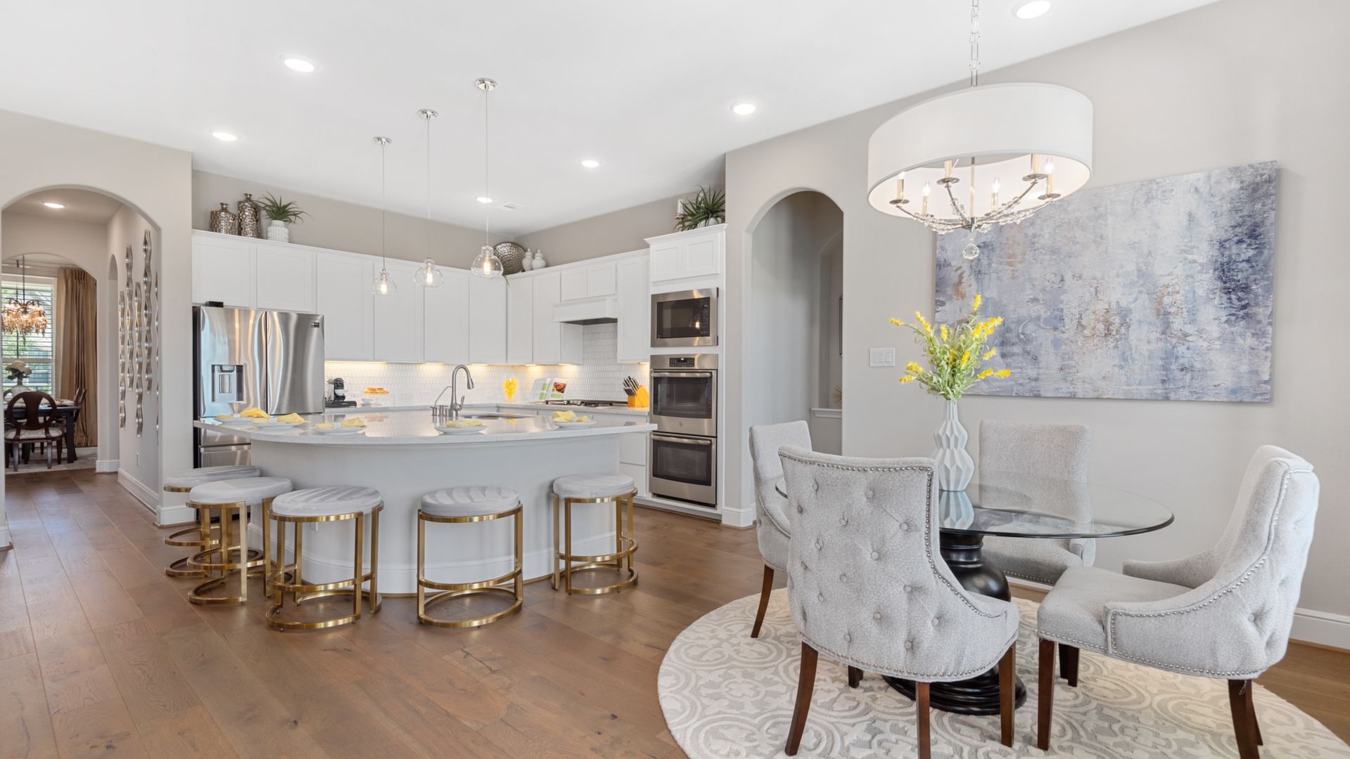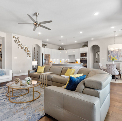 THE WATERFRONT VIEWS & THE SUNSETS ARE A MUST SEE! This stunning 1 story RIVALS NEW CONSTRUCTION, is LOADED WITH UPGRADES & is located in a PRIVATE EXCLUSIVE GATED NEIGHBORHOOD. Great function & flow, open floor plan with grand entry, dramatic rotunda; walls of windows; great storage; plantations shutters; upgraded lighting; built ins; light neutral paint; engineered hardwoods; tray ceilings; crown molding; double French doors into study; open concept kitchen w/quartz counters, stainless appliances, island w/bar seating, painted cabinets, butler's pantry & breakfast area. Private master + spa-like ensuite with dual vanities, frameless shower, soaking tub. Bedroom #2 is a true guest suite with its own bath. GAME ROOM (a RARE FIND in a 1 story). Covered extended patio. Sprinklers, gutters (half w/leaf guard system) & WHOLE HOUSE GENERATOR. Amenities: pools, splash pad, playground, pavilion, rec center, fishing dock & walking trails. A+ rated schools. STILL COVERED BY BUILDER'S WARRANTY.