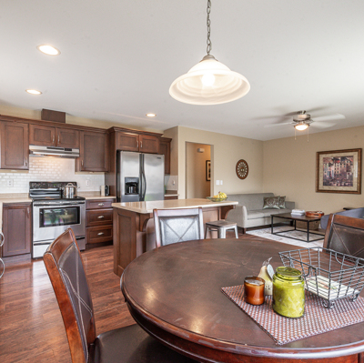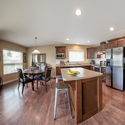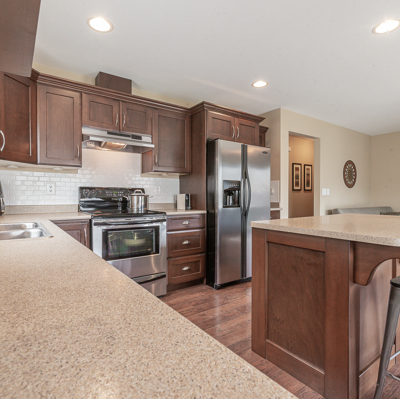 features 4 bedrooms and 3 full baths and a den. The kitchen features stainless steel appliances and an island. The large master bedroom has a walkthrough closet connected to the ensuite. In the basement you will find a large rec room waiting for your creativity. The rec room includes a side access