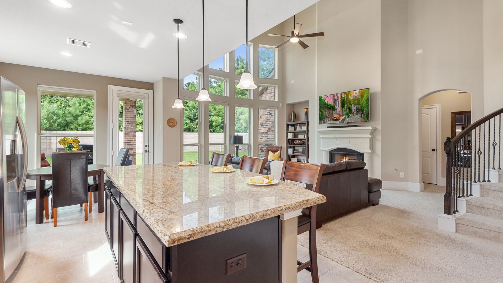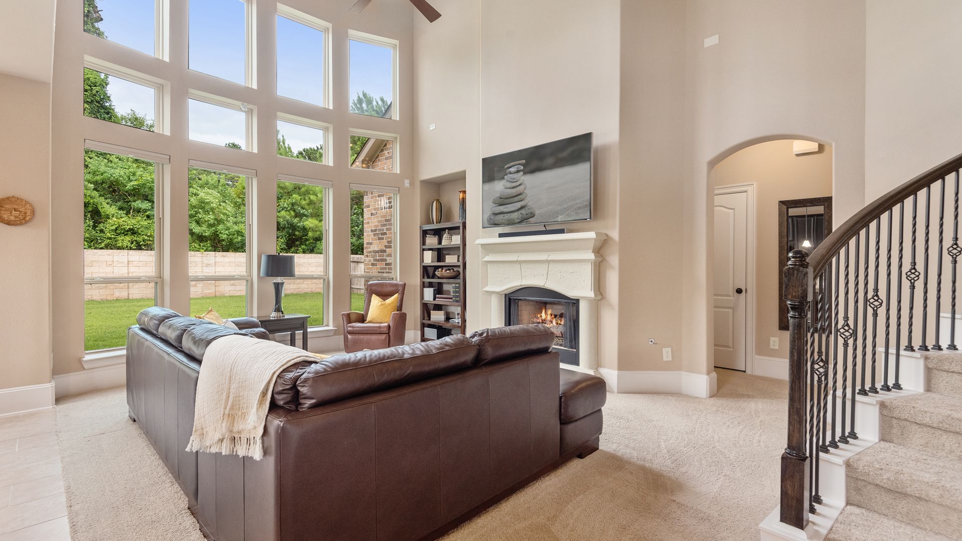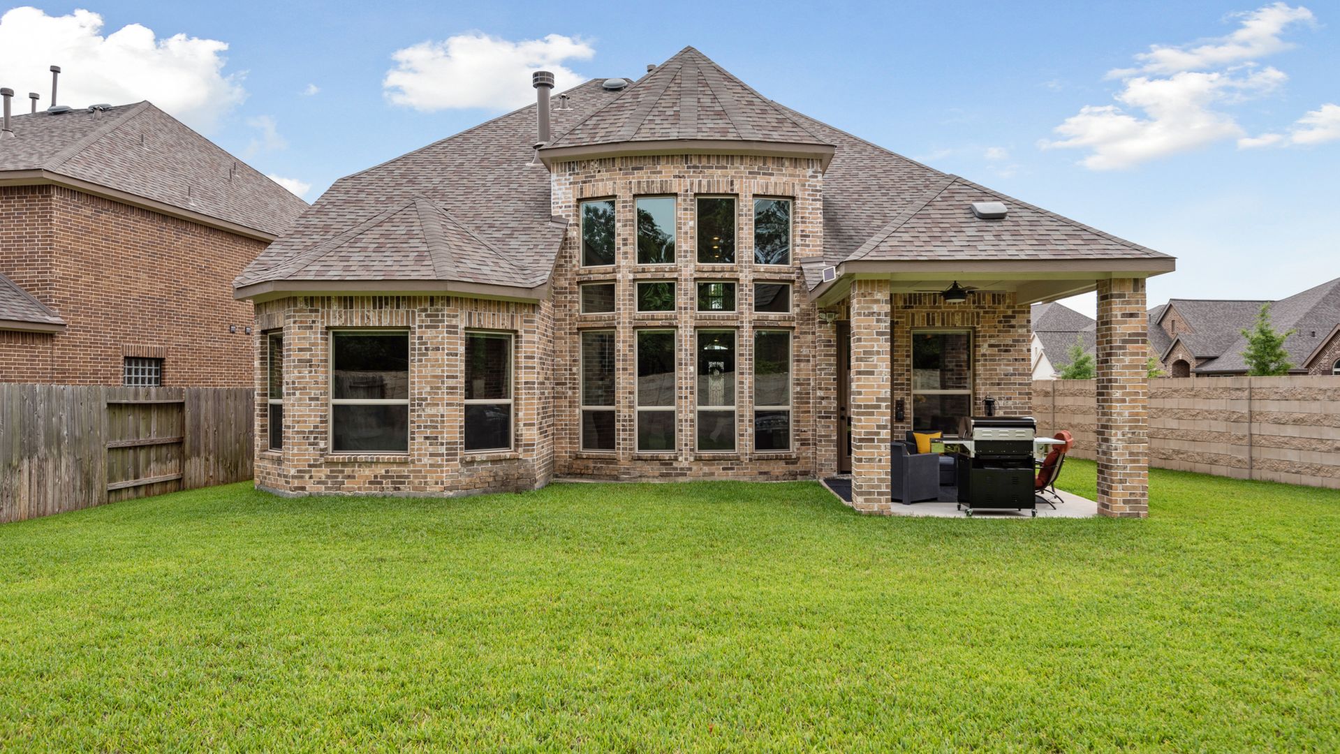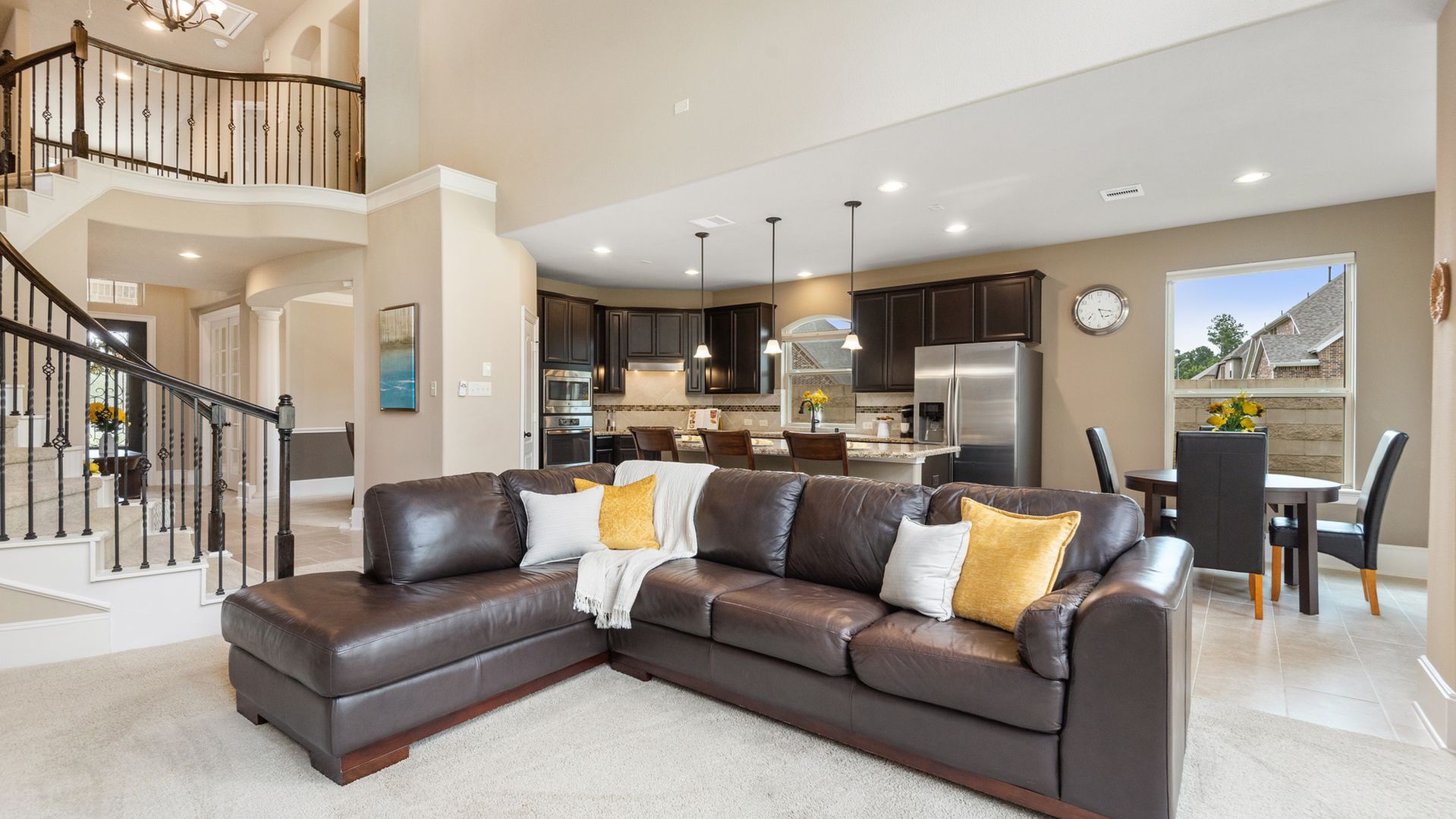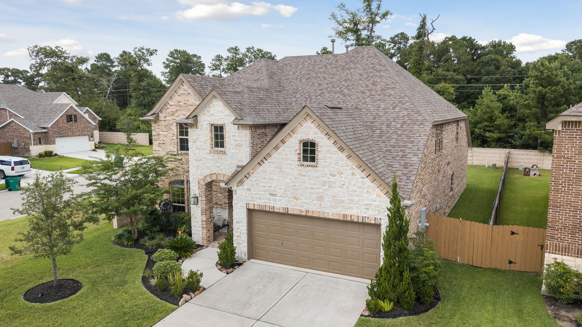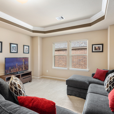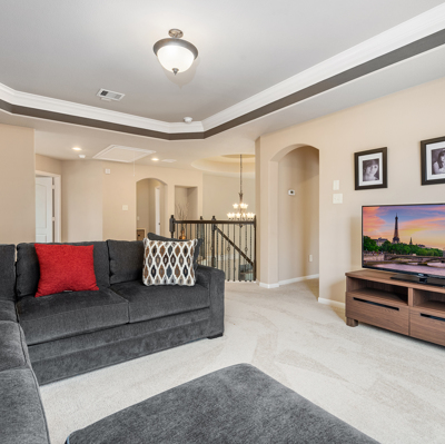 This stunning Westin Homes Bailey plan is a timeless beauty with great function & flow. Amazing architectural detail in this 4 bedroom home. Large corner lot with no back neighbors. Features: open floor plan, soaring ceilings, formal dining with decorative columns, 2 story family room with a wall of windows, fireplace & furniture niche, tray ceilings, crown molding, beautiful arched doorways, light neutral paint and flooring, study with glass French doors, open concept kitchen with granite counters, stainless appliances, island with bar seating & breakfast area. Luxurious master suite with sitting area, walk-in closet & en suite bath w/dual vanities, separate shower & soaking tub, utility room has access to master closet. Gorgeous winding staircase leads to a game room, 3 bedrooms & 2 full baths up. Covered patio & huge back yard with room for a pool. Community amenities include 2 pools, parks, splash pad, walking trails, tennis, basketball, fitness center. A+ rated Schools.