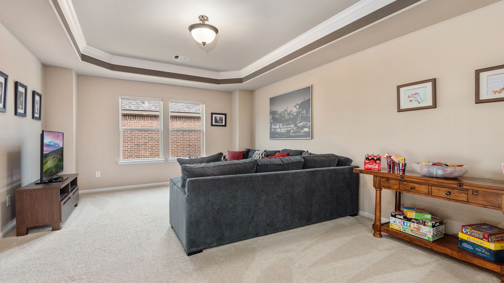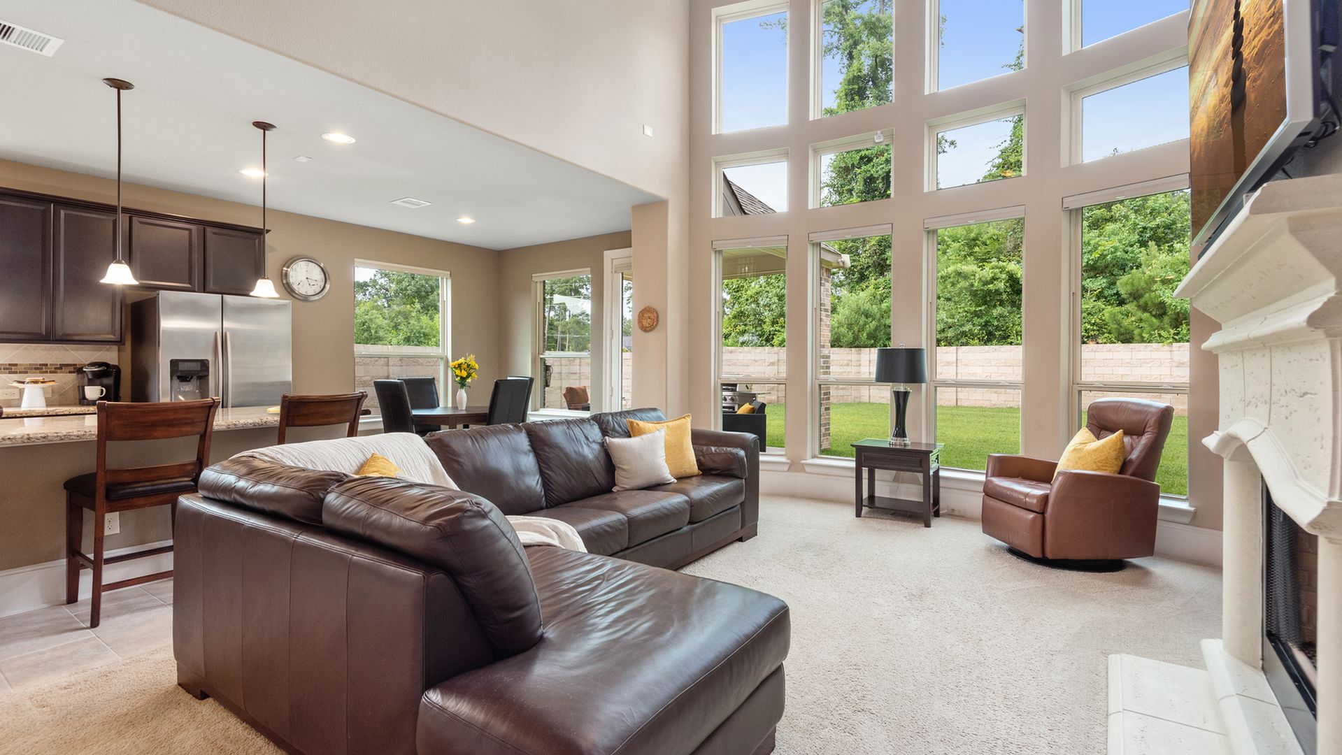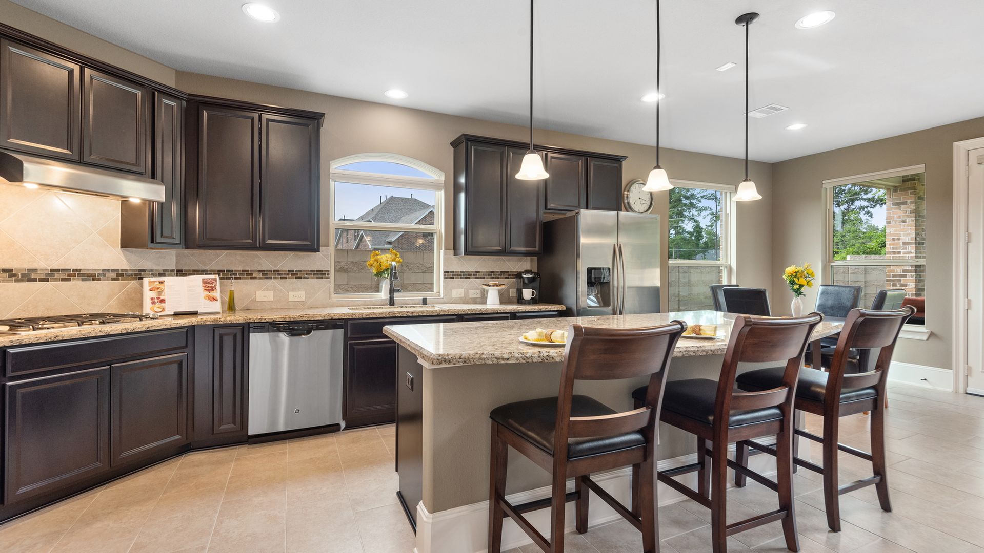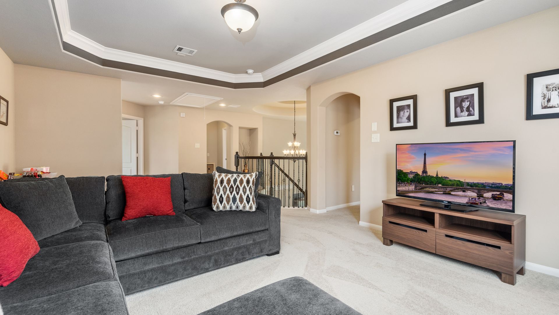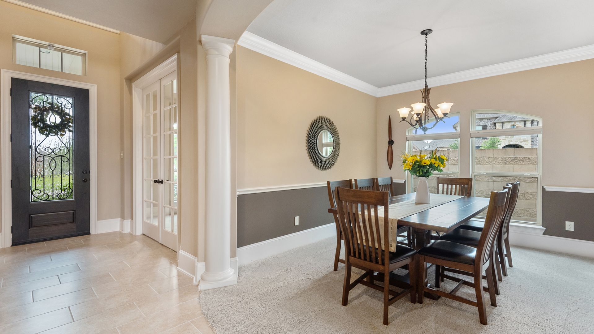 This stunning Westin Homes Bailey plan is a timeless beauty with great function & flow. Amazing architectural detail in this 4 bedroom home. Large corner lot with no back neighbors. Features: open floor plan, soaring ceilings, formal dining with decorative columns, 2 story family room with a wall of windows, fireplace & furniture niche, tray ceilings, crown molding, beautiful arched doorways, light neutral paint and flooring, study with glass French doors, open concept kitchen with granite counters, stainless appliances, island with bar seating & breakfast area. Luxurious master suite with sitting area, walk-in closet & en suite bath w/dual vanities, separate shower & soaking tub, utility room has access to master closet. Gorgeous winding staircase leads to a game room, 3 bedrooms & 2 full baths up. Covered patio & huge back yard with room for a pool. Community amenities include 2 pools, parks, splash pad, walking trails, tennis, basketball, fitness center. A+ rated Schools.