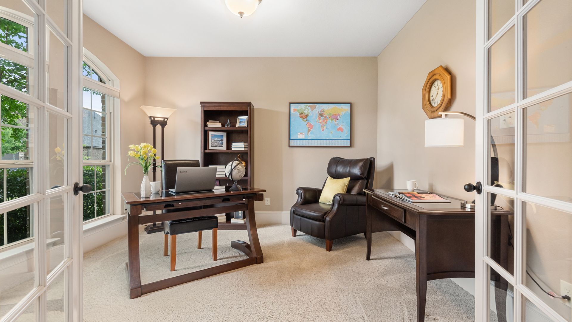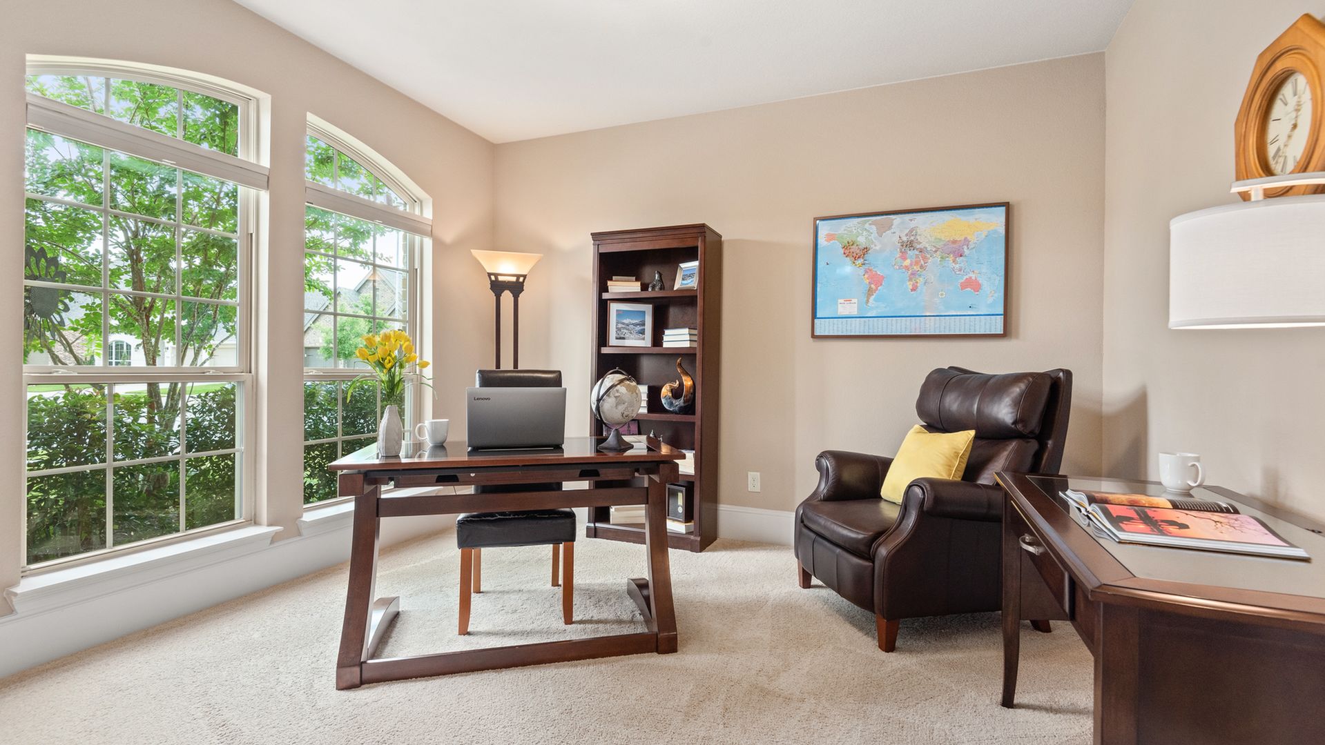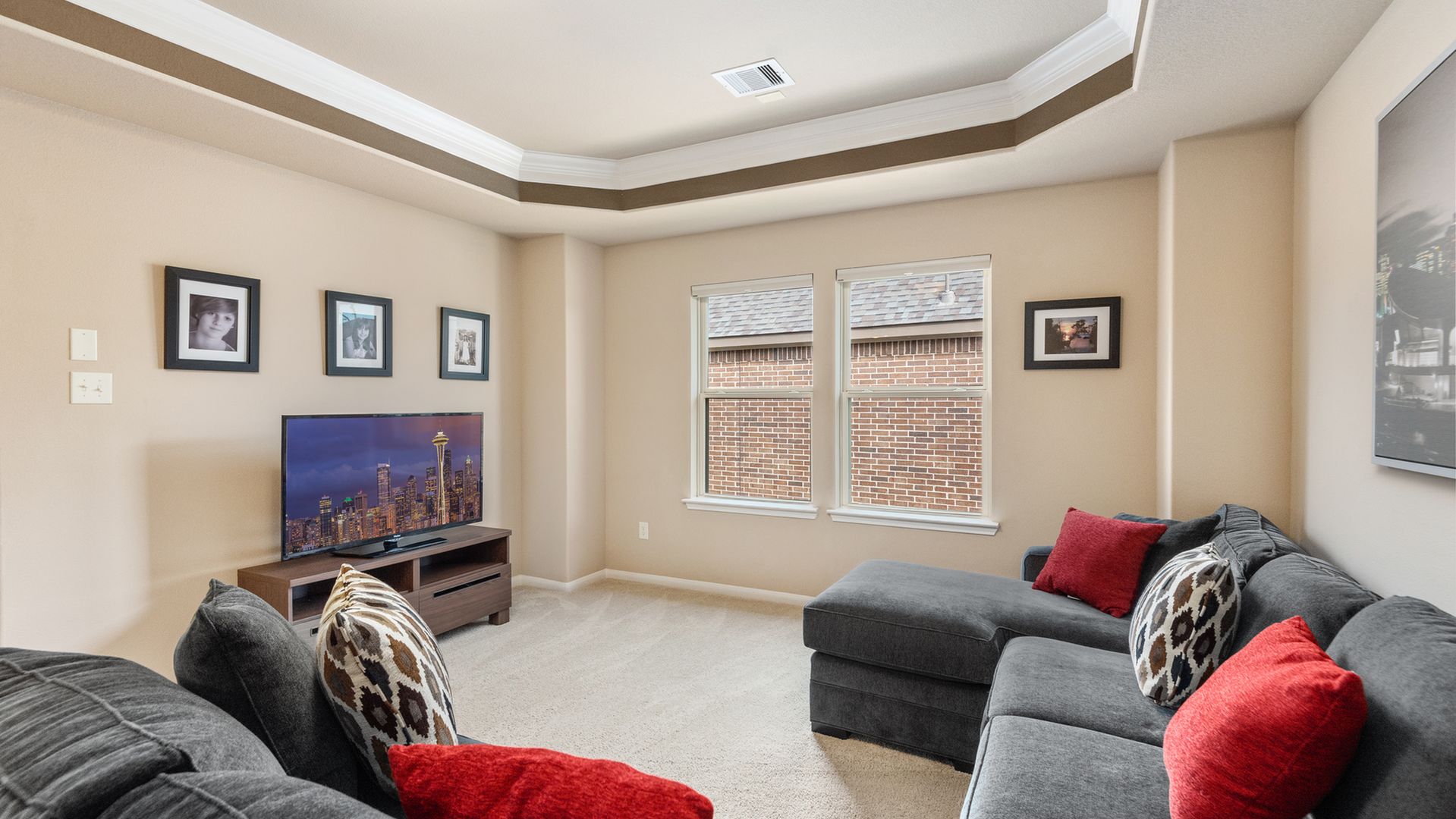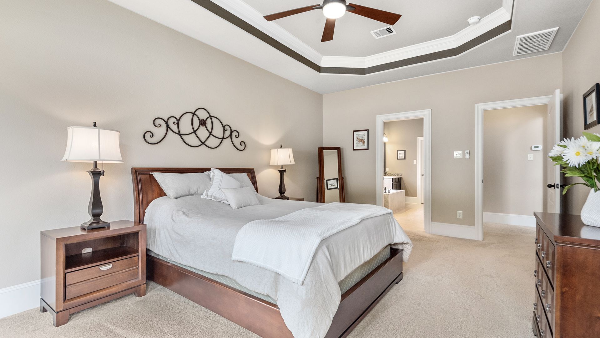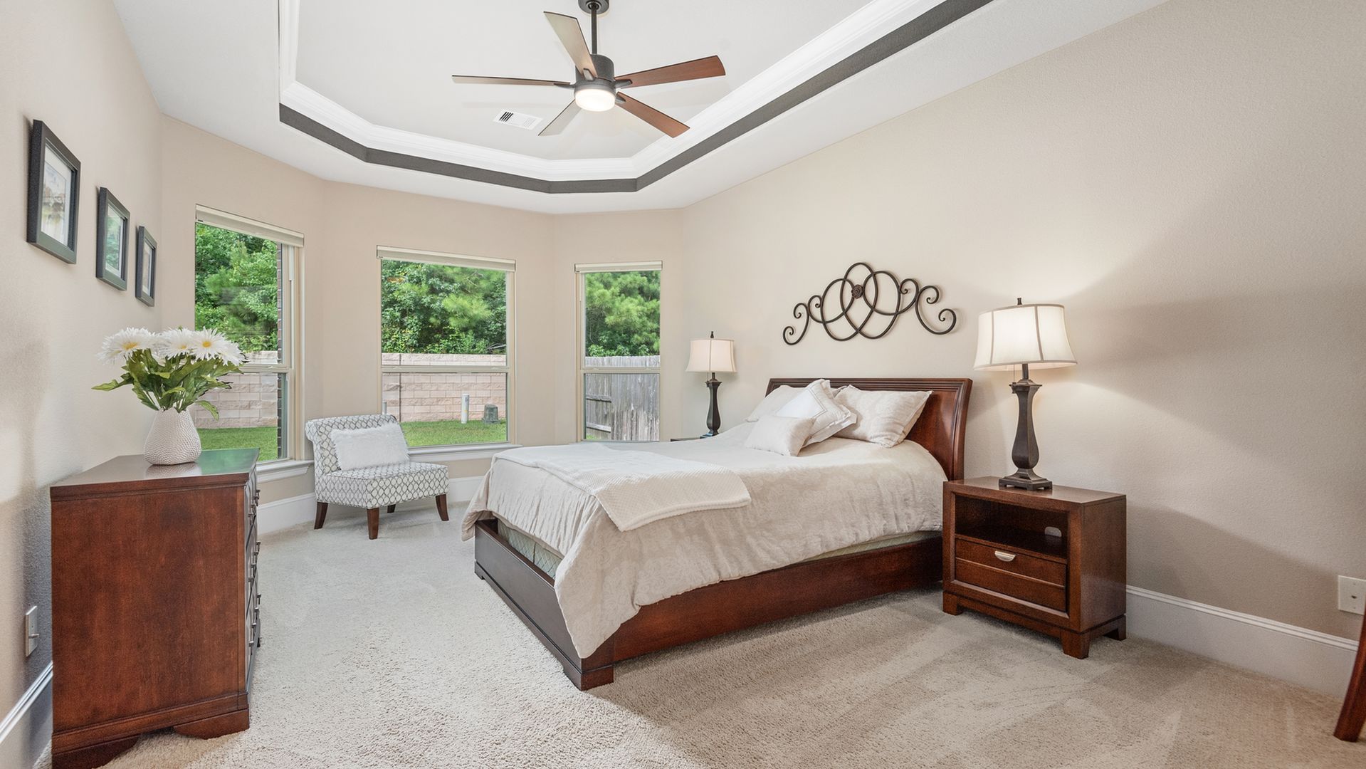 This stunning Westin Homes Bailey plan is a timeless beauty with great function & flow. Amazing architectural detail in this 4 bedroom home. Large corner lot with no back neighbors. Features: open floor plan, soaring ceilings, formal dining with decorative columns, 2 story family room with a wall of windows, fireplace & furniture niche, tray ceilings, crown molding, beautiful arched doorways, light neutral paint and flooring, study with glass French doors, open concept kitchen with granite counters, stainless appliances, island with bar seating & breakfast area. Luxurious master suite with sitting area, walk-in closet & en suite bath w/dual vanities, separate shower & soaking tub, utility room has access to master closet. Gorgeous winding staircase leads to a game room, 3 bedrooms & 2 full baths up. Covered patio & huge back yard with room for a pool. Community amenities include 2 pools, parks, splash pad, walking trails, tennis, basketball, fitness center. A+ rated Schools.