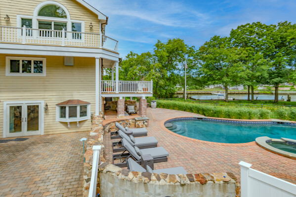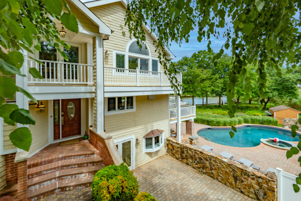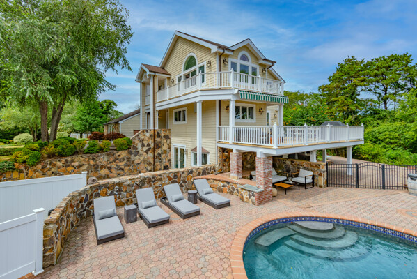 First floor Master Suite with a Master Bath large walk in closet. Upper level has 3 additional bedrooms and a full family room with a wrap-around terrace and water views from every window. This home also has a full walk out finished basement with a bedroom , living room and a bath. Plenty of room for guests. Resort style living call today for availability.