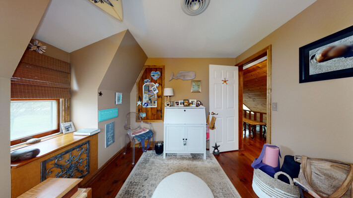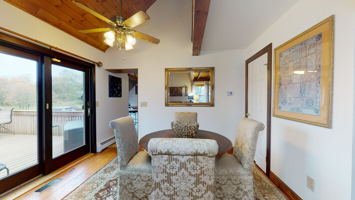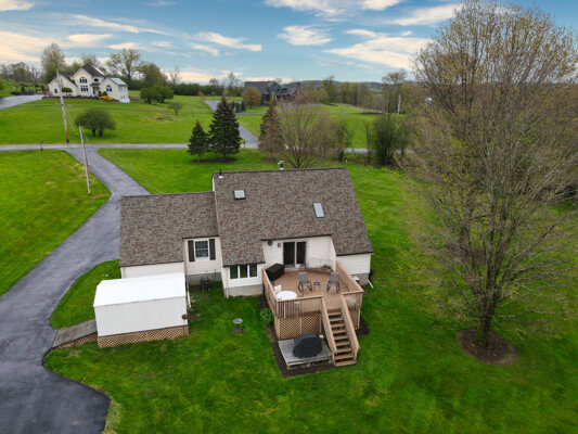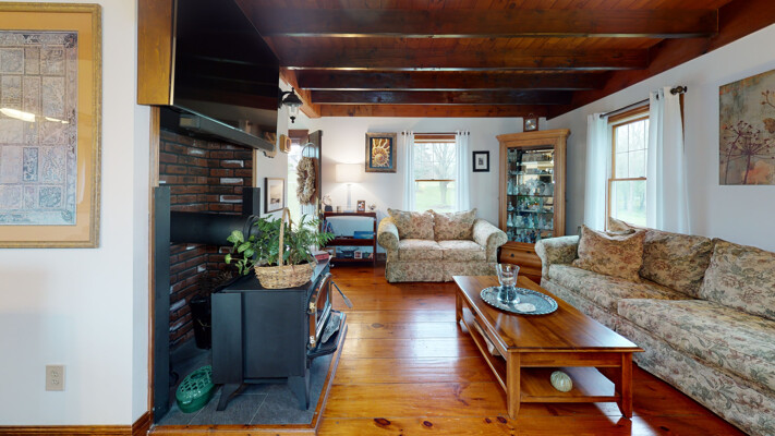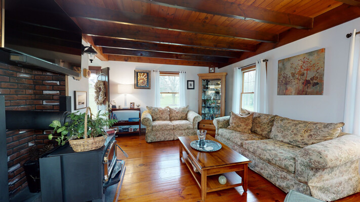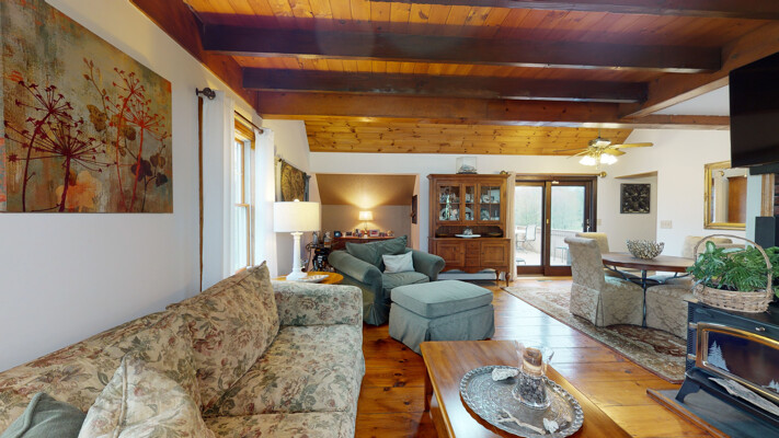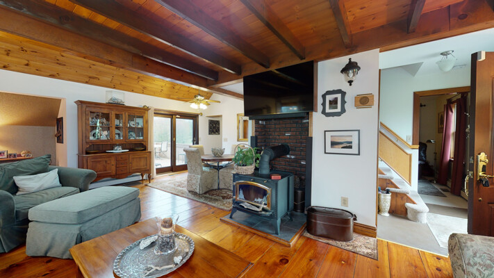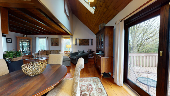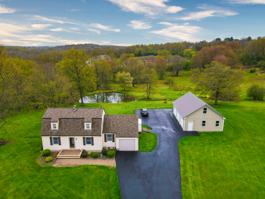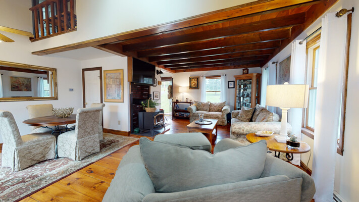 You will love this meticulous custom-built home with cathedral ceiling, exposed beam ceiling, and Wide Plank Hardwood Floors. The large Trex deck overlooks a beautiful pond and is the perfect spot to relax or entertain guests. There is also a detached garage with walk-up loft.