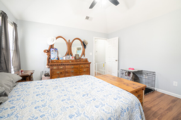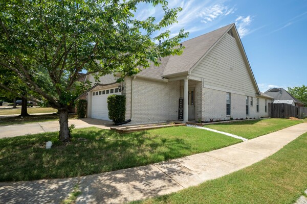 Great location close to everything! This home has split plan with 2 bedrooms and one bath up and the master bedroom and 1 1/2 bathrooms down. Mostly brick home with 2 car garage and fenced in yard on corner lot.