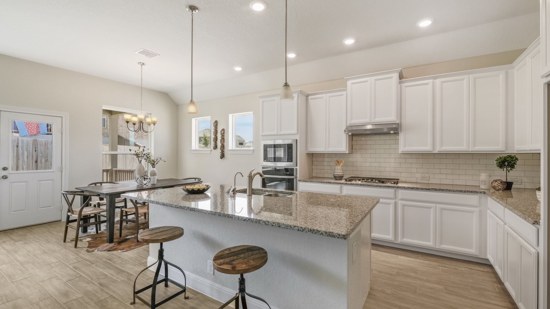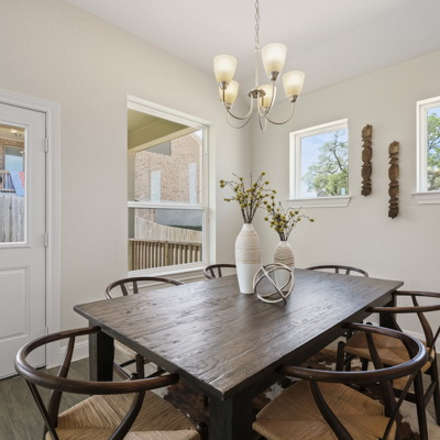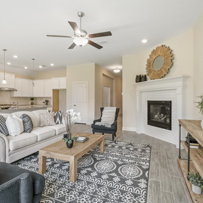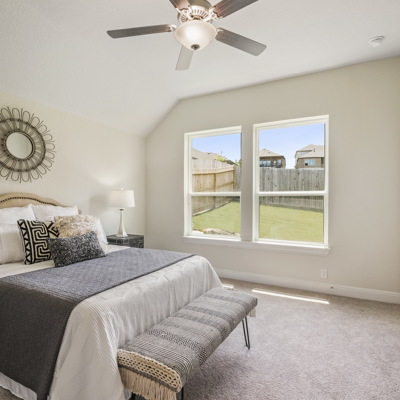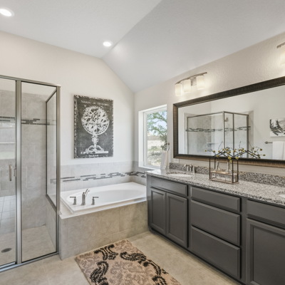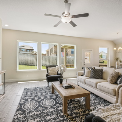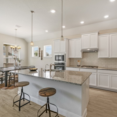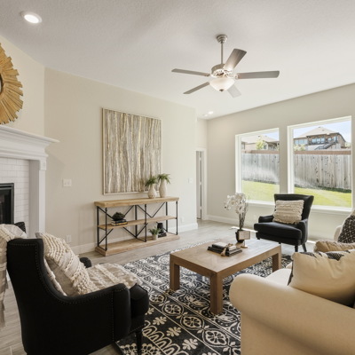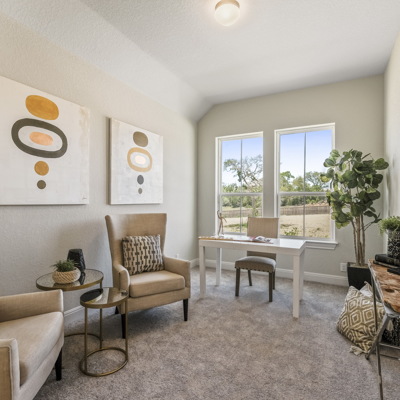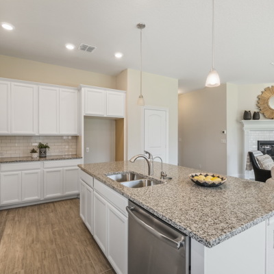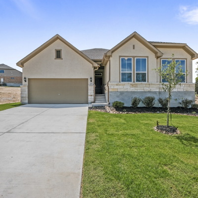Enjoy the effortless luxury of this beautiful new home in Kinder Ranch. Stepping in from the front door grants an inviting view through the sunny open-concept living space to the covered patio. Upgraded appliances and cabinetry add to the culinary ease of the contemporary kitchen. The spacious study offers a productive home office big enough to comfortably support two work-from-home associates. Retire to the everyday vacation of the Owner's Retreat, which features a deluxe bathroom and walk-in closet. Each spare bedroom is positioned to provide ample privacy and equal proximity to the versatile family retreat. The stately fireplace presents a gorgeous way to display family photos and celebrate holidays together. Contact our Kinder Ranch Team to learn more about this North-facing new home in San Antonio, Texas!