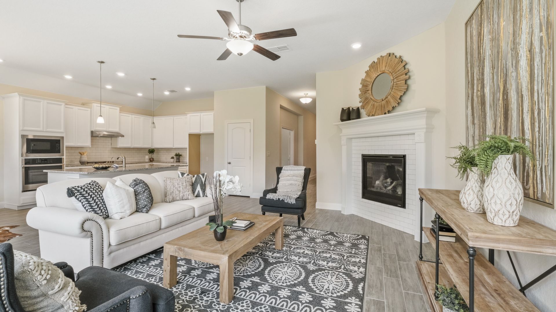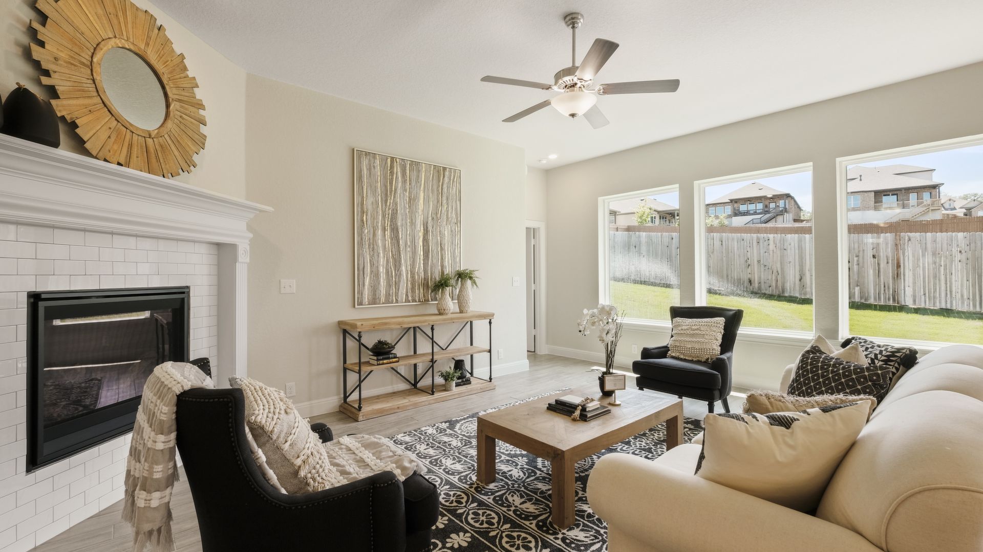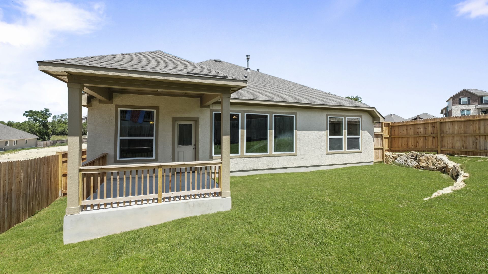 Enjoy the effortless luxury of this beautiful new home in Kinder Ranch. Stepping in from the front door grants an inviting view through the sunny open-concept living space to the covered patio. Upgraded appliances and cabinetry add to the culinary ease of the contemporary kitchen. The spacious study offers a productive home office big enough to comfortably support two work-from-home associates. Retire to the everyday vacation of the Owner's Retreat, which features a deluxe bathroom and walk-in closet. Each spare bedroom is positioned to provide ample privacy and equal proximity to the versatile family retreat. The stately fireplace presents a gorgeous way to display family photos and celebrate holidays together. Contact our Kinder Ranch Team to learn more about this North-facing new home in San Antonio, Texas!