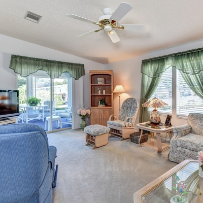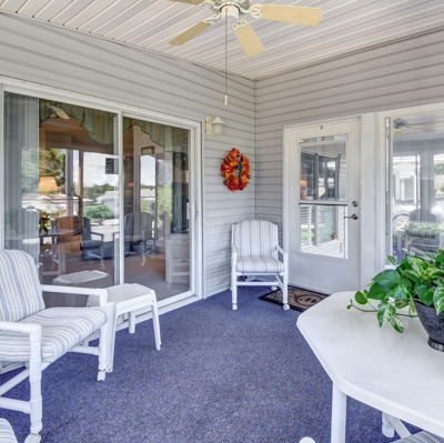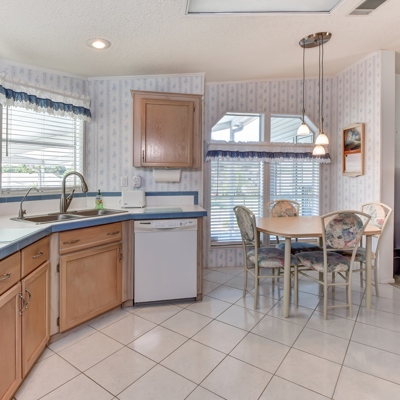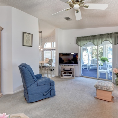 Pride of ownership shines in this extremely well maintained 2/2 with 120 sq. ft. glass enclosed lanai. The large kitchen has a breakfast room and windows over the sink with great views. Ample living room opens to good sized dining room and extra large hallway. 13x15 master suite and 12x13 guest bedroom. Double driveway and 11x7 utility room look on to easily maintained hardscape landscaping. 2015 AC and well maintained roof. This sparkling clean and neat home is move-in ready. Call now for your private tour.