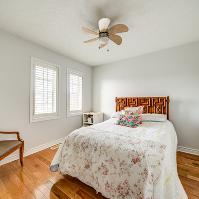 All Brick Semi-Detached home in a very desirable neighbourhood. A true turn-key home. 1451 sq ft with 3 + 1 bedroom and 3 1/2 bathrooms. 9 ' ceilings with pot lights and gas fire place on the main floor. Hardwood floors and California shutters throughout the main and upper living area. Kitchen comes with a stunning quartz counter top with newer stainless steel appliances. Central Vac and Central Ac. Fully fenced Interlocked backyard patio and a concrete walkway along the side of the house. Covered front porch and Single car garage with opener. Fully finished basement with a 4th bedroom and a full bath, wet bar, laundry and recreation area. Washer and Dryer (2019) Forced air gas furnace (2017) and Roof (2016).