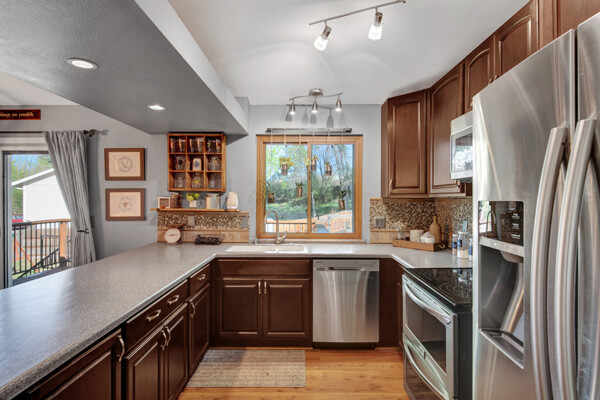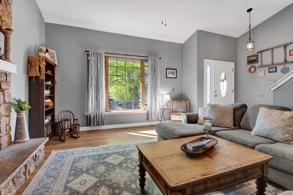 Welcome to this charming 4 bedroom, 3 bath home located on a 1/4 acre large corner lot. As you step inside, you'll immediately notice the inviting atmosphere and the vaulted ceilings in the living room, giving a sense of spaciousness. The focal point of the living room is a cozy wood-burning fireplace, perfect for chilly evenings. The living room seamlessly flows into the dining and kitchen area upstairs, creating an open and connected living space. The dining area features a walkout to a generous-sized wood deck, providing a delightful spot for outdoor relaxation and entertainment. From here, you have direct access to a beautiful vast backyard, which is truly a gardener's paradise. The backyard offers ample space for entertaining guests and boasts a solar-powered hen house, making it an ideal place for those interested in raising chickens and enjoying fresh eggs. Also on the upper level, you'll find three bedrooms, including the primary bedroom. The primary bedroom is a tranquil retreat, complete with an en suite bathroom featuring a walk-in shower. Additionally, there is a full-size shared bathroom on this level, ensuring convenience for family and guests. The lower level, basement of the home is finished and offers versatile living space. It features a large bedroom, perfect for guests or older children, and a spacious family room, providing a great area for a kids play area or having that home theater set-up. One of the highlights of this level is the convenient built-in mudroom, designed with functionality in mind. This mudroom area offers plenty of cubby storage for shoes, gloves, and hats, as well as coat hooks for winter coats. The garage entry is located on this level which makes the mud room area the best location. This delightful home offers a wonderful combination of comfort, functionality, and outdoor beauty. Don't miss the opportunity to make it your own and enjoy the peaceful lifestyle it offers.