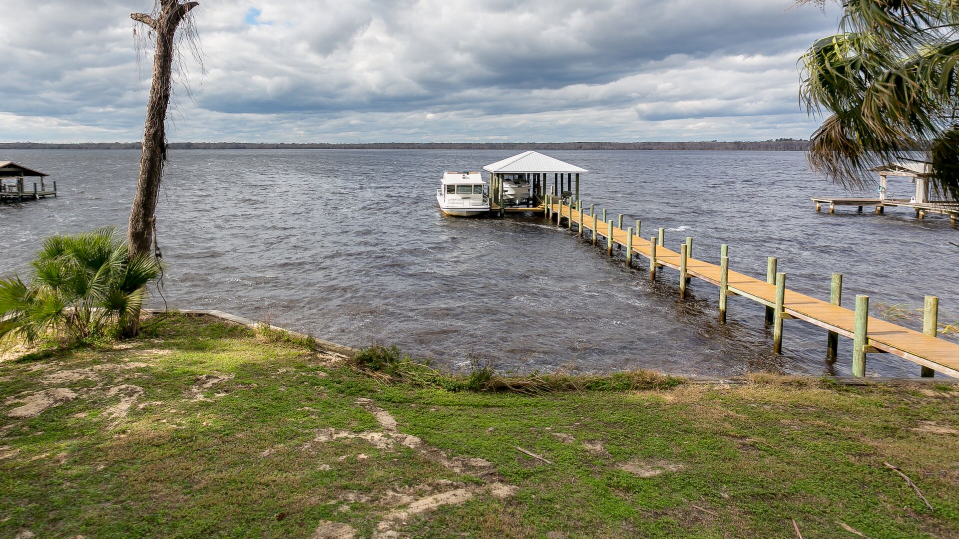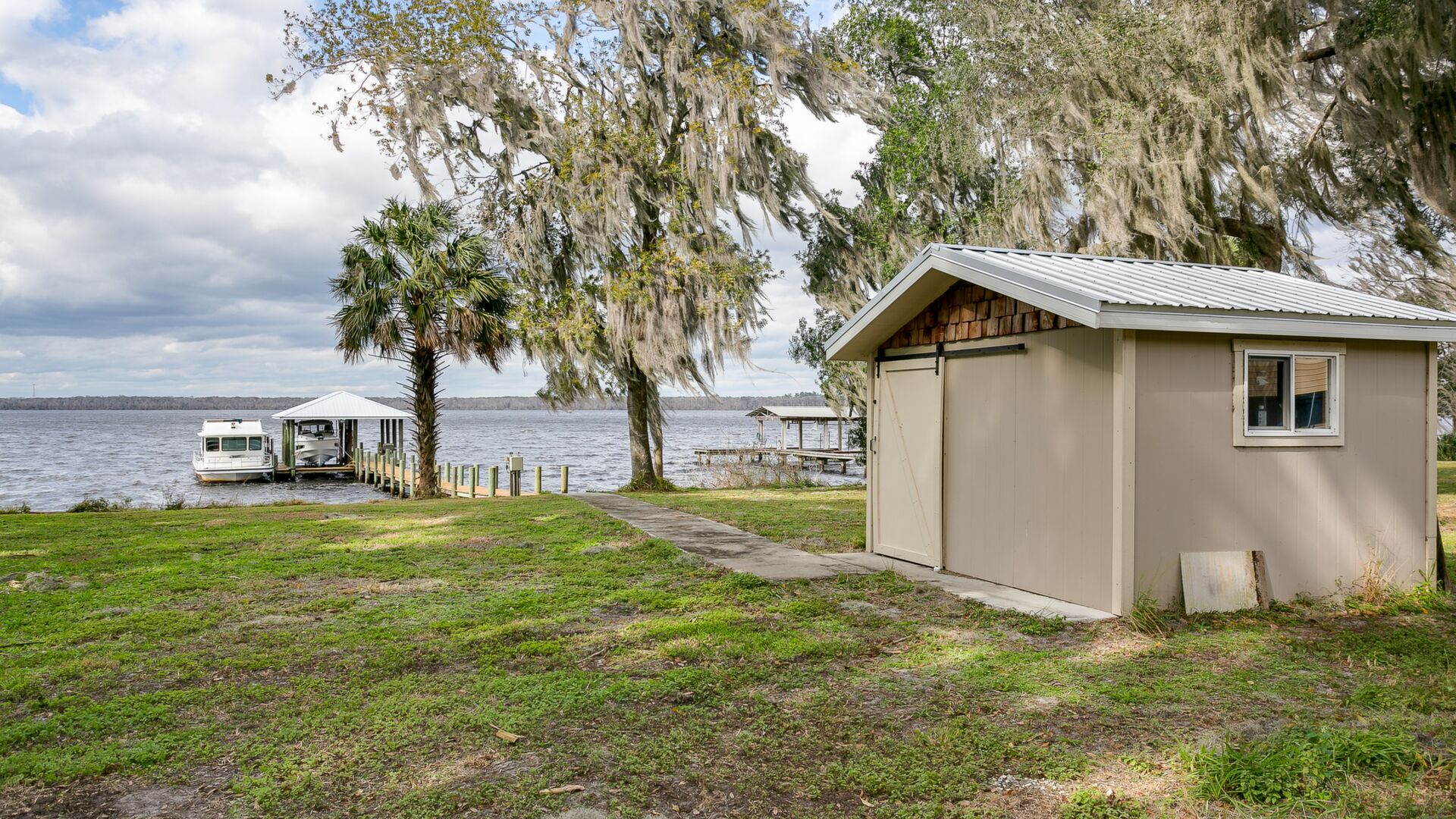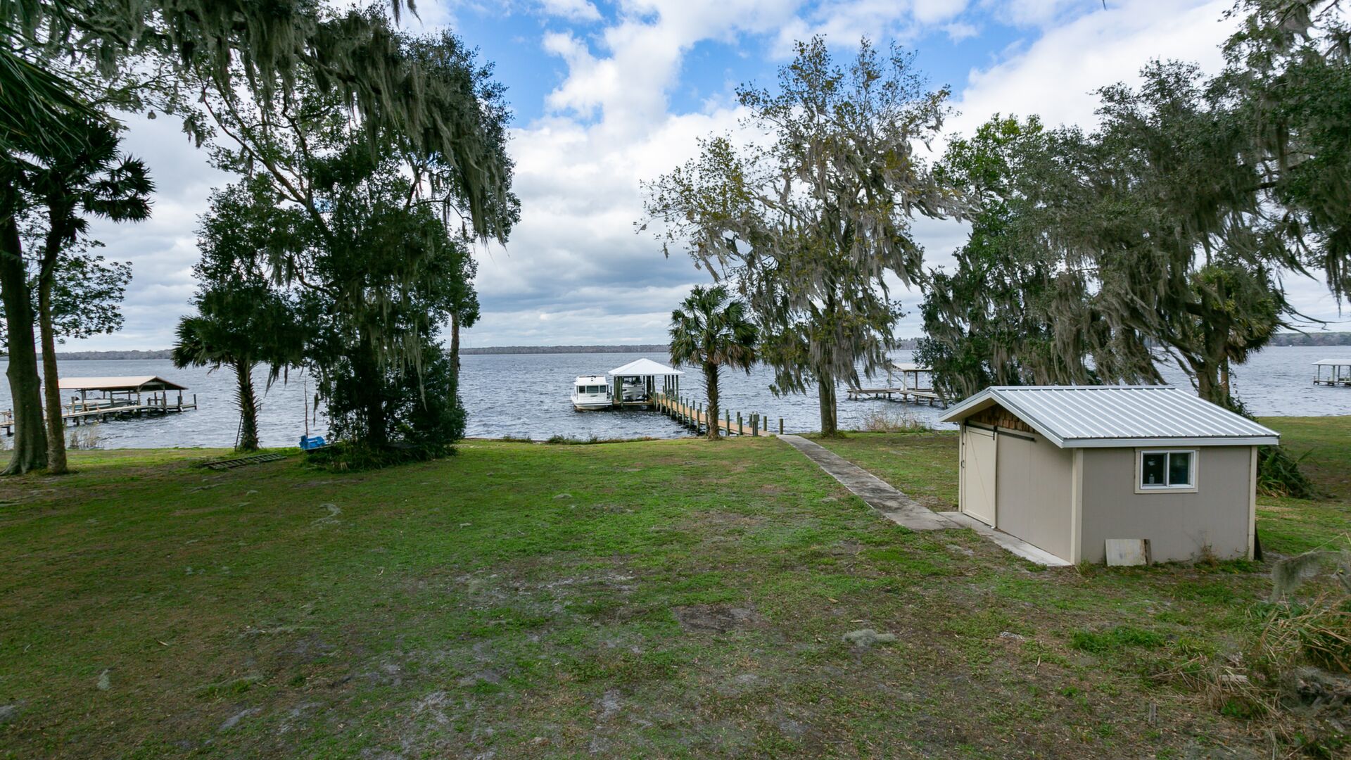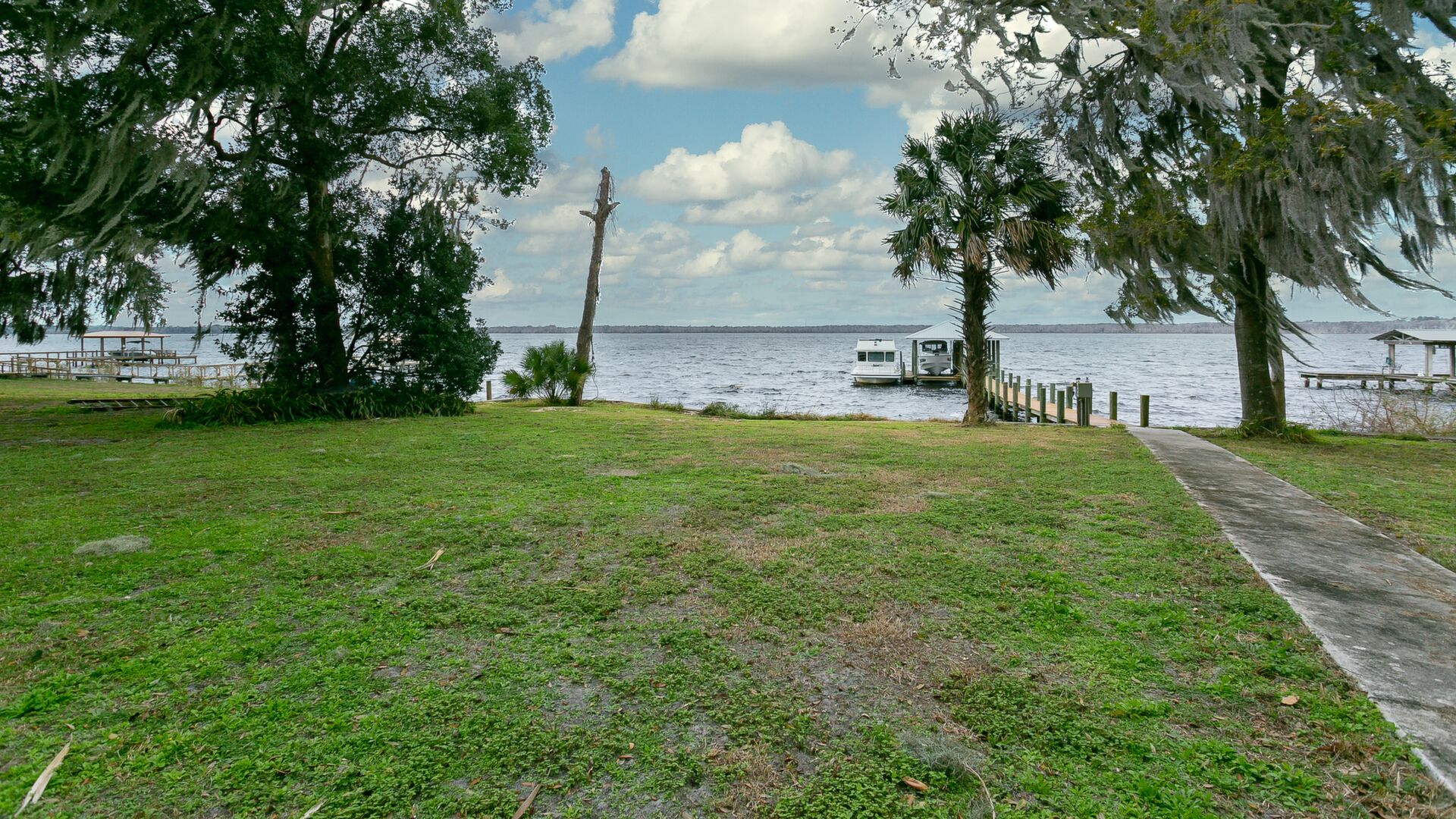 Welcome to the most beautiful high bluffed St Johns Riverfront lot available! .71 acres (103.96x327.13) with covered dock and bulkhead built in August 2016. Boat lift built for 13, 000lb boat. The property includes a well, electronic water treatment system, electric service and storage building all in place. Oak and palm tree galore and even better no impact fees! Truly a must see. Once in a a lifetime opportunity to build you dream home! Love where you live and enjoy the beautiful sunsets on the majestic St Johns River!