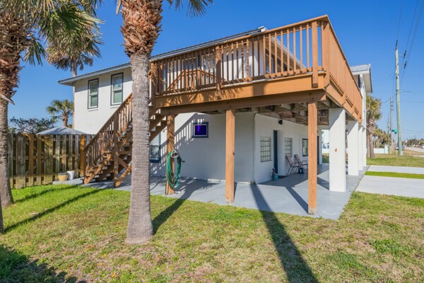 Welcome to 3125 Coastal Hwy an extraordinary value-add investment opportunity! This property, nestled in charming Vilano Beach, boasts mesmerizing Ocean Views and RG1 Zoning, enabling nightly vacation rentals. Situated just steps from private beach access, this .82 acre lot features a concrete block triplex with three rental units along with an additional five trailers on-site, providing a total of TEN RENTAL UNITS. The two-story triplex boasts a large deck with Ocean Views, private fenced in yard, single car garage, and a 2/2, 1/1, and efficiency that come fully furnished! With the added advantage of a sub-dividable lot, the potential for expansion or redevelopment provides ample opportunity. North Shores Park, located just a block away, offers community amenities including a garden and pickleball courts, enhancing the area's appeal. Whether you're seeking a vacation rental compound, strategic investment, or future development project, this property is your canvas for success. Don't miss out on this prime opportunity to shape your vision and capitalize on the booming rental market in beautiful St. Augustine!