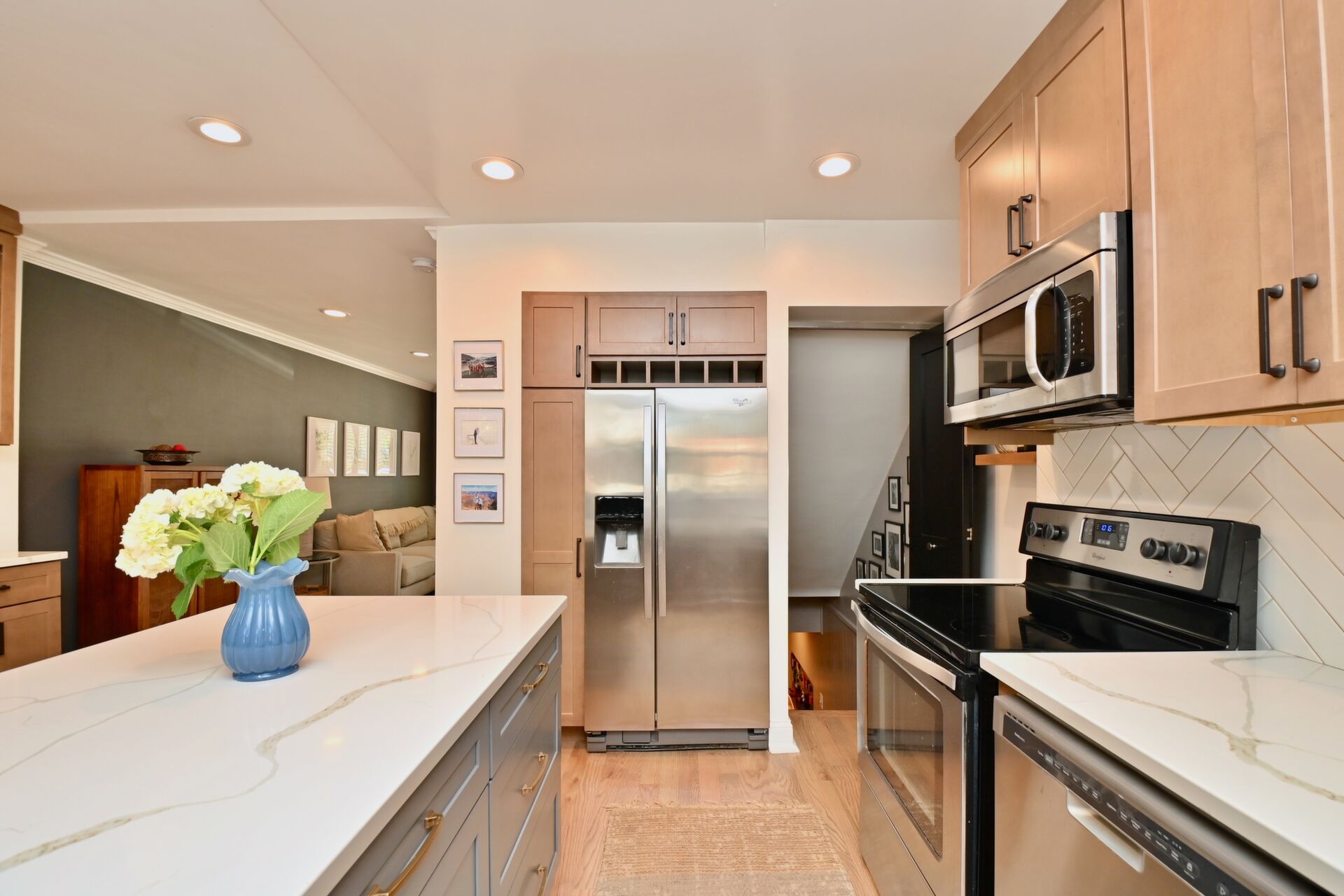 This beauty boasts hardwood floors, recessed lighting, custom built-ins and so much more. Every room that you enter you will find decorative touches that make this house a home.