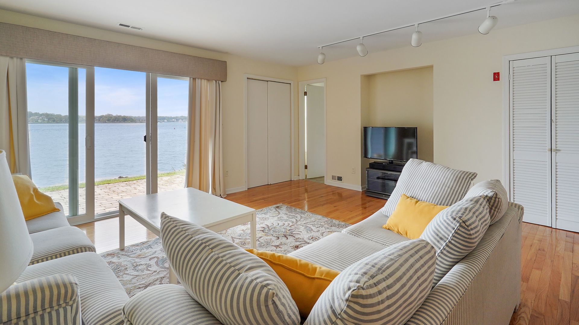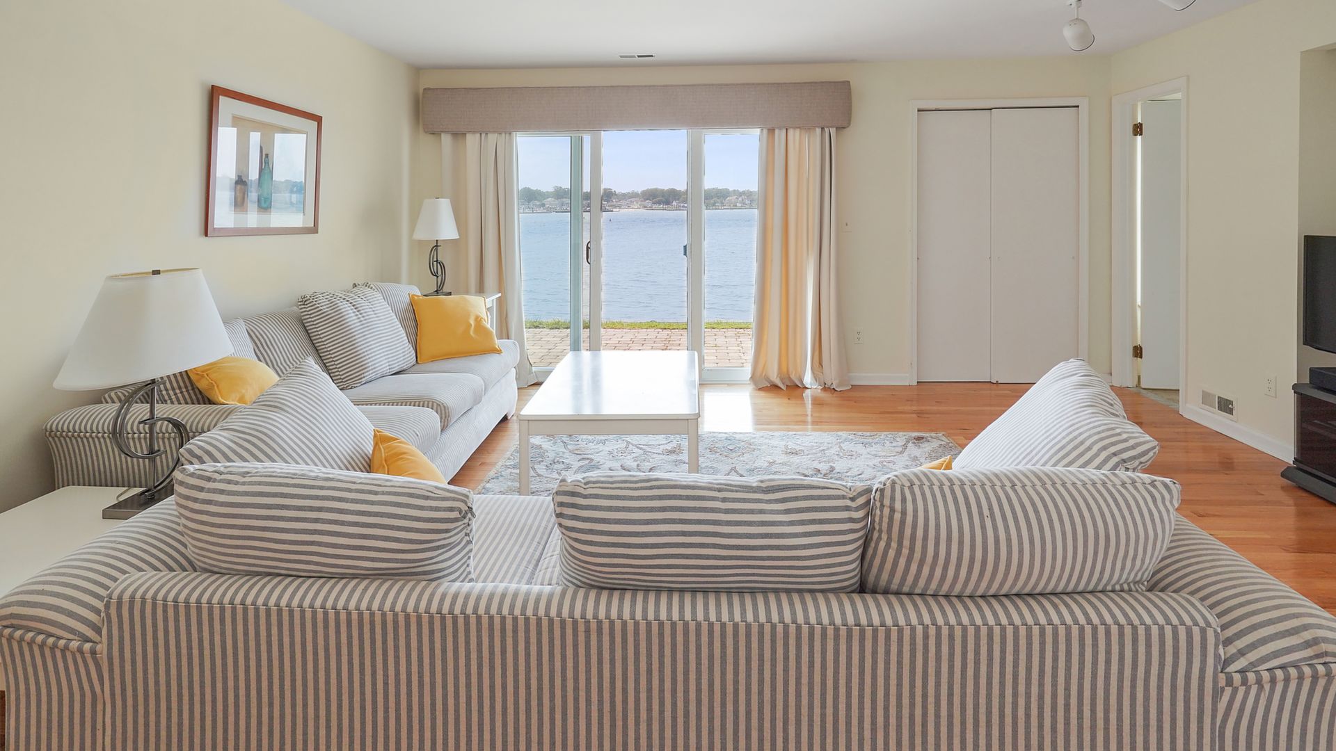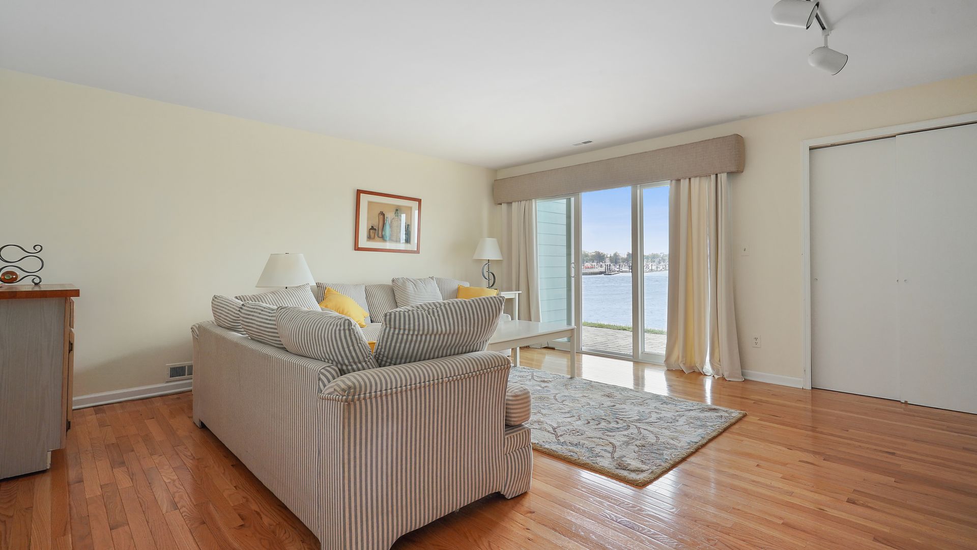 Unobstructed views of the Shark River. Premier location on Seaview Island! This 3 bedroom, 3 1/2 bath townhouse has two balconies and one patio all facing the open water of Shark River to watch the sunset every evening! Hardwood floors, open layout, sunny unit with wood burning fireplace, one car garage, brand new central air unit. Master bedroom and second bedroom on the 3rd floor. Third bedroom or family room on the lower level. The homeowner's association assessment has been paid in full! This turnkey home is a bike ride to the Avon or Belmar beach, local restaurants and activities and NJ Transit.