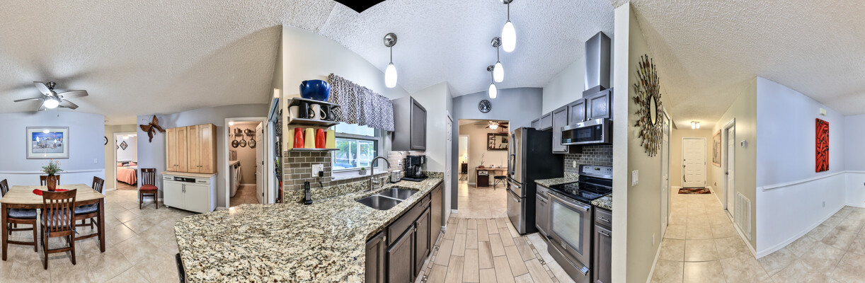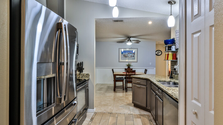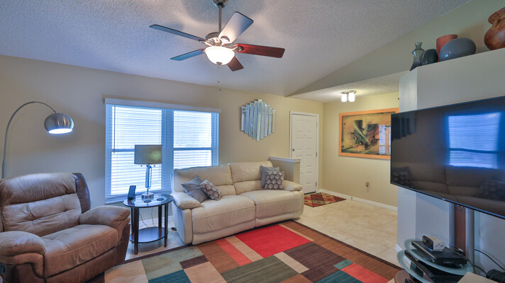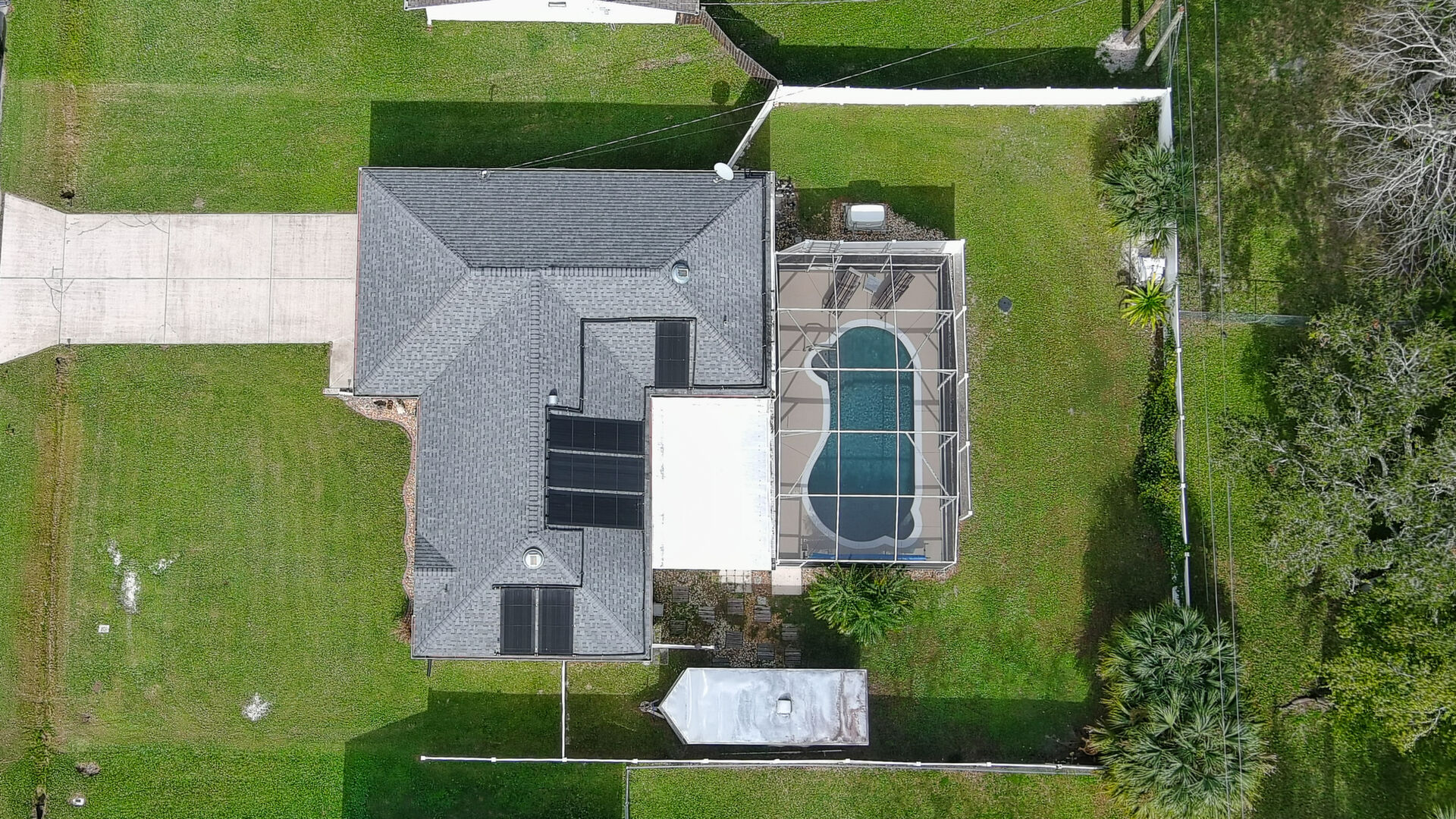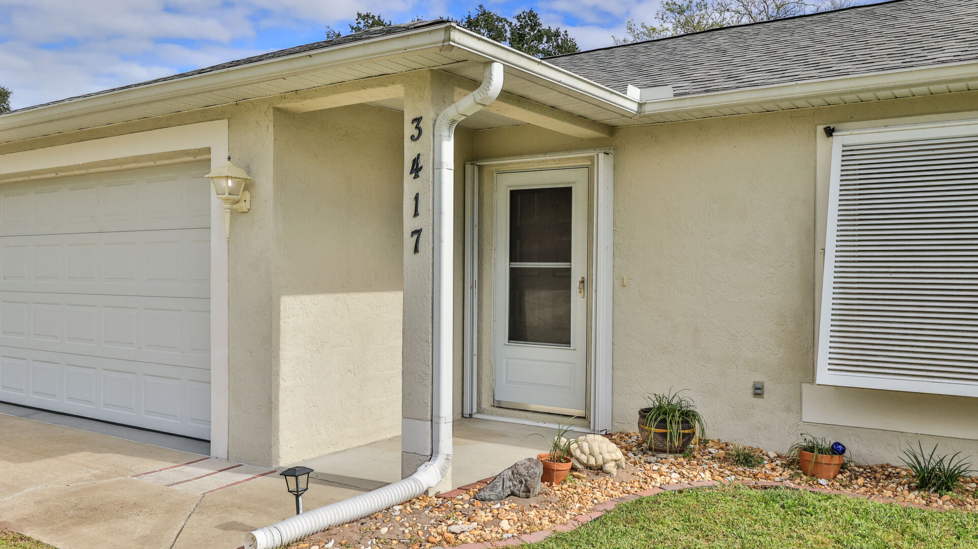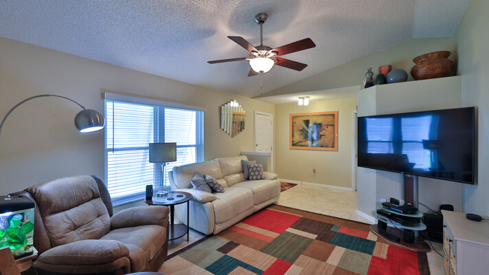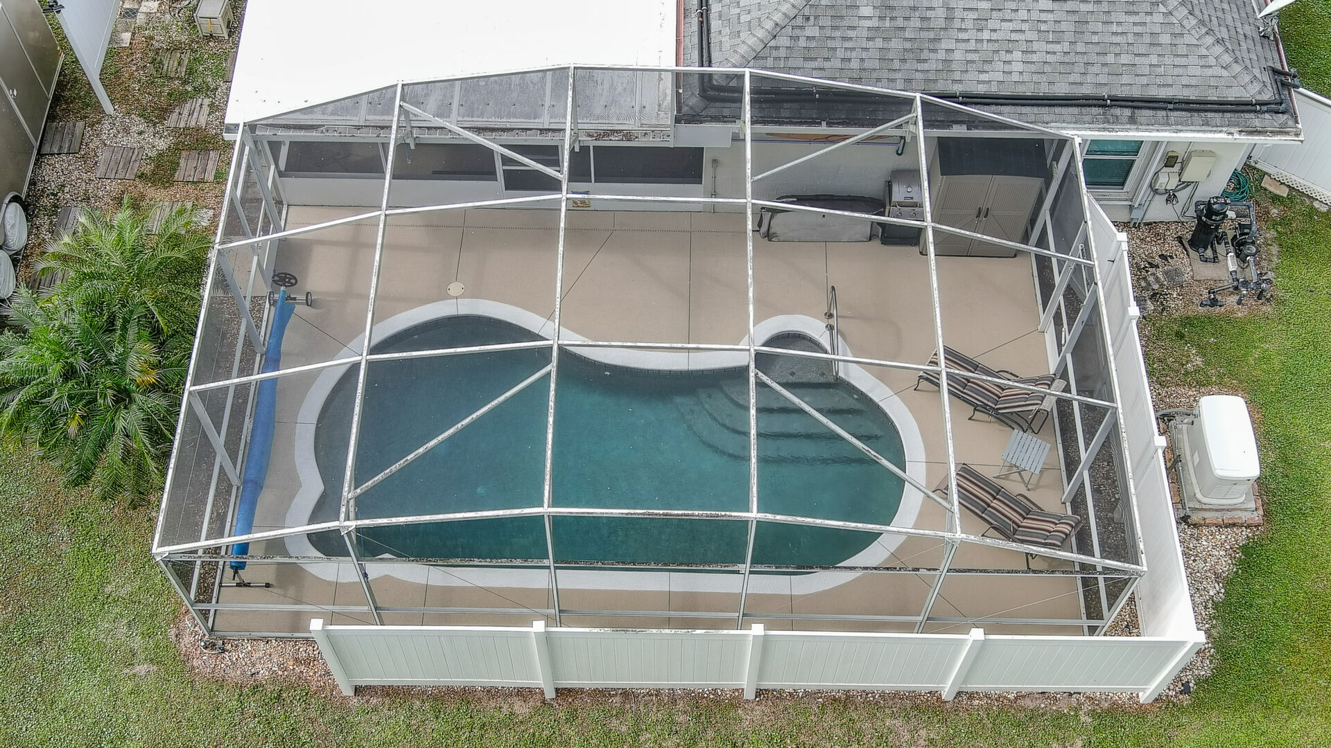 MOVE IN READY SALTWATER POOL HOME! You will love this Holiday Builders, concrete block home with 3 bedrooms, 2 baths, and 2 car garage! Well designed split plan with vaulted ceiling, ceramic tile & wood look flooring throughout. Updated kitchen with stainless steel appliances, granite countertops, pull out drawers, LED lighting, water filter, and built in pantry. Find relaxation at the outdoor oasis with a dip in the 2016 screened in pool, a soak in the hot tub, or enjoy a great book on the 14x20 covered Lanai, all surrounded with privacy fencing. Pool has solar panels for heating, pool cover, & 1 Year old salt cell. This home is storm ready, with a 2021 Entire Home 22KW Generac Generator w/Transferable Warranty, 500 Gal buried Propane Tank, 2018 Window World Storm Windows w/ Lifetime Warranty, plus Accordion Style Storm Shutters! Roof 2016, A/C & Water Heater 2024. Back Yard Fenced (2016). Washer/Dryer Included (2017). Furniture Negotiable! Garage has Epoxy flooring, Shelving & Cabinets, Attic Stairs, & Solar Ventilators. Hot Tub Included! Furniture Negotiable! Great location at the very south end of Florida Shores. Fifth house from the end of the community! Easy access to US1 from Volco Road. 5 minutes to Publix, restaurants, shopping, churches & 10 minutes to medical. 20 Minutes to beautiful New Smyrna beaches! 30 Minutes to Titusville for antique shops, local restaurants, Wildlife Refuge and 50 Minutes to the Kennedy Space Center or watch the launches from home! NO storm damage or flooding! Home is built with metal studs.