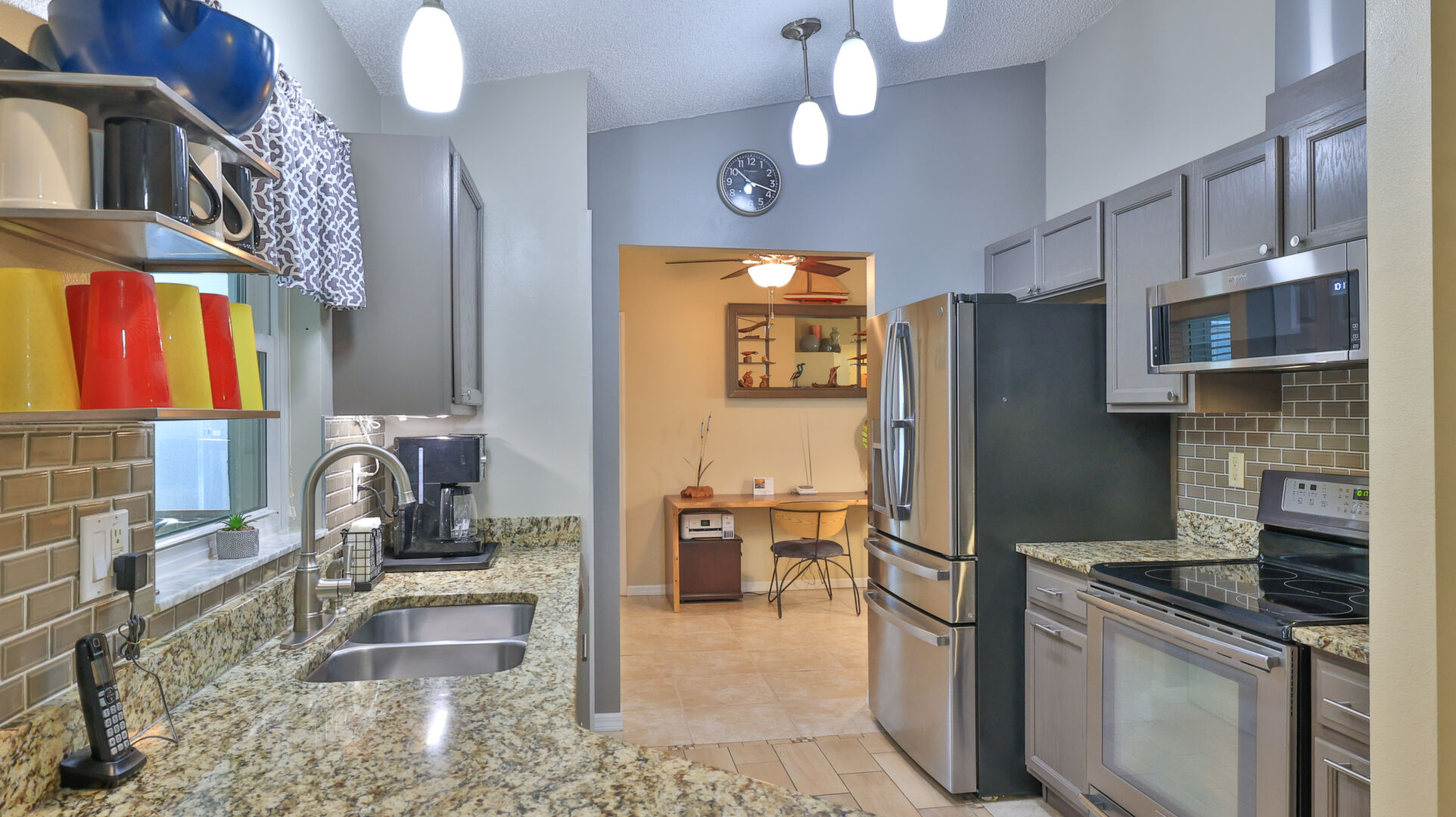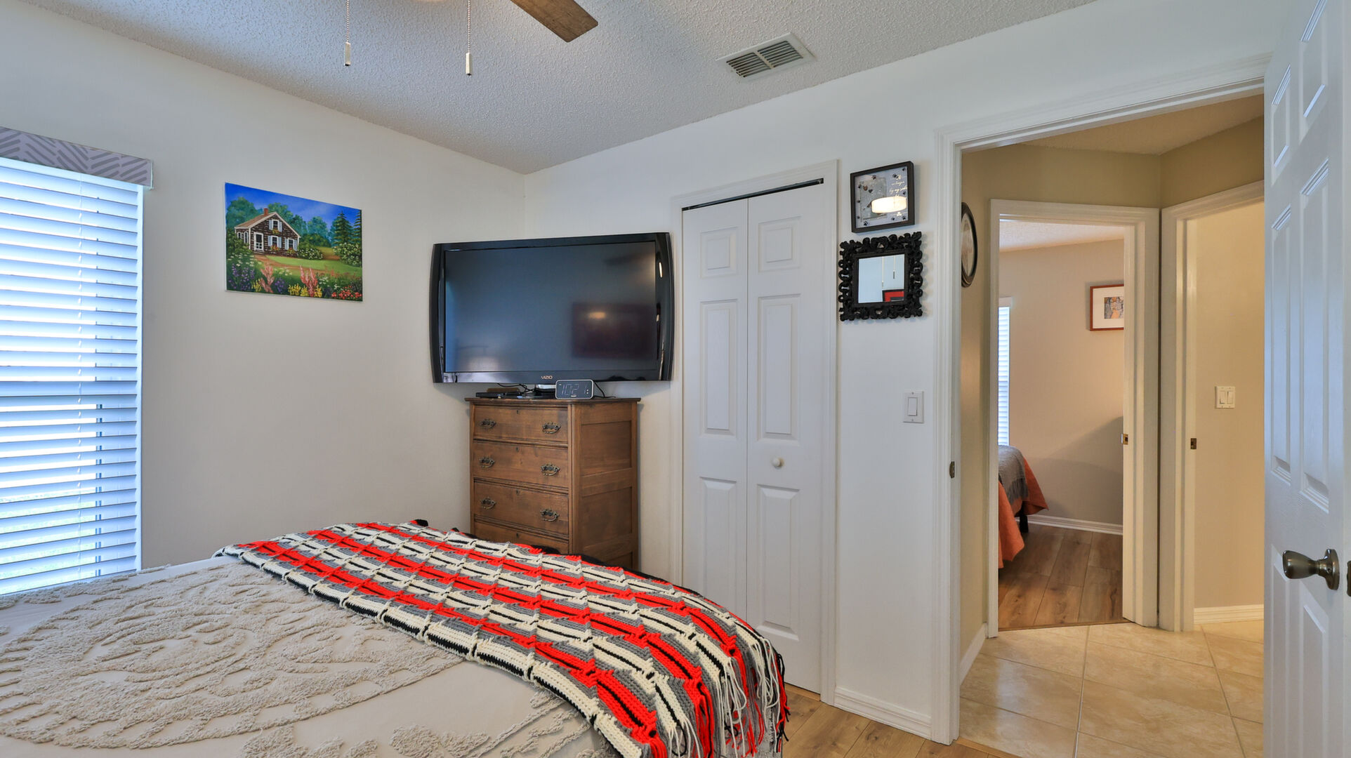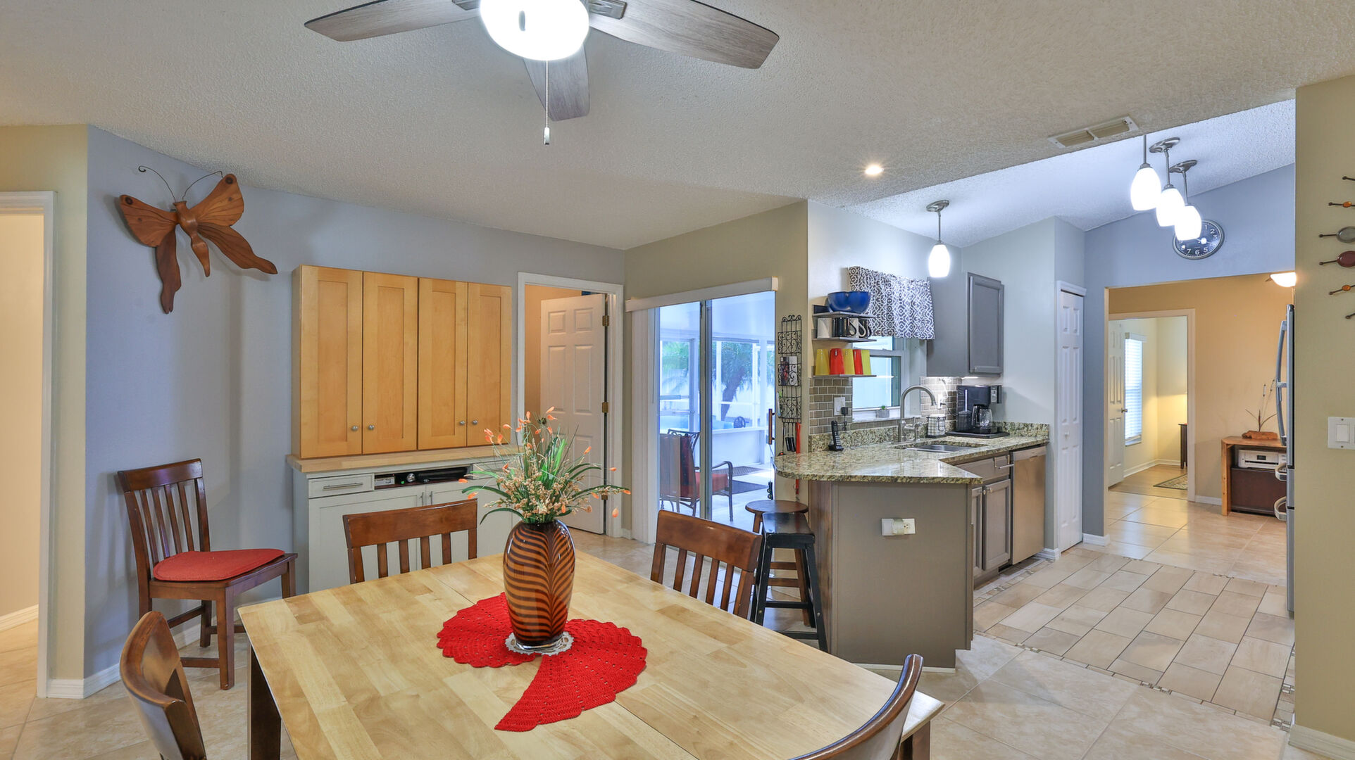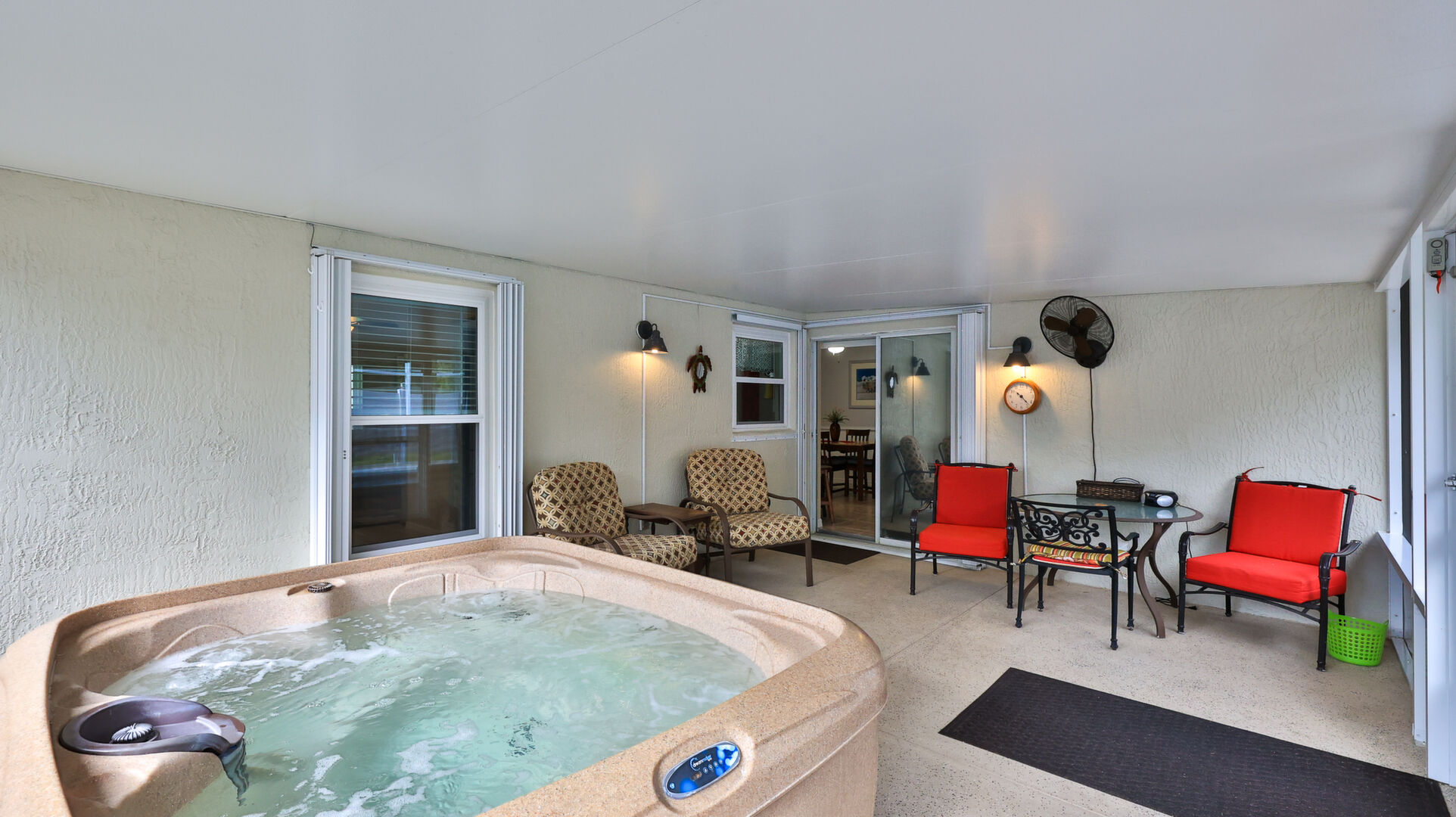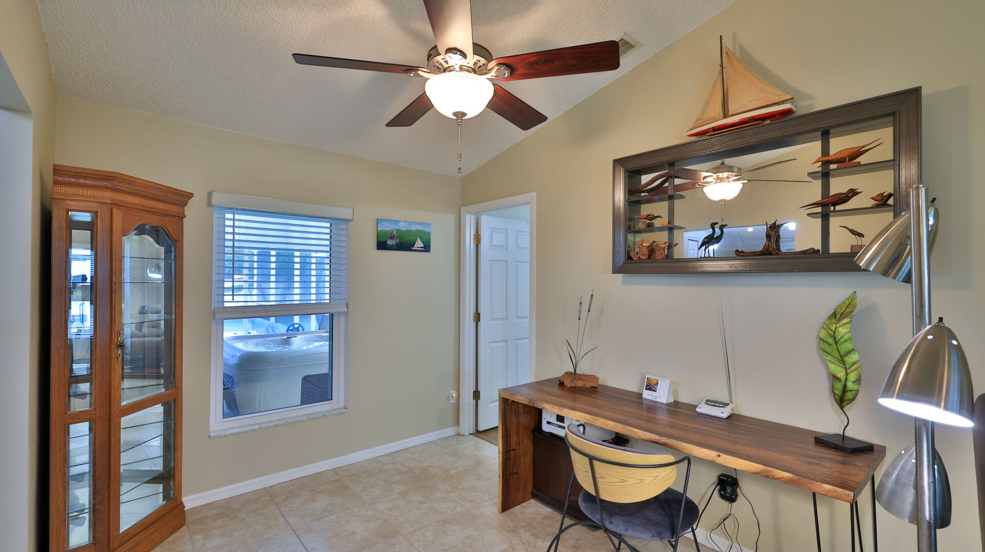 MOVE IN READY SALTWATER POOL HOME! You will love this Holiday Builders, concrete block home with 3 bedrooms, 2 baths, and 2 car garage! Well designed split plan with vaulted ceiling, ceramic tile & wood look flooring throughout. Updated kitchen with stainless steel appliances, granite countertops, pull out drawers, LED lighting, water filter, and built in pantry. Find relaxation at the outdoor oasis with a dip in the 2016 screened in pool, a soak in the hot tub, or enjoy a great book on the 14x20 covered Lanai, all surrounded with privacy fencing. Pool has solar panels for heating, pool cover, & 1 Year old salt cell. This home is storm ready, with a 2021 Entire Home 22KW Generac Generator w/Transferable Warranty, 500 Gal buried Propane Tank, 2018 Window World Storm Windows w/ Lifetime Warranty, plus Accordion Style Storm Shutters! Roof 2016, A/C & Water Heater 2024. Back Yard Fenced (2016). Washer/Dryer Included (2017). Furniture Negotiable! Garage has Epoxy flooring, Shelving & Cabinets, Attic Stairs, & Solar Ventilators. Hot Tub Included! Furniture Negotiable! Great location at the very south end of Florida Shores. Fifth house from the end of the community! Easy access to US1 from Volco Road. 5 minutes to Publix, restaurants, shopping, churches & 10 minutes to medical. 20 Minutes to beautiful New Smyrna beaches! 30 Minutes to Titusville for antique shops, local restaurants, Wildlife Refuge and 50 Minutes to the Kennedy Space Center or watch the launches from home! NO storm damage or flooding! Home is built with metal studs.