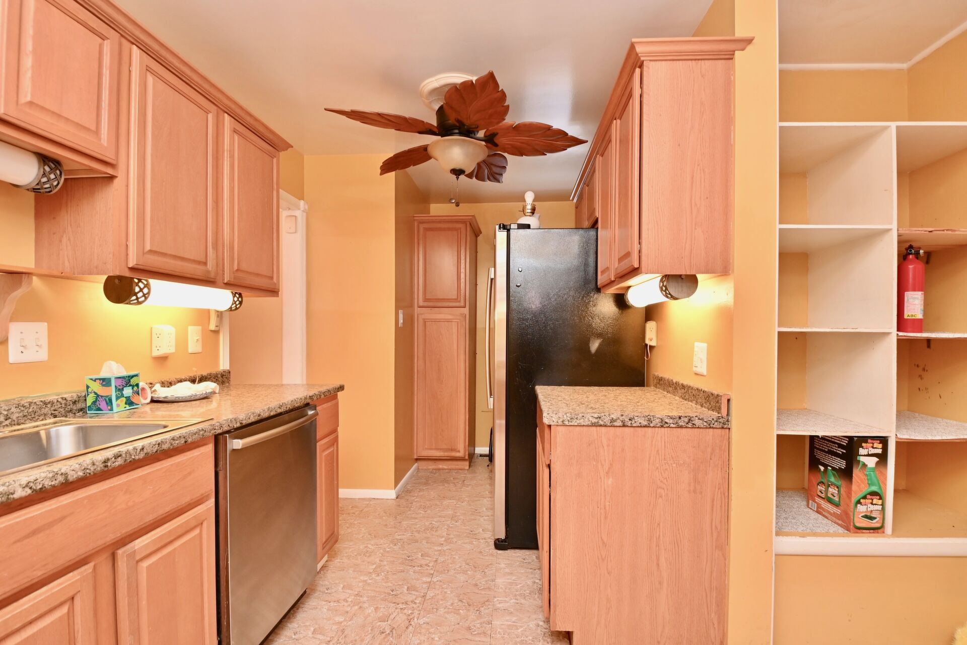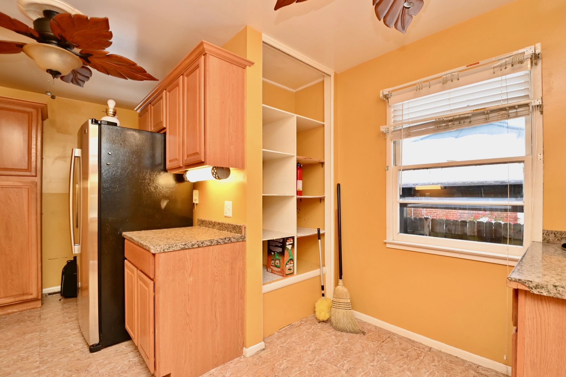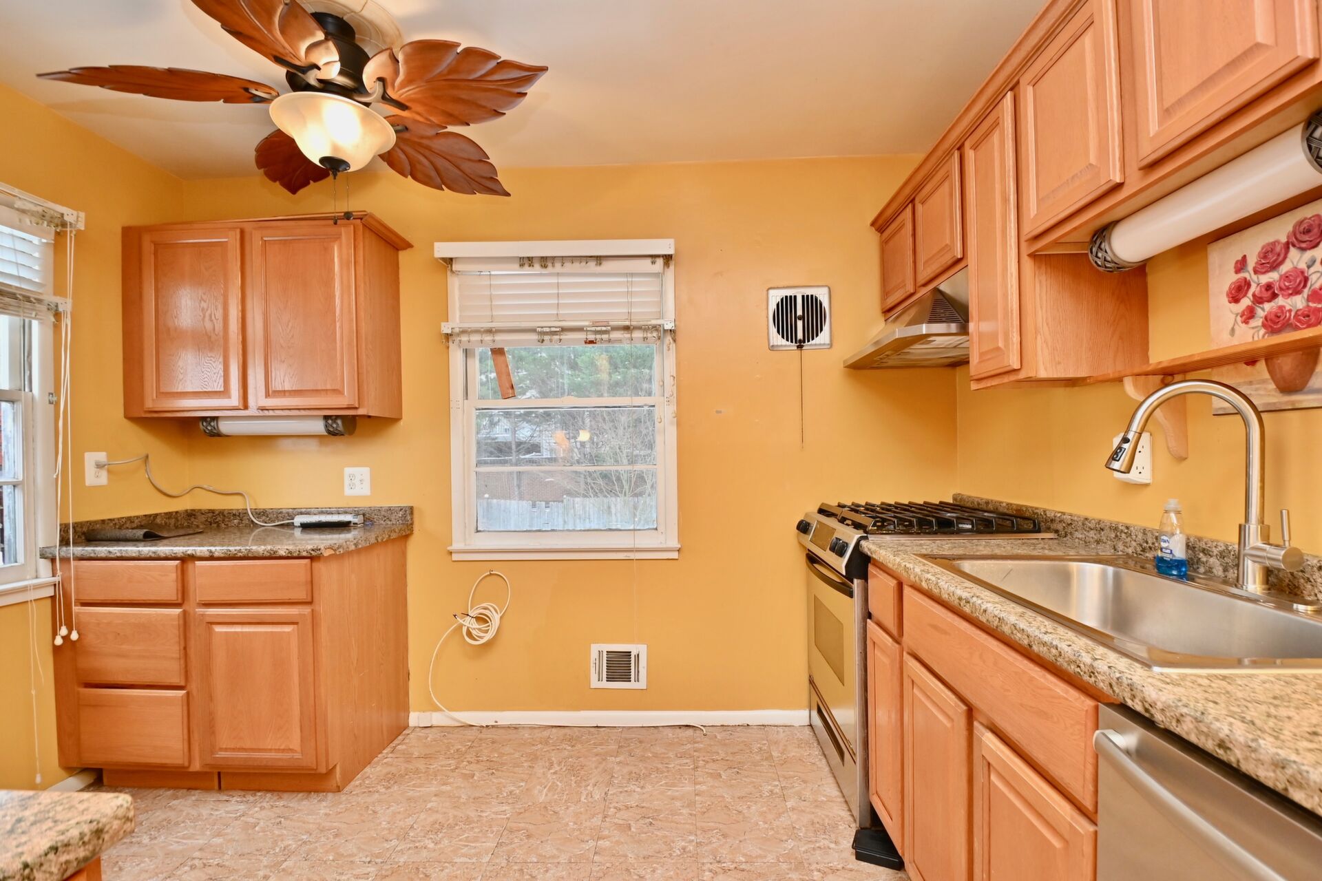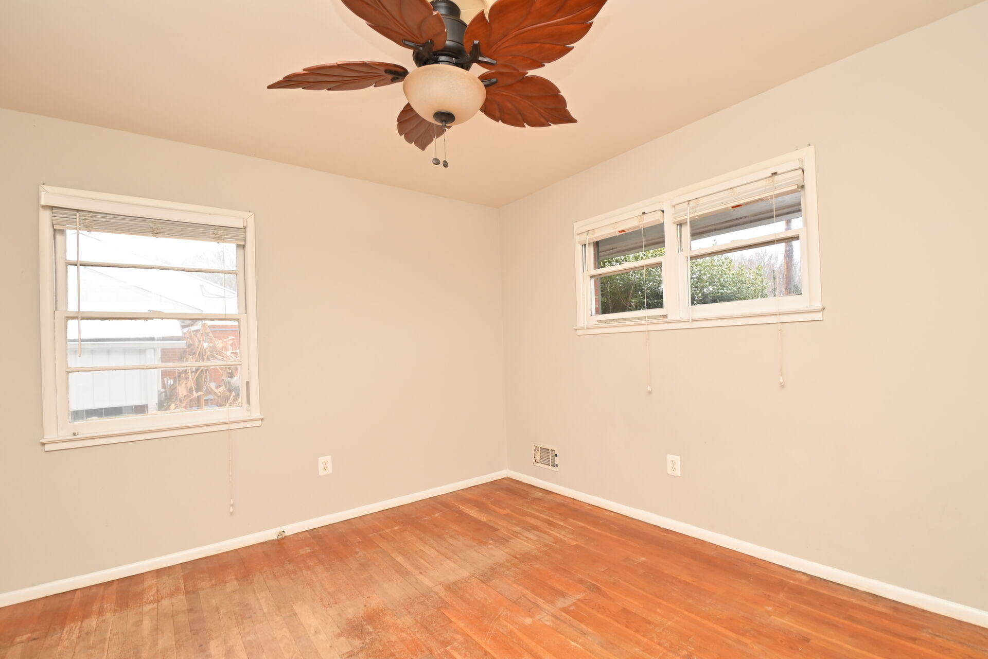 This home features wood floors, living/dining combination, bedrooms on the main level and a large flat, fully fenced backyard.