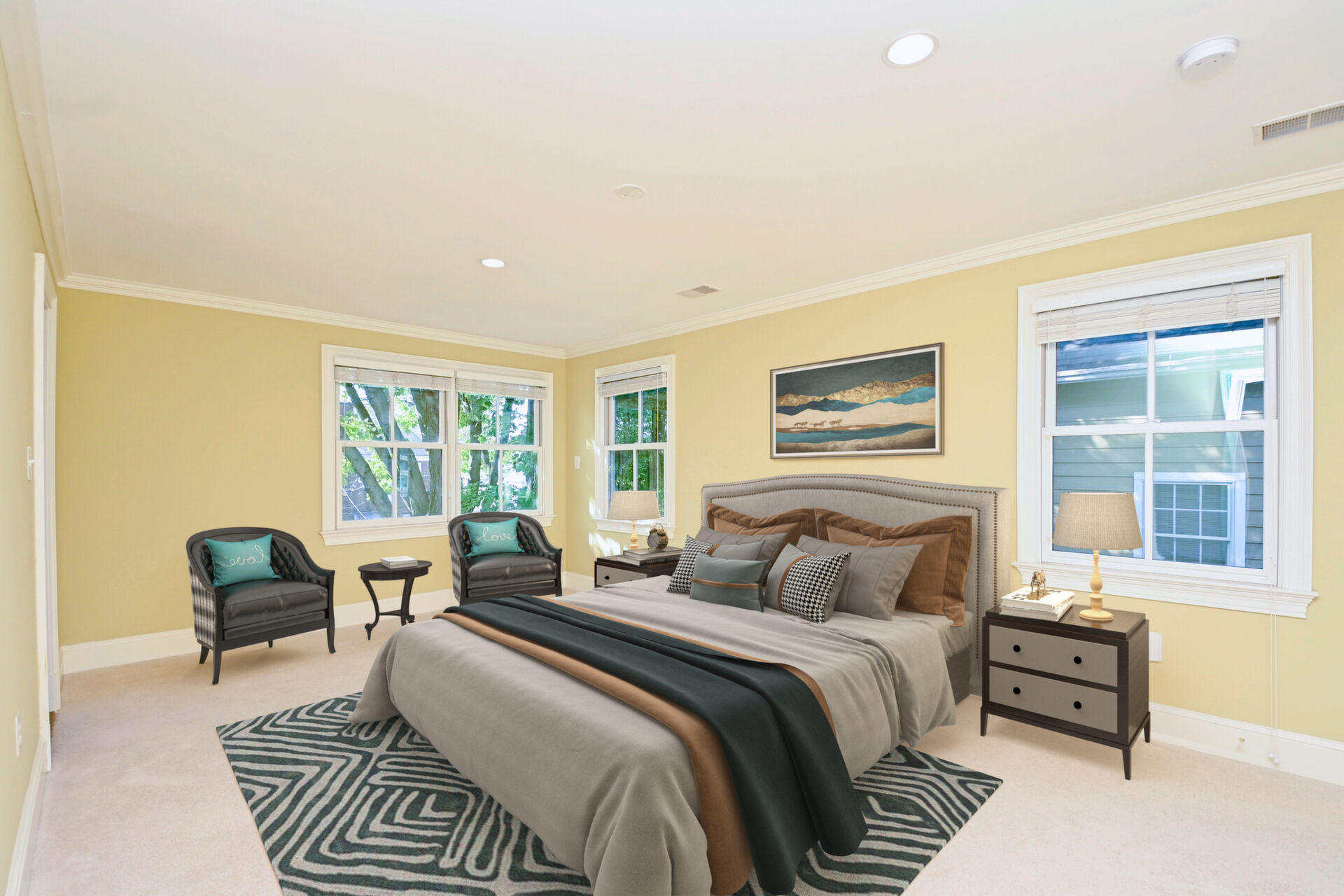 This home features beautiful hardwood floors, crown molding, recessed lighting, pocket doors and decorative touches around every corner! Each bedroom is generous sized with lots of natural sunlight and your primary bedroom has a deluxe walk-in closet and bath. Above the garage is another bedroom complete with its own bath.