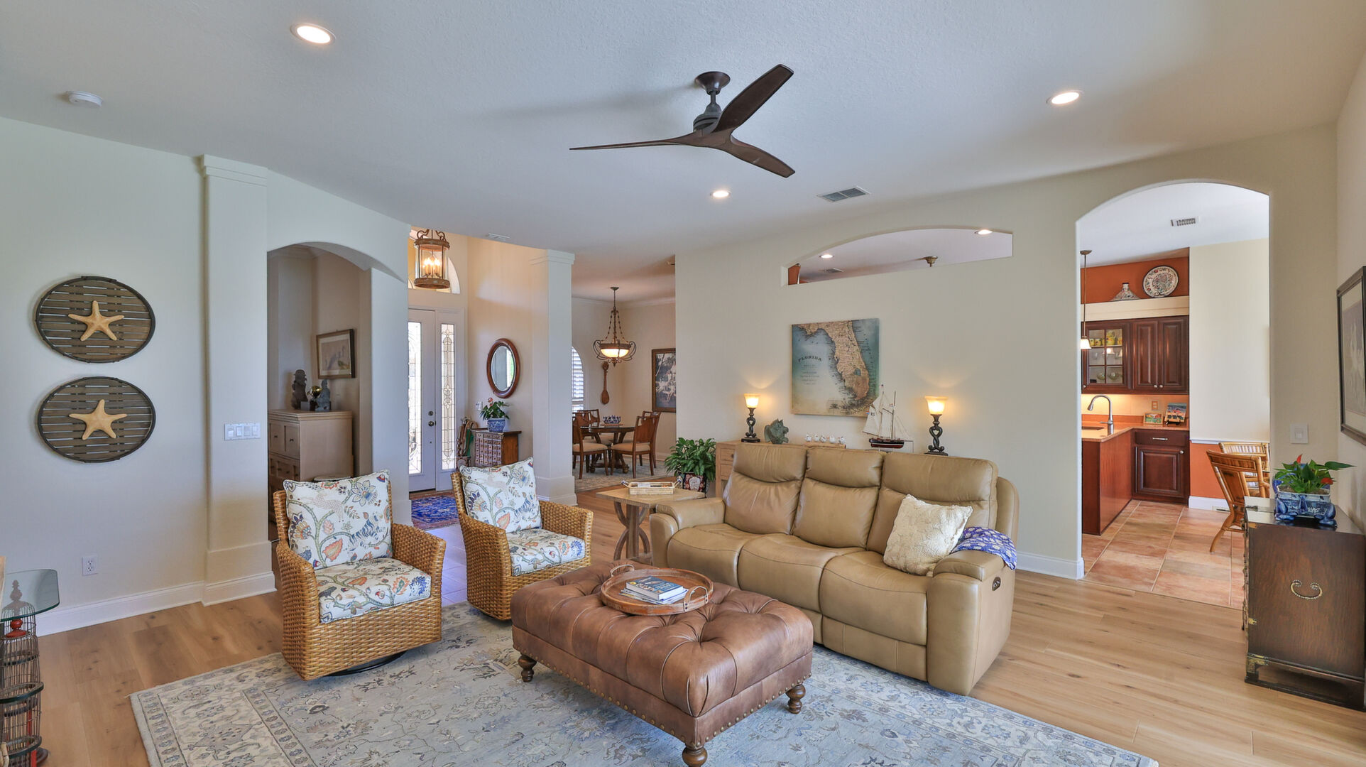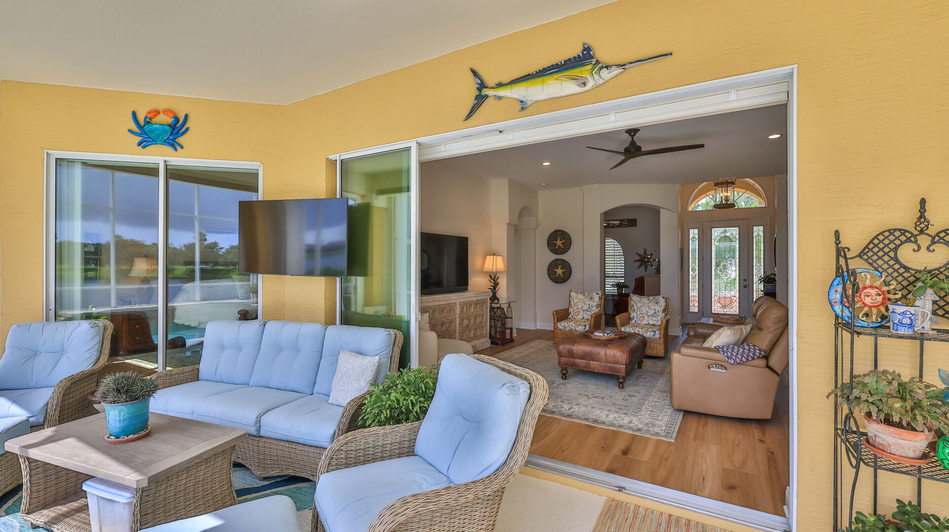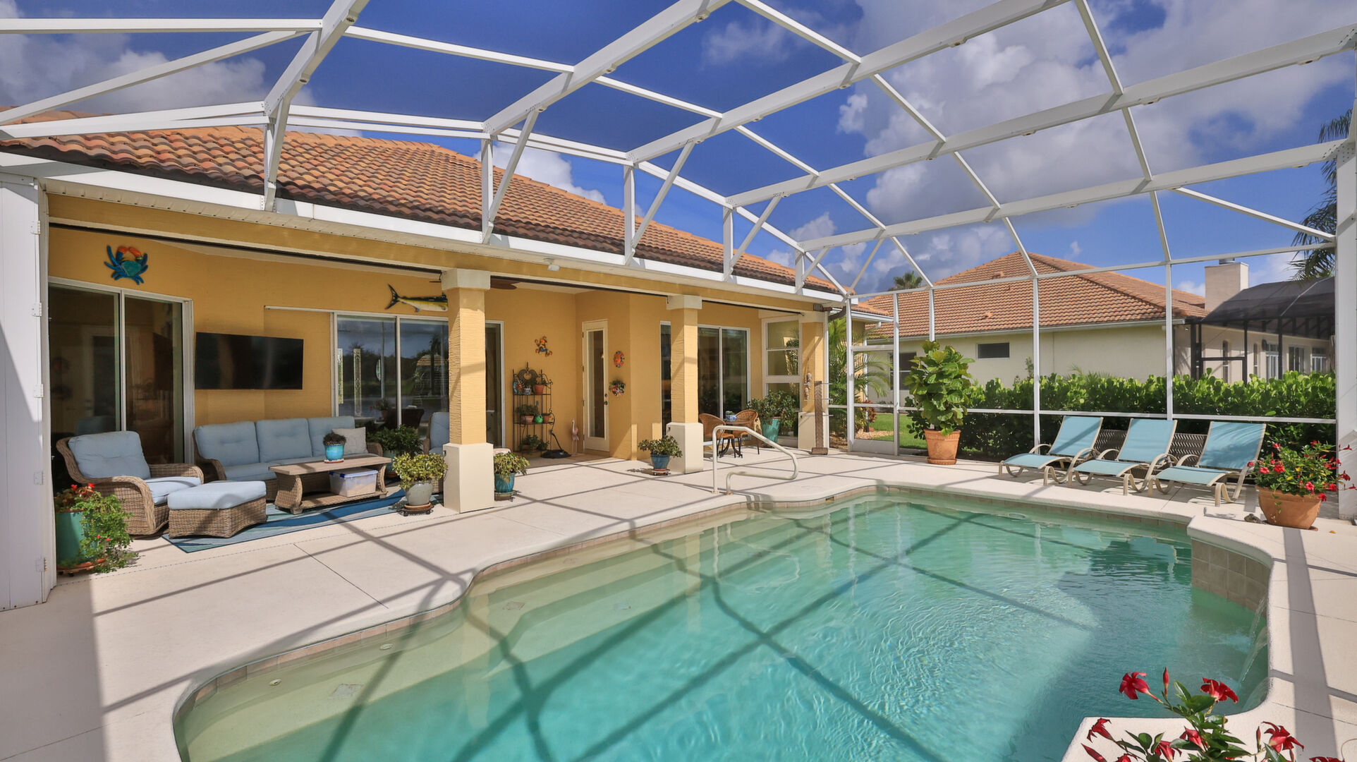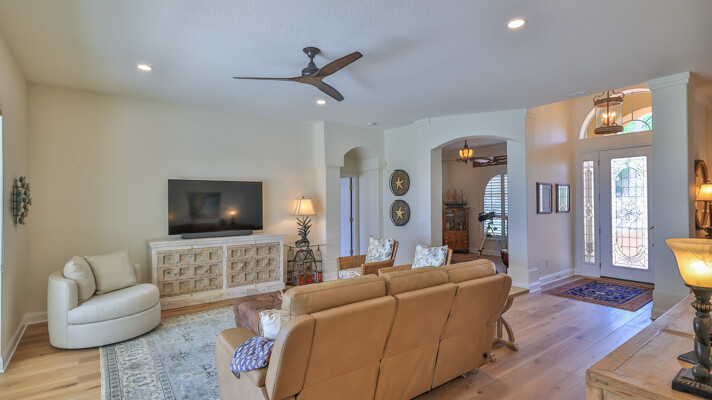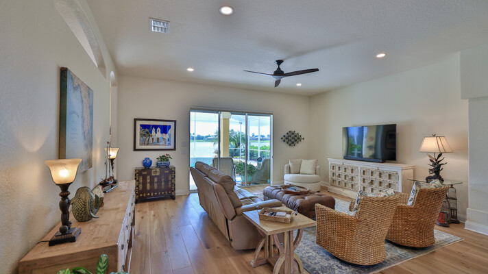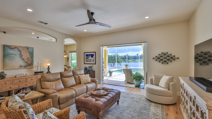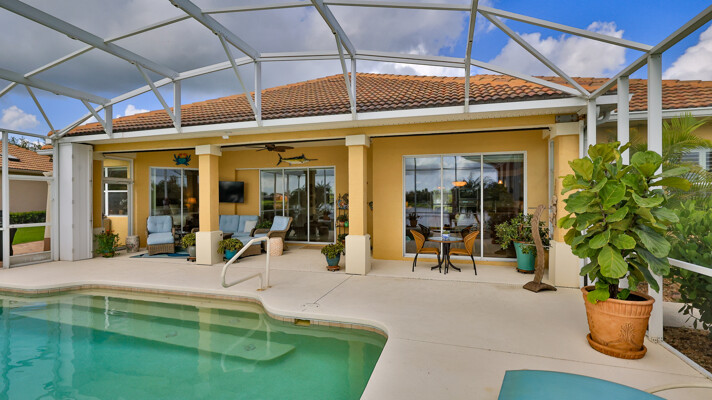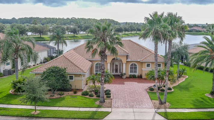Welcome to your dream oasis in the prestigious and sought-after community of Venetian Bay. This exquisite 3-bedroom, 2-bath, with office or den, tile roof, pool home offers a perfect blend of luxury, comfort, and modern elegance, making it an ideal retreat for those who appreciate the finer things in life. Recently remodeled to the highest standards, this residence boasts a contemporary design with high-end finishes throughout. As you step into this grand entrance, you will be captivated by the spectacular lake front views. The home has updated living spaces, flooded with natural light, and adorned with tasteful details. The expansive Living Room is perfect for entertaining, featuring soaring ceilings, elegant Cortek LVP flooring, newly painted inside, new ceiling fans, new faucets in kitchen, electric pool sunshades, newly rescreened pool enclosure with upgraded UV Phifer Brand screening, and new carpet in Guest Bedrooms. The gourmet kitchen is a chef's delight, equipped with top-of-the-line stainless steel appliances, Bosh dishwasher, wolf ceramic cooktop, and built in convection oven, GE monogram Vent hood, custom cherry cabinets w/glass doors, granite countertops and new GE Refrigerator. Retreat to the serene primary suite, complete with a spacious walk-in closet and a lavish en suite bathroom featuring double vanity, and a walk-in shower. The additional two bedrooms are generously sized and share a beautifully appointed bathroom, providing comfort and privacy for the family and guests. The homeowners have also included a REME HALO LED whole house air purifier, & a Spring Well whole house water filtration system. Step outside to your own personal paradise with a sparkling saltwater heated pool which is the centerpiece of outdoor living, surrounded by a meticulously landscaped yard and a covered patio area, perfect for Al Fresco dining and entertainment. Whether you are taking a refreshing dip in the pool or lounging under the Florida sun, this outdoor area offers a serene escape. The property includes a rare 3-car garage, providing ample space for vehicles, storage, new Spartek (Polyaspartic) garage floor, extra outlets, whole house surge protector, Florida basement, with attic fans designed with a thermostat to stay cool. Additionally, the well-designed stained & resealed brick paved driveway offers additional guest parking. Do not miss this Opportunity to own this stunning abode home in Venetian Bay. Whether you are looking for a permanent residence or a vacation getaway, this property offers everything you need and more. Schedule your private tour today and experience the epitome of New Smyrna Beach living. The Venetian Bay community is renowned for its upscaled amenities, including golf course, club house, town center, Spa, walking/bike trails, shopping, restaurants and much more. The optional country club membership and community beach club is available. Do not miss this amazing opportunity to live in Beautiful Venetian Bay. Contact us now to schedule a private viewing and experience the epitome of luxury living in New Smyrna Beach. Measurements & data are subject to errors, omissions or changes and should be verified.