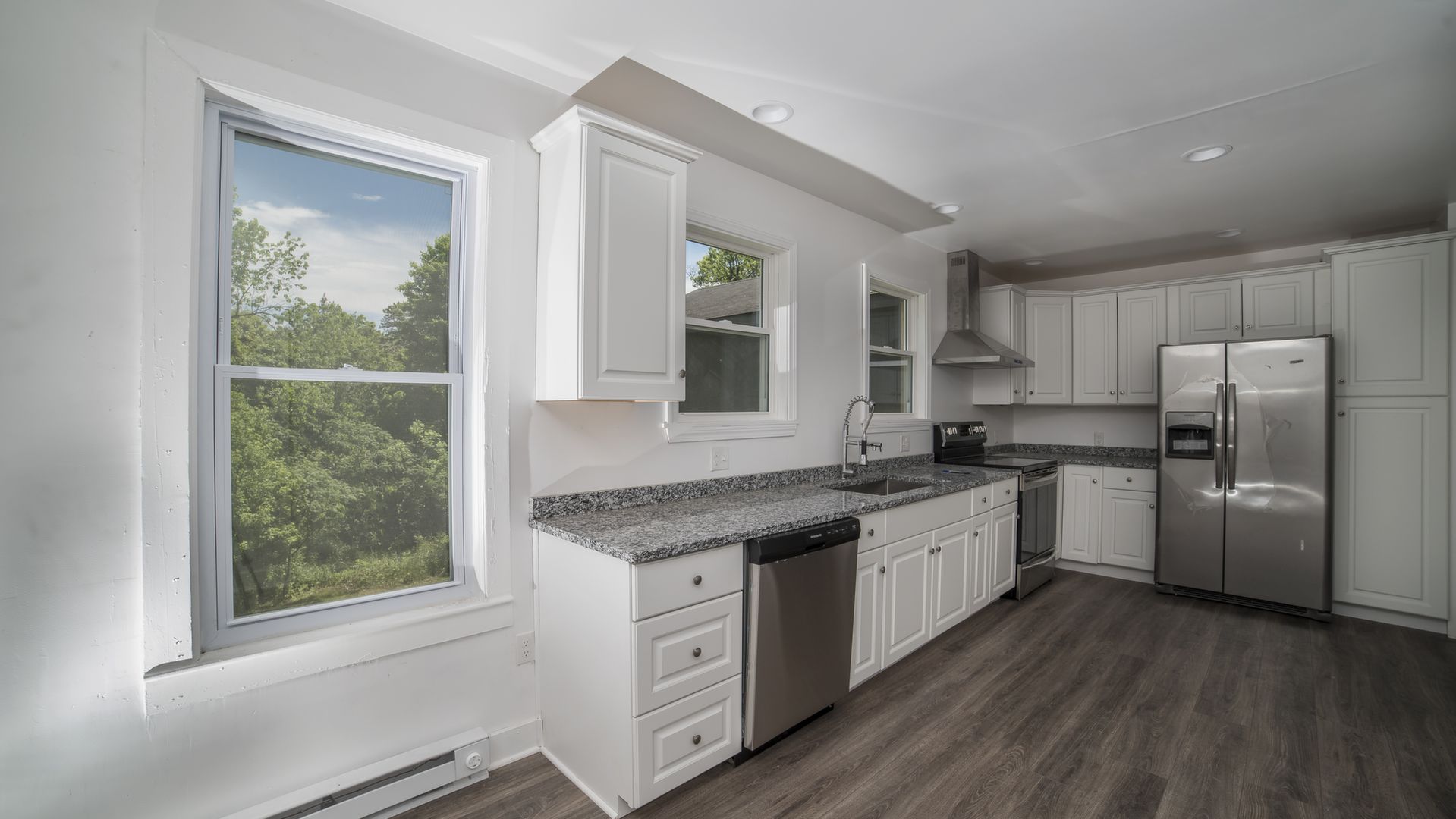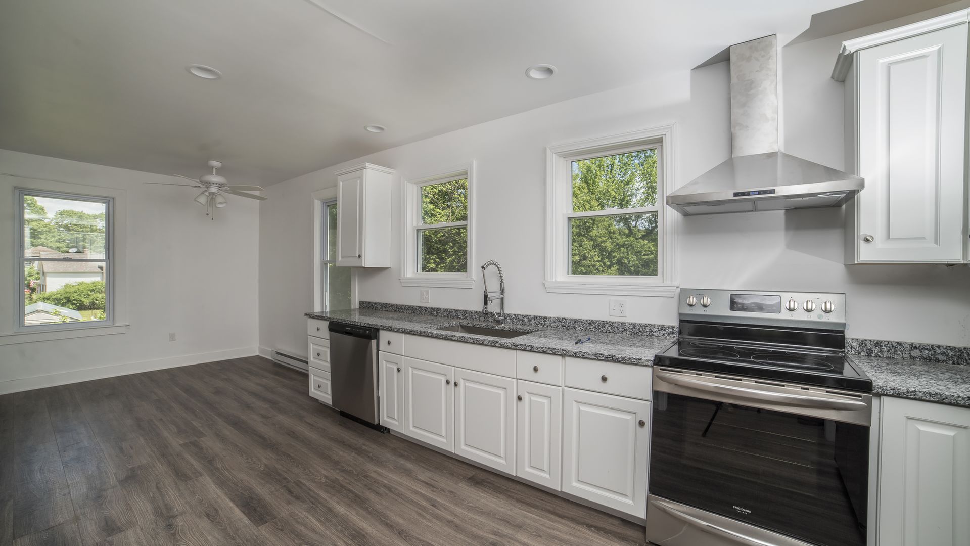 This home has it all including a bright new kitchen with granite counter tops and beautiful recessed lighting, new stainless steel appliances, new windows, fresh paint, new flooring throughout the entire first level, new 200 amp electrical, new plumbing, new roof, new siding, and new ceiling fans!
