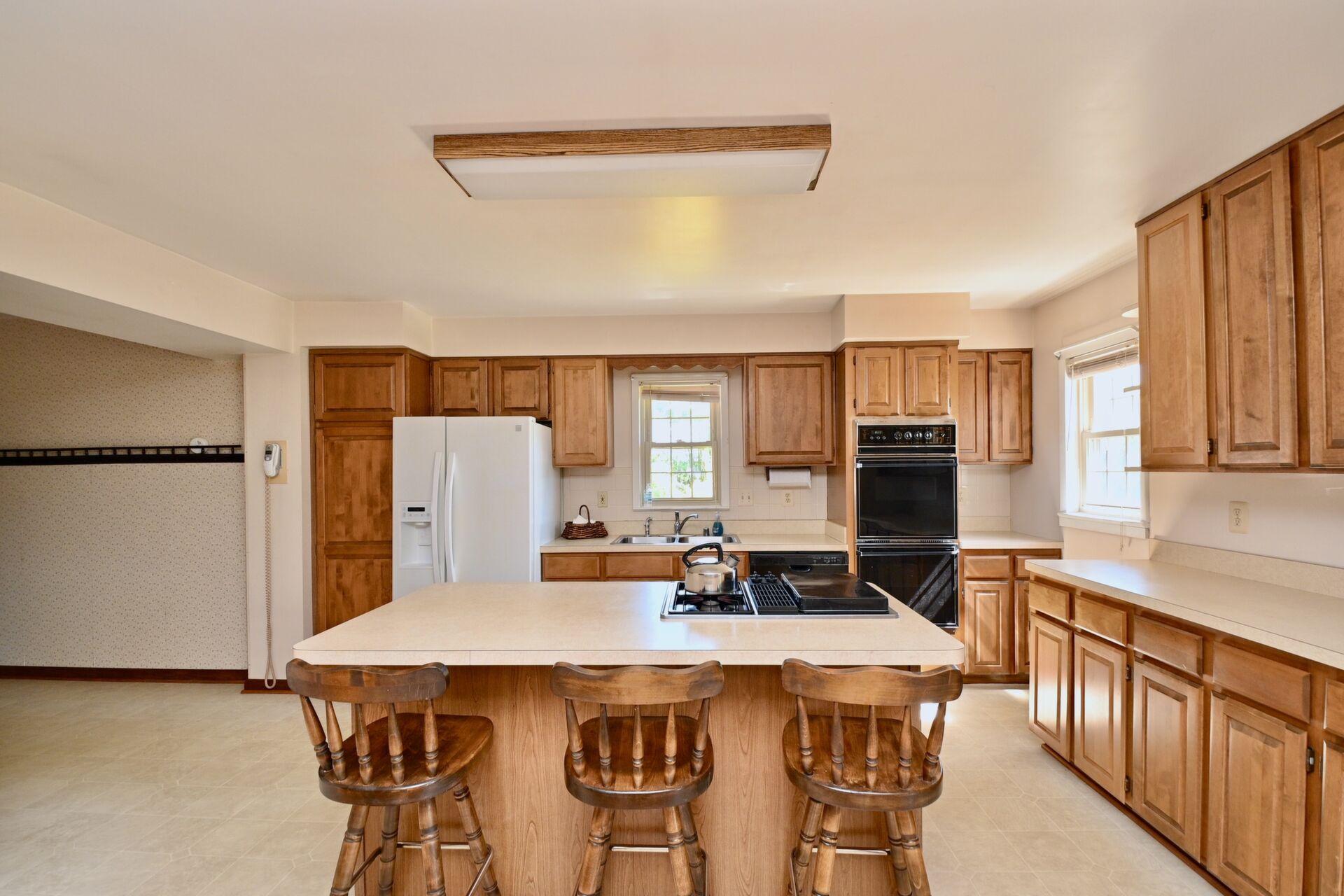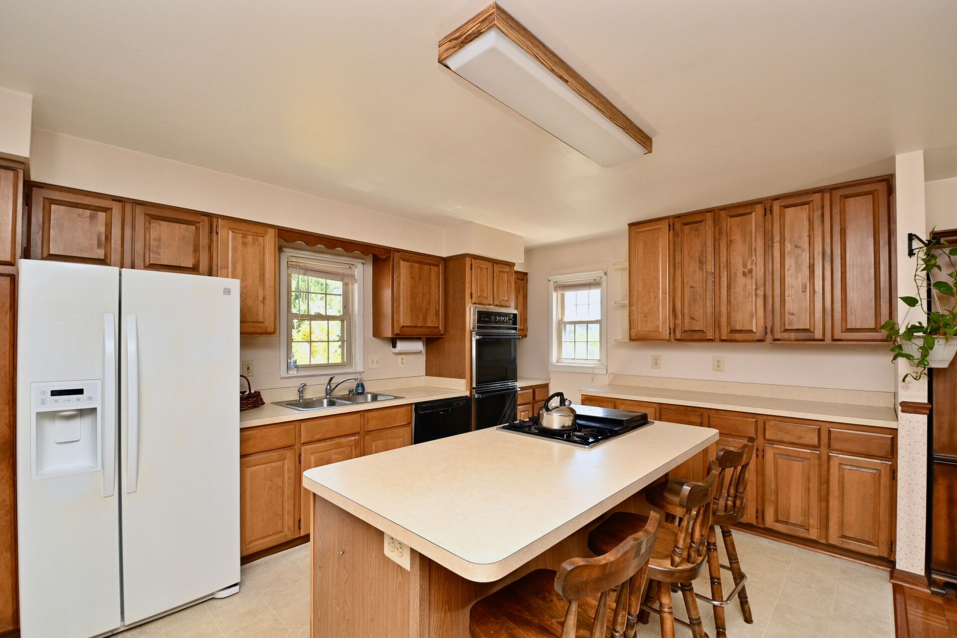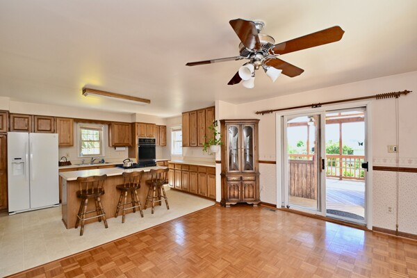 This home boasts a large kitchen, living room that is light and bright, recreation room with fireplace and so much more.