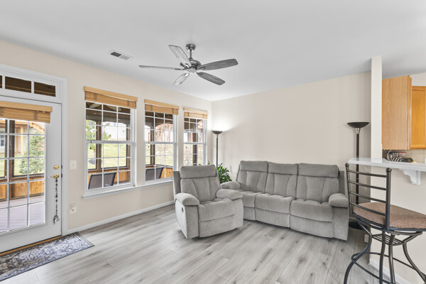 Welcome to the epitome of luxury living in this exclusive over 55 community. Step inside this stunning property and be greeted by a large living dining room with gleaming hardwood floors, perfect for entertaining guests or enjoying a quiet evening at home. The kitchen boasts a beautiful island with seating that opens up to a cozy family room, ideal for casual gatherings or lazy Sunday mornings.