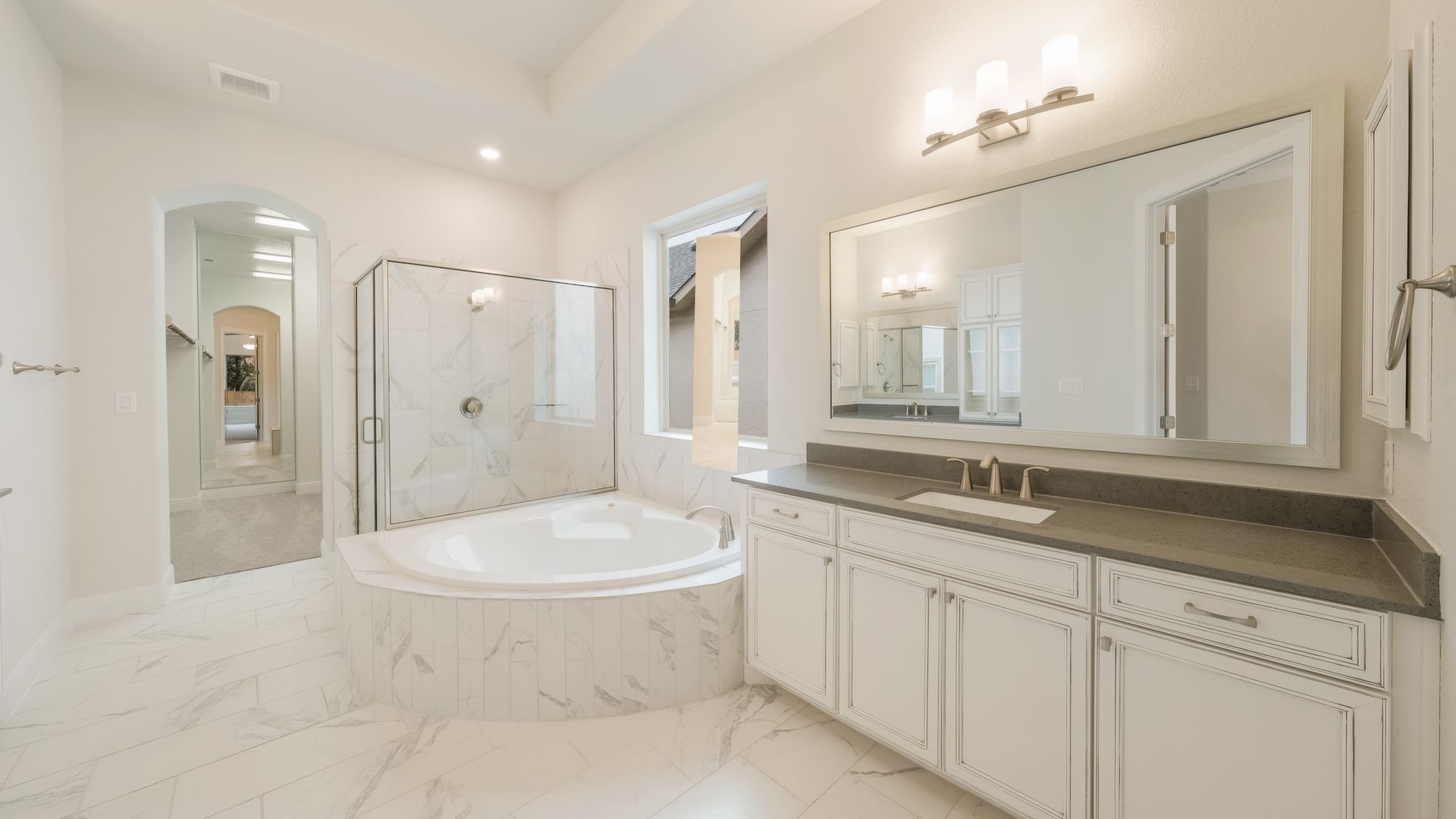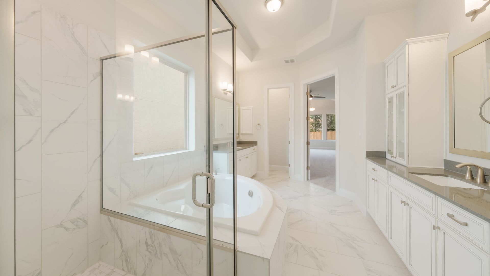 Welcome home to The Merrell in Shavano Highlands designed by David Weekley Homes. Prepare to be wowed by this single story 5 bedroom 4 and a half bath beauty. Little bedrooms ? Absolutely not ! The 4 secondary bedrooms are approximately 11x14, 2 have private baths and 2 share a Jack and Jill bath. The luxurious Owner's Retreat is approximately 23 x 12 and boasts a sitting room with vaulted ceilings and beautiful windows for tons of natural light, it is truly a Retreat.