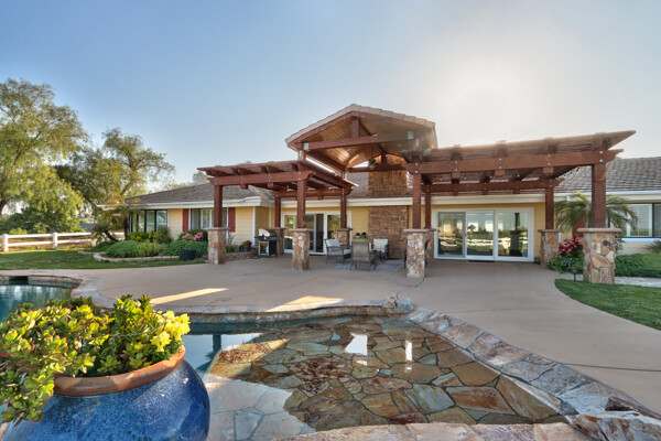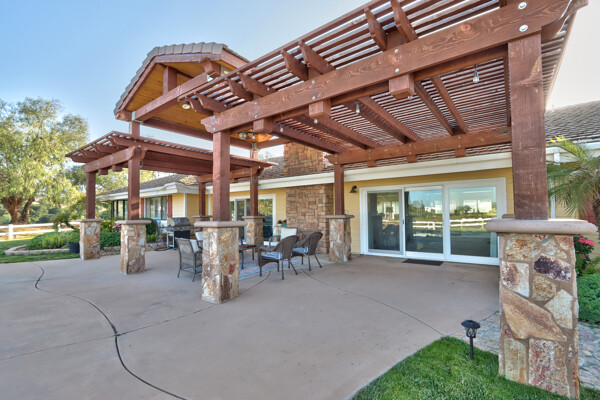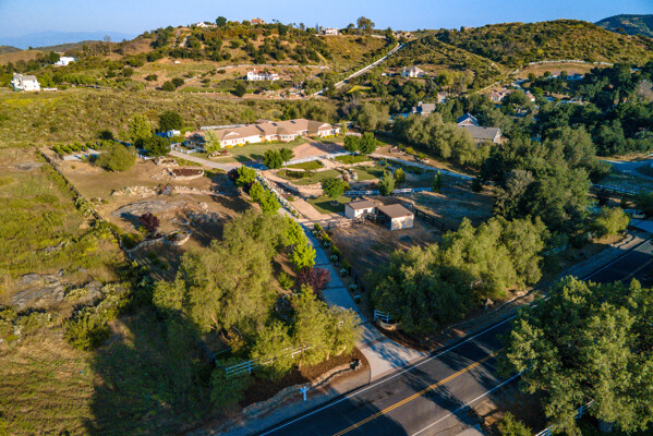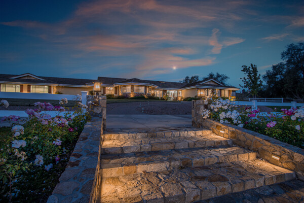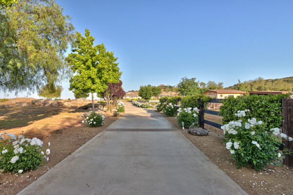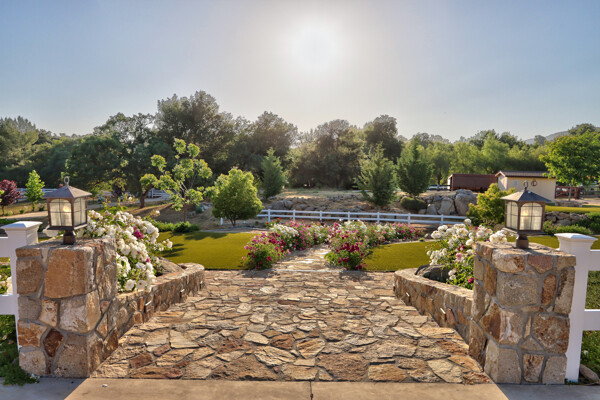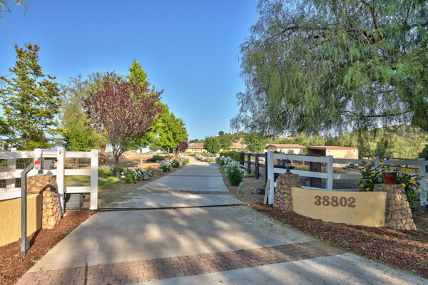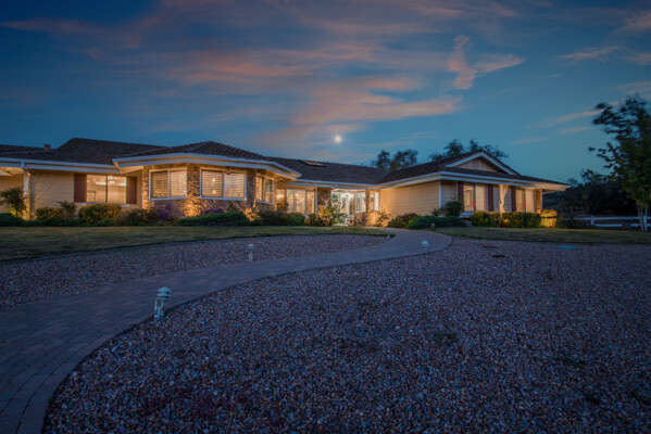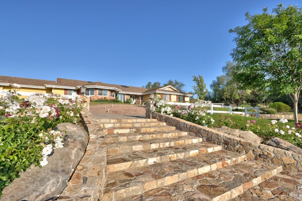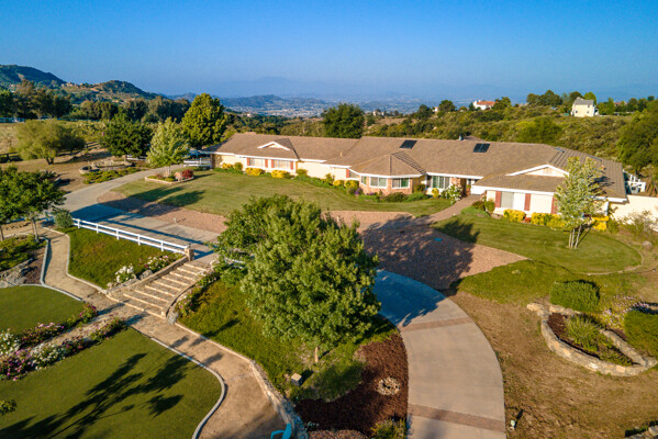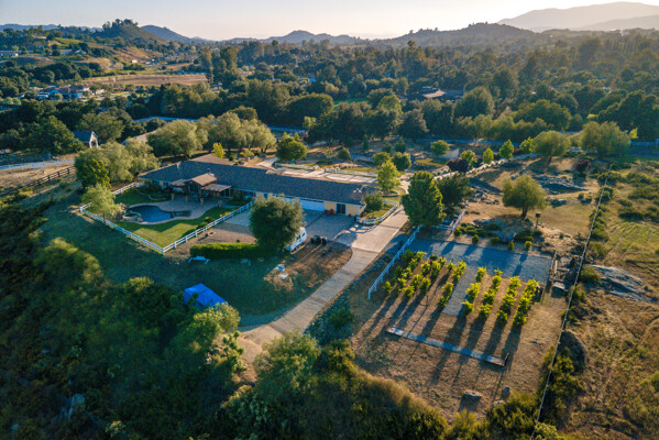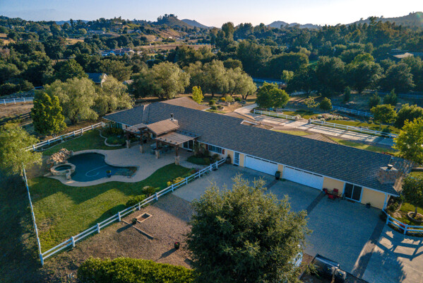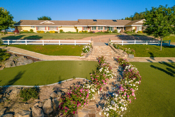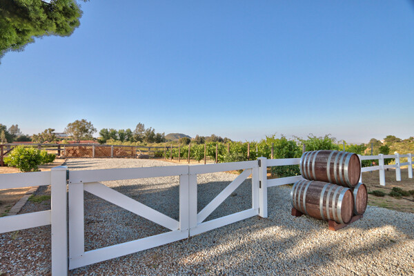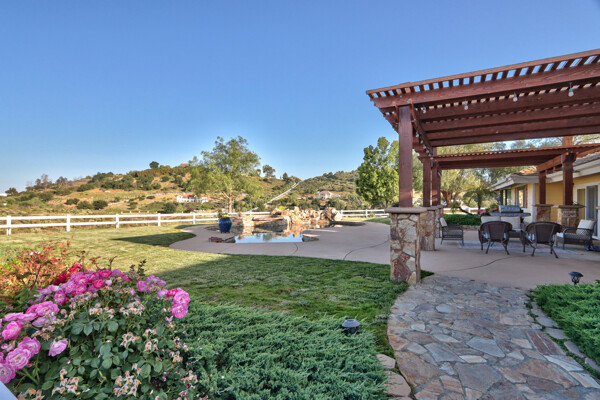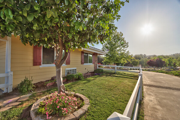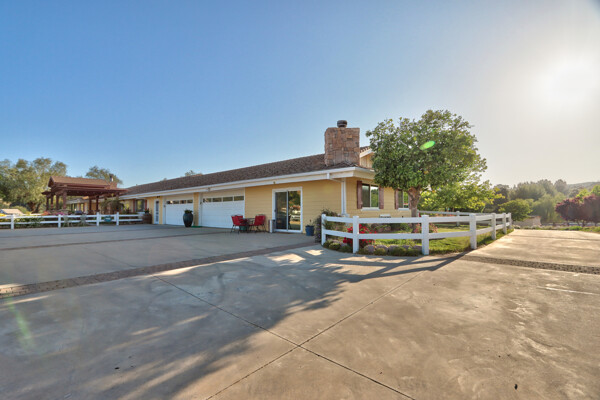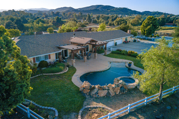 Welcome to this spectacular ranch retreat in the desirable La Cresta community. This gated majestic one-story pool estate checks all the boxes and is in close proximity to town. The sprawling yet private lush grounds are nestled among the breathtaking natural beauty of this country setting, with a rock stream bed and bridge, artificial grass, stone steps and planters, fruit trees, a vineyard and flower garden. As you drive up the concrete circular driveway passing the corral, lean-to cover and storage/tack shed, you'll see this stunning renovated estate atop the gradual knoll with amazing views of the mountains, canyon, valley and city lights. Step into the fantastic great room with beautiful hardwood floors, vaulted wood beam and wood ceiling, including a large family room with fireplace, dining room, game room with pool table and bar, and large chef's kitchen with two islands and self closing cabinet doors and drawers, wet bar and separate breakfast room. This property also boasts a very large primary bedroom suite with a barn door leading to the highly upgraded primary bathroom with custom walk-in shower, stand-alone soaking tub, double sinks and extra-large walk-in closet. Additional features are an attached guest/maid or mother-in-law apartment with its own living room with fireplace, kitchen, full bathroom and bedroom with walk-in closet (which was converted from a two-car garage and has added an additional 492 square feet), 6 skylights, recessed lighting, extensive use of custom molding, crown molding, wainscoting, ship-lath and custom bench seating. The gorgeous sparkling salt pool and spa, large beam patio cover and spacious patio is perfect for entertaining. An extra-large 4 car garage with workbench and storage, RV parking and hookups, horse shoe pit, in-ground roasting pit, stone walkways, dual HVAC systems and water heaters, and too many additional extras to list. This one is must see!